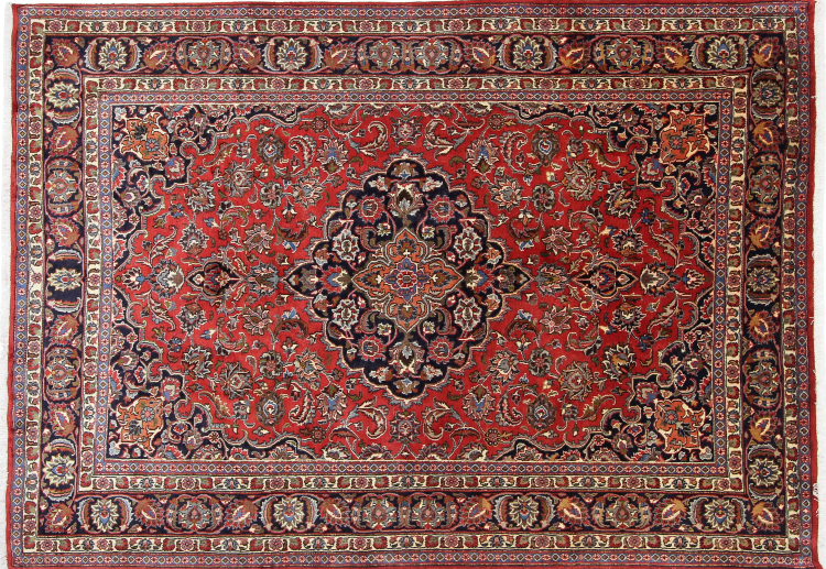 Dette tæppe fra Mashhad, en af de største byer i Iran, er håndknyttet af ren naturuld. Millioner af mennesker valfarter hvert år til denne hellige persiske by. Mashhad-tæpper er kendt for deres usædvanlige størrelser og uld af ekstremt høj kvalitet.