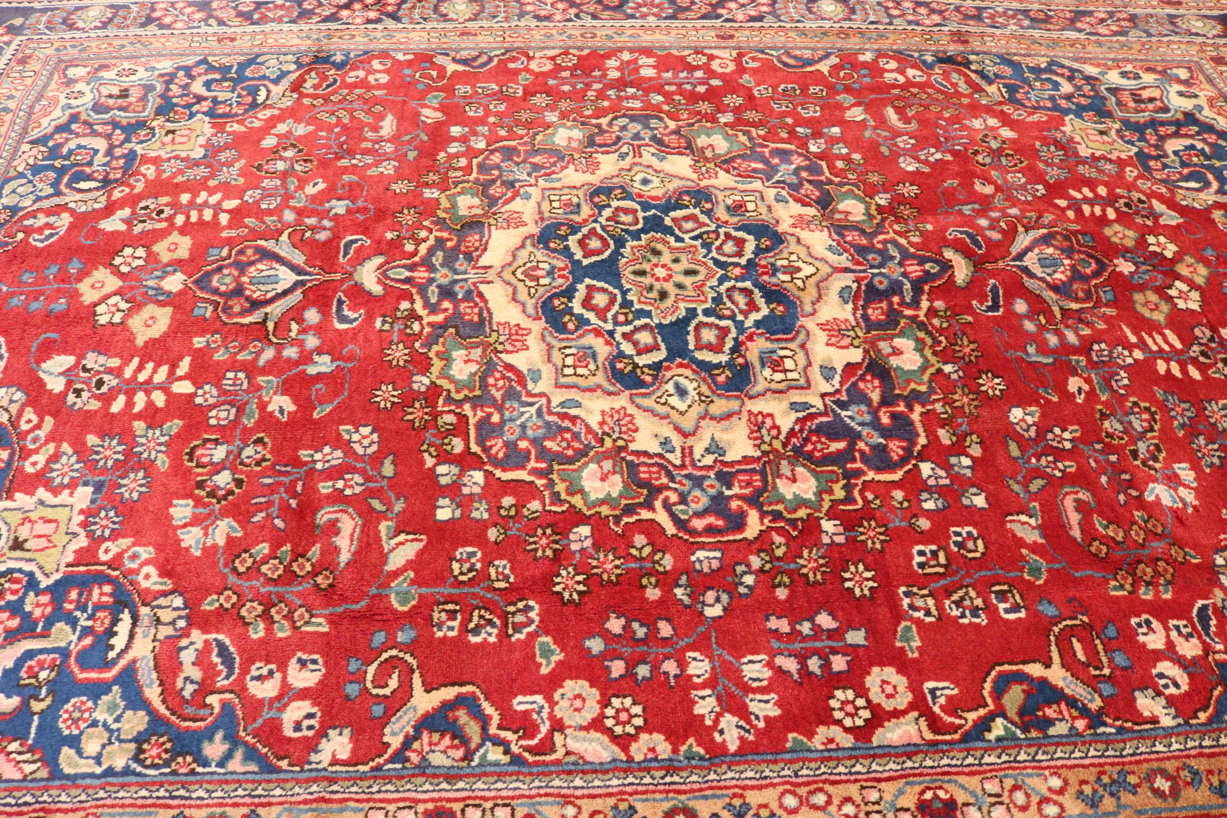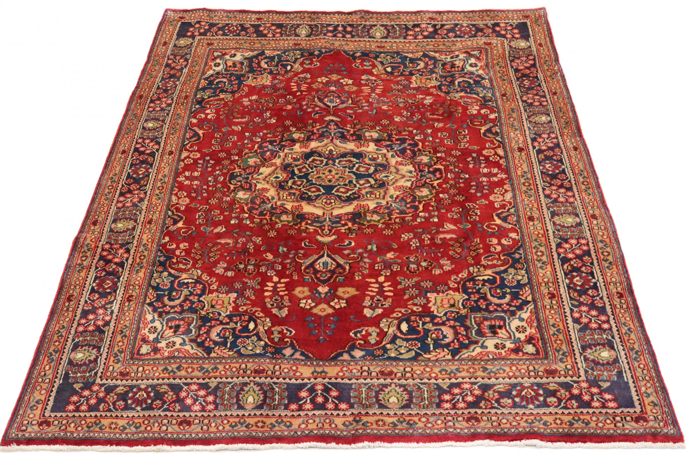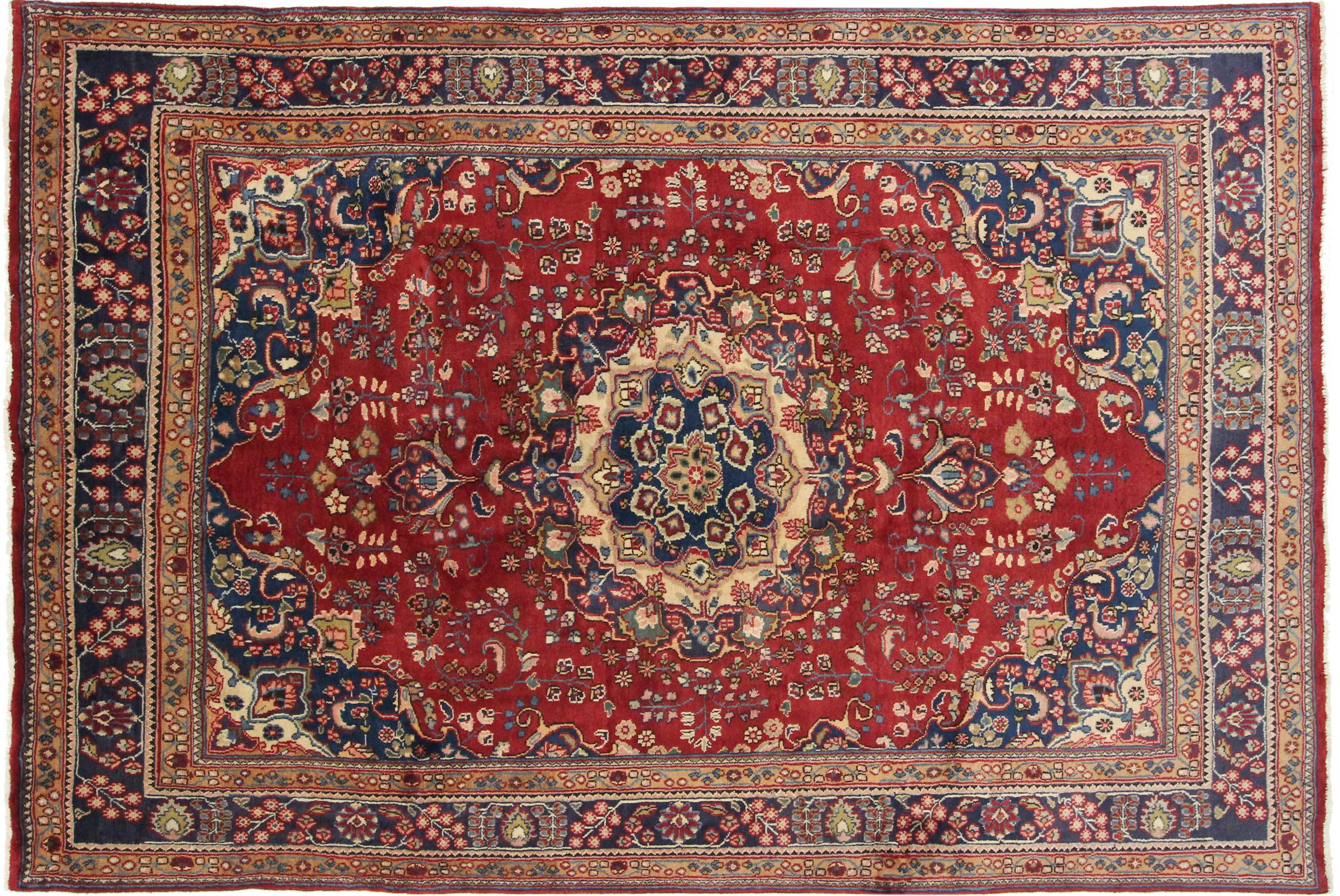 Dette tæppe fra Mashhad, en af de største byer i Iran, er håndknyttet af ren naturuld. Millioner af mennesker valfarter hvert år til denne hellige persiske by. Mashhad-tæpper er kendt for deres usædvanlige størrelser og uld af ekstremt høj kvalitet.