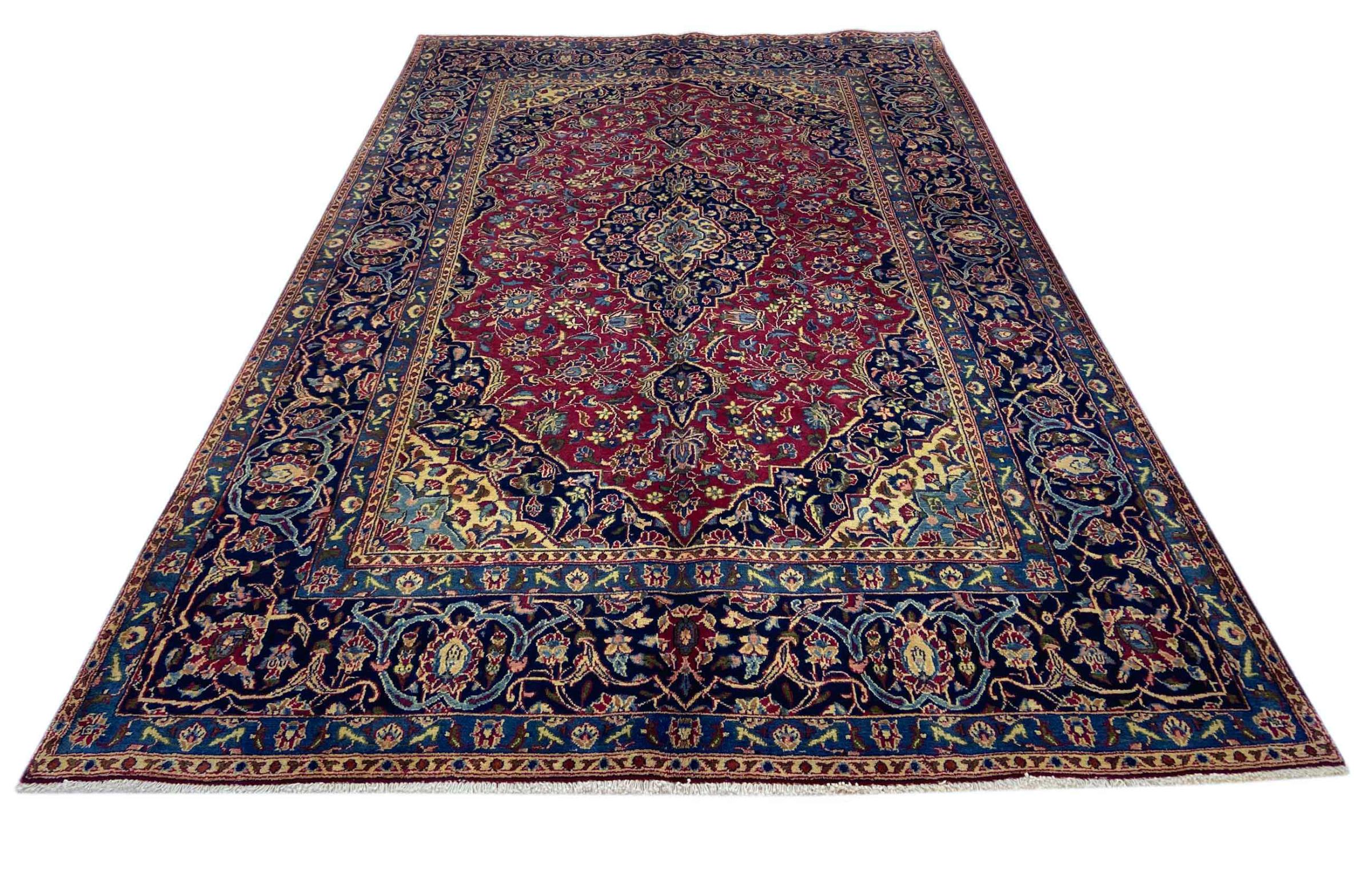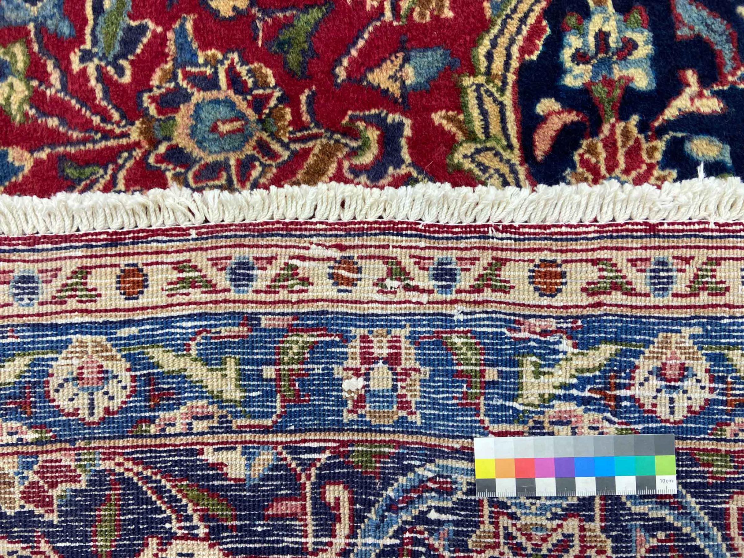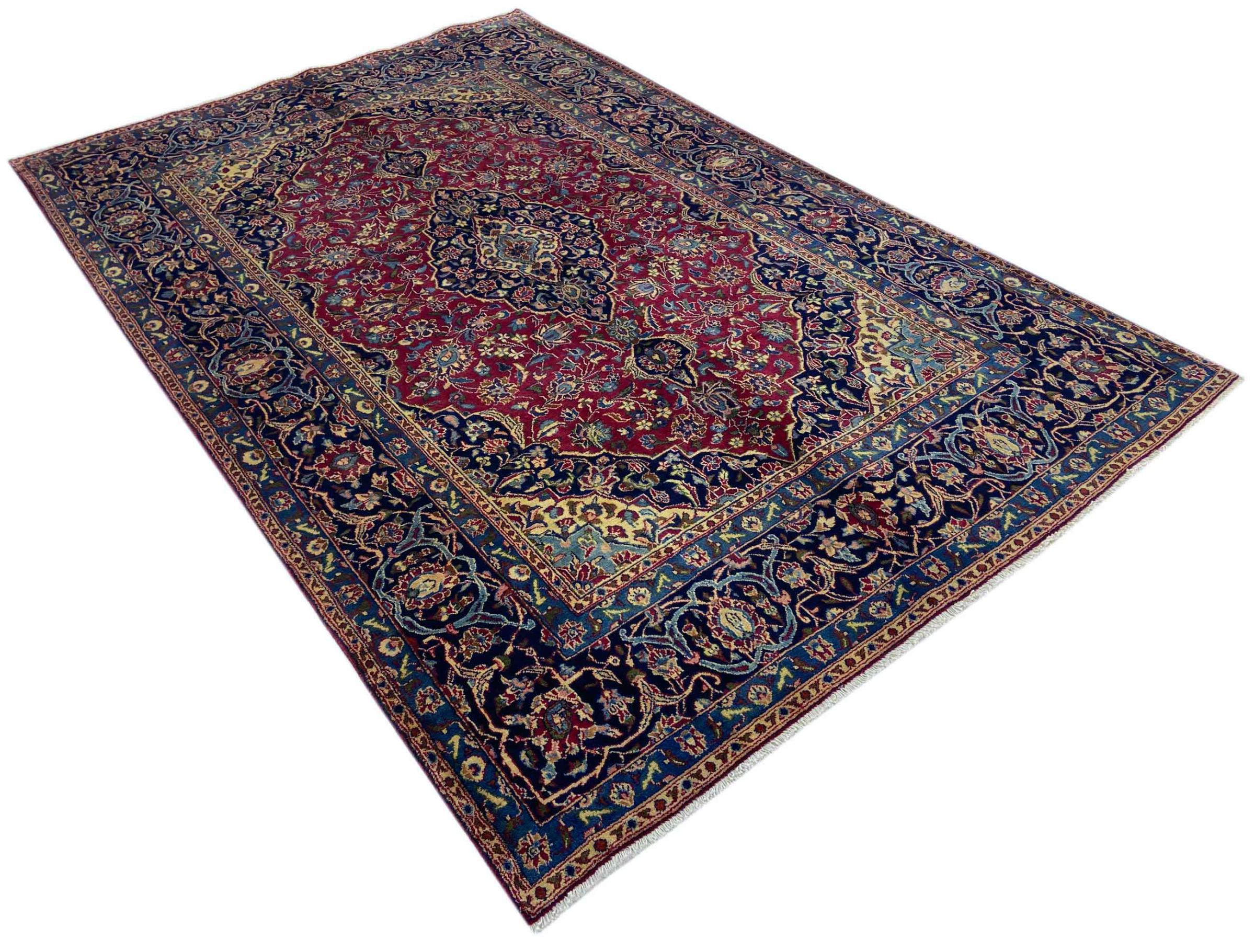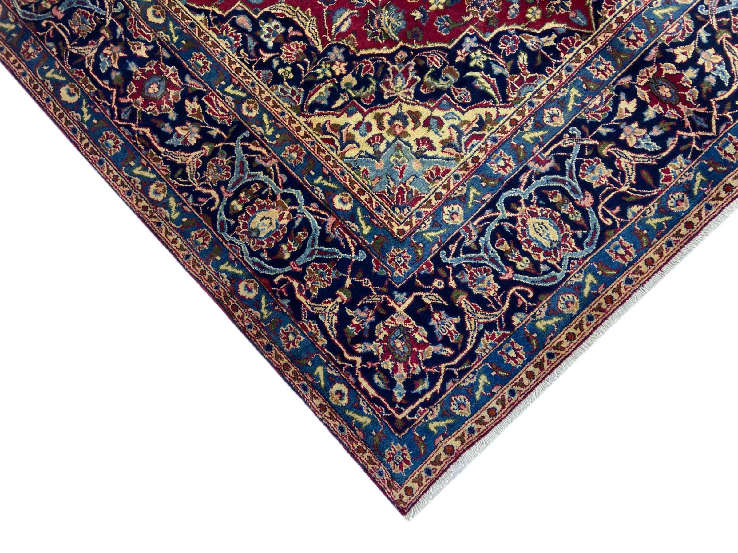 Dette tæppe fra Mashhad, en af de største byer i Iran, er håndknyttet af ren naturuld. Millioner af mennesker valfarter hvert år til denne hellige persiske by. Mashhad-tæpper er kendt for deres usædvanlige størrelser og uld af ekstremt høj kvalitet.