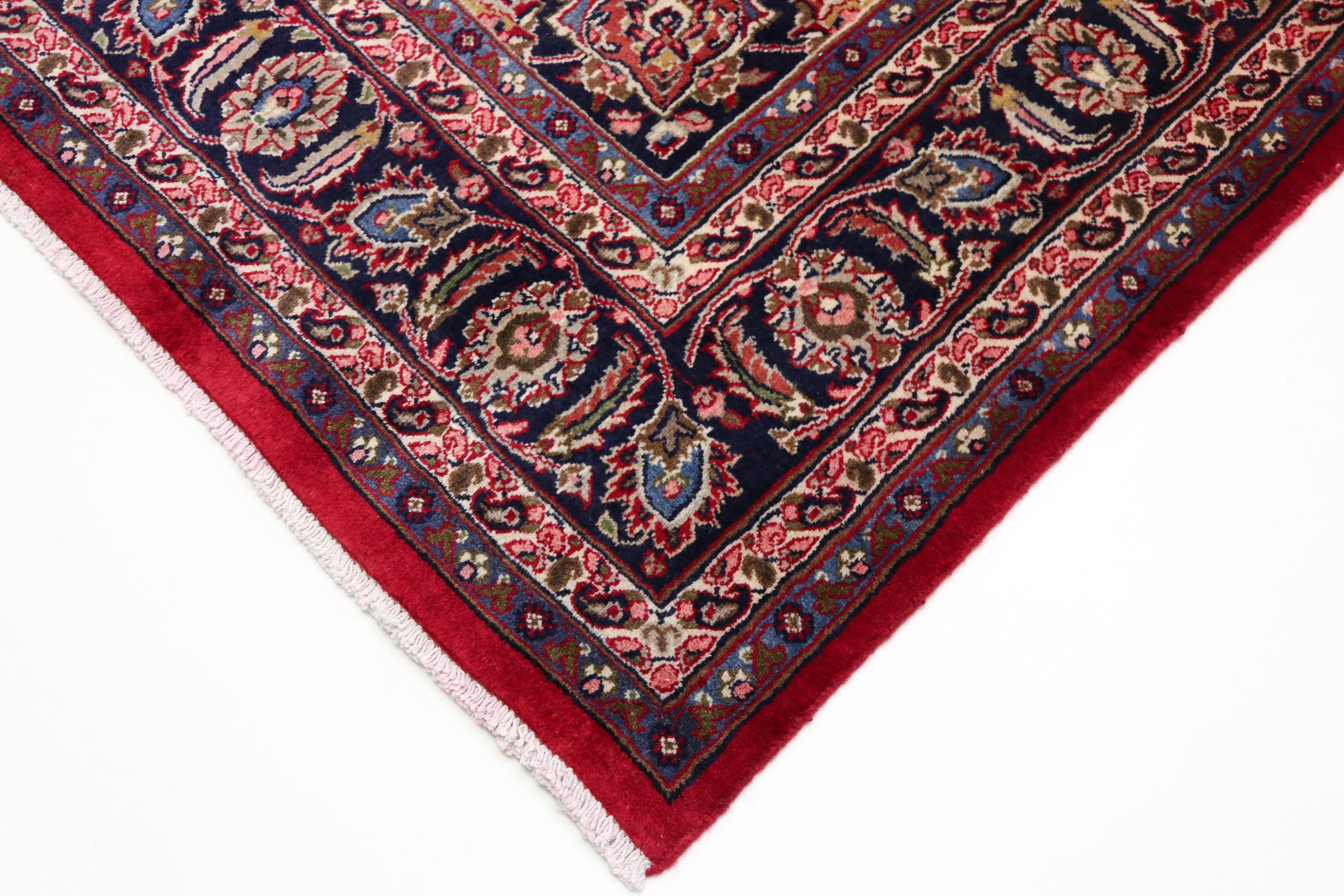 Dette tæppe fra Mashhad, en af de største byer i Iran, er håndknyttet af ren naturuld. Millioner af mennesker valfarter hvert år til denne hellige persiske by. Mashhad-tæpper er kendt for deres usædvanlige størrelser og uld af ekstremt høj kvalitet.
