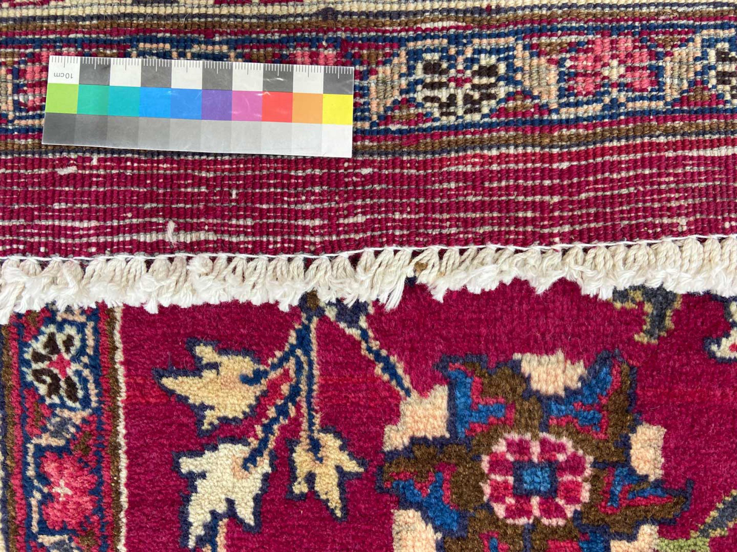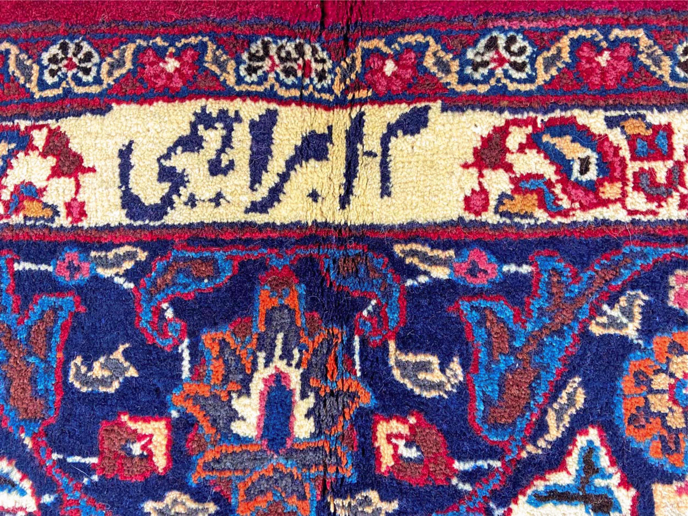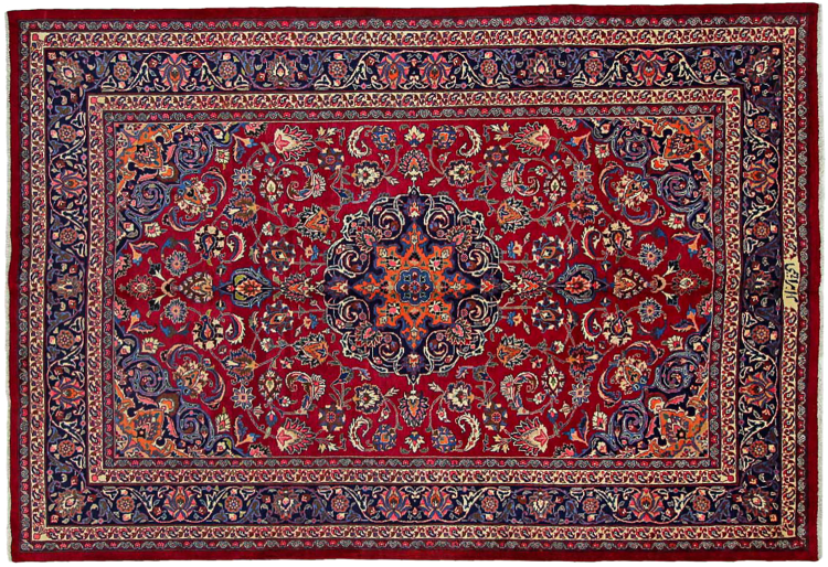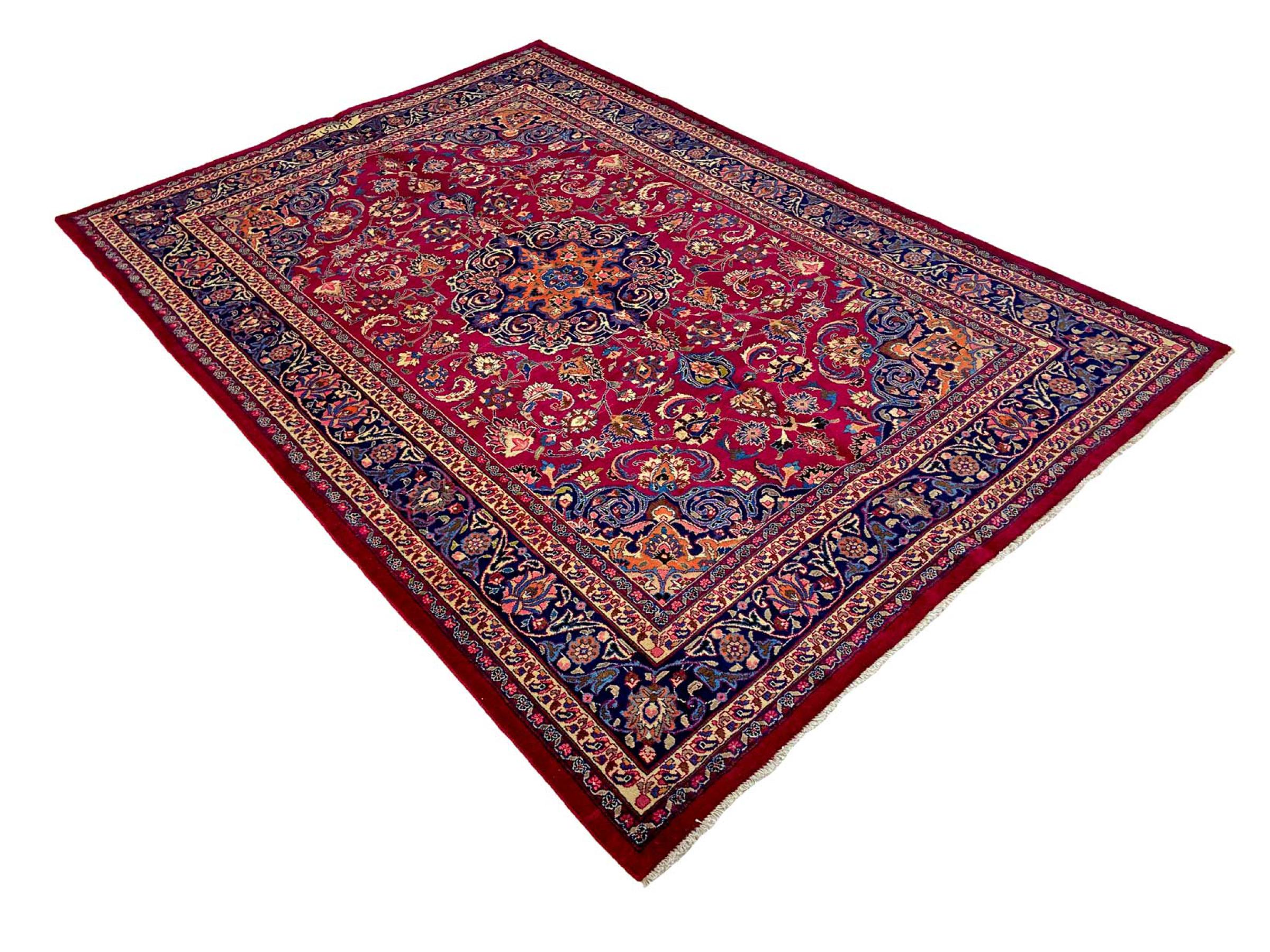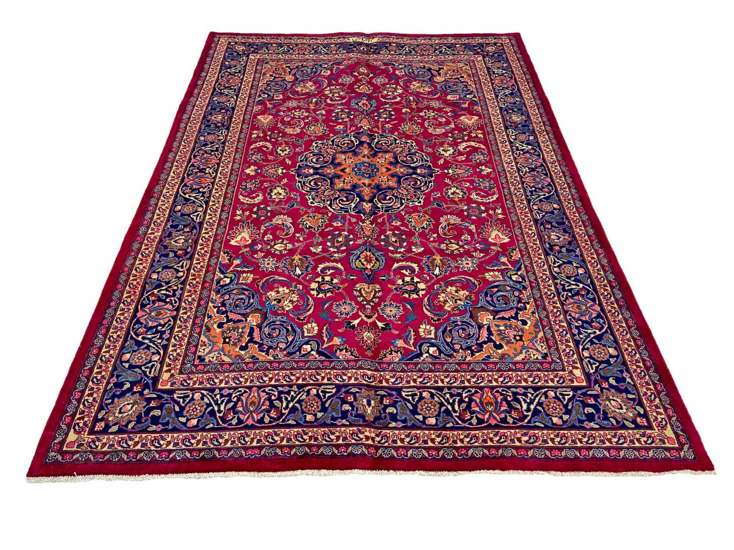 Dette tæppe fra Mashhad, en af de største byer i Iran, er håndknyttet af ren naturuld. Millioner af mennesker valfarter hvert år til denne hellige persiske by. Mashhad-tæpper er kendt for deres usædvanlige størrelser og uld af ekstremt høj kvalitet.
