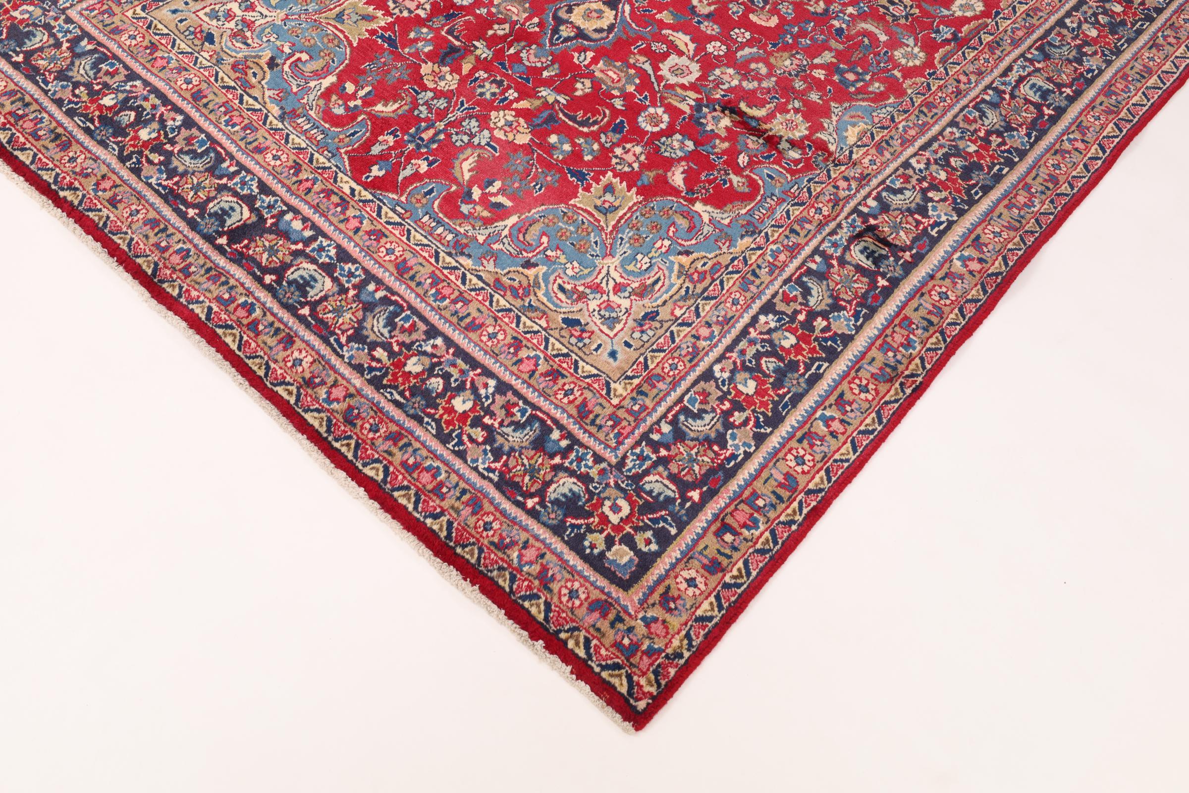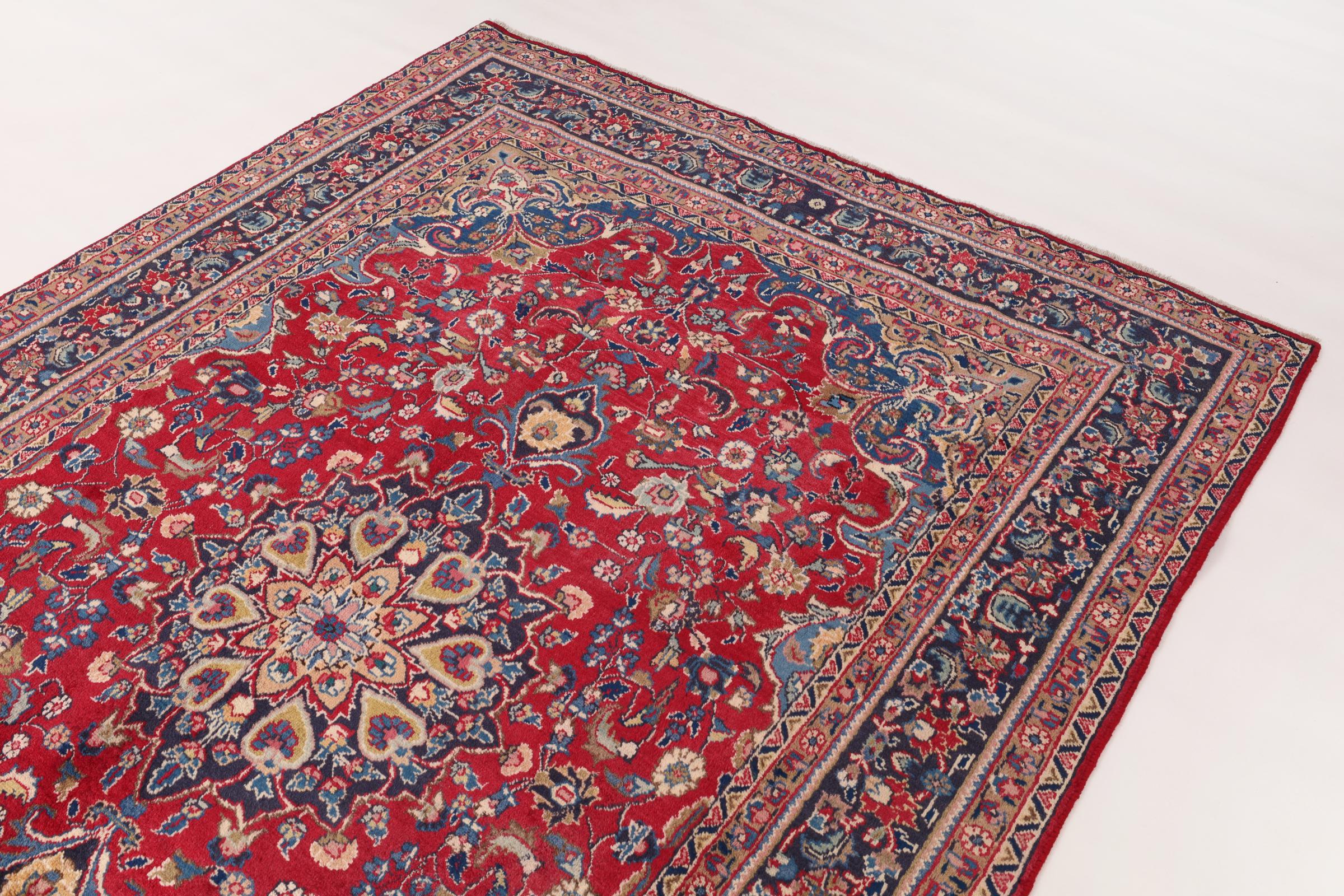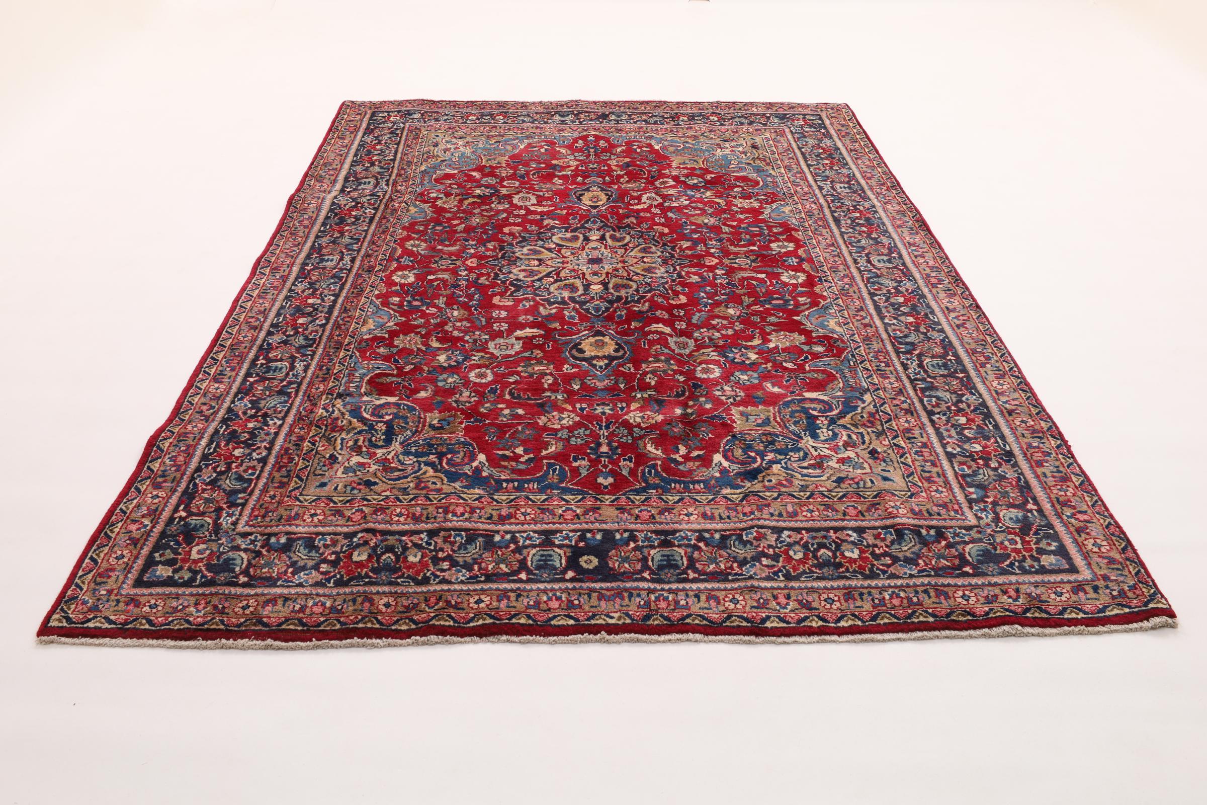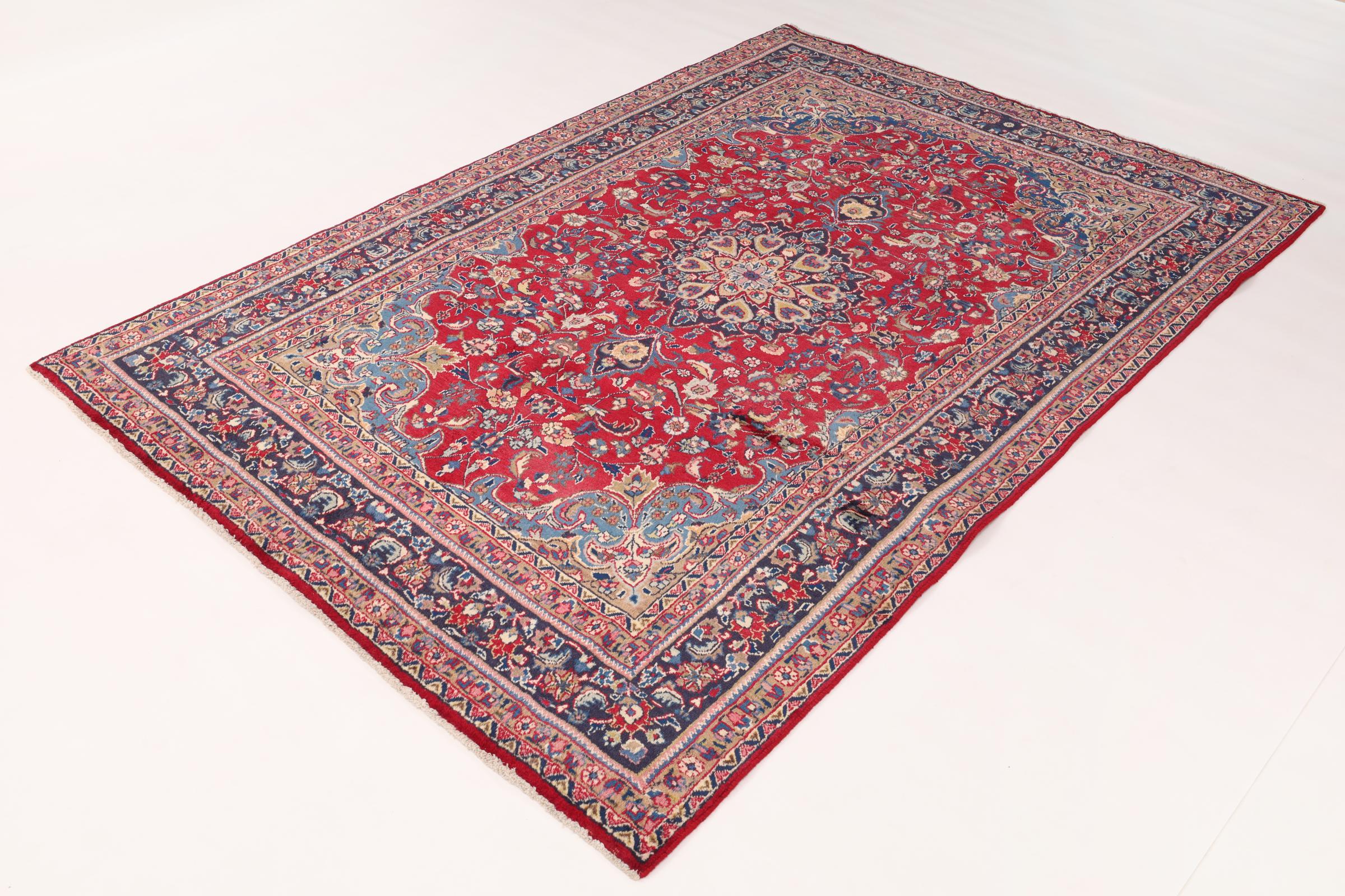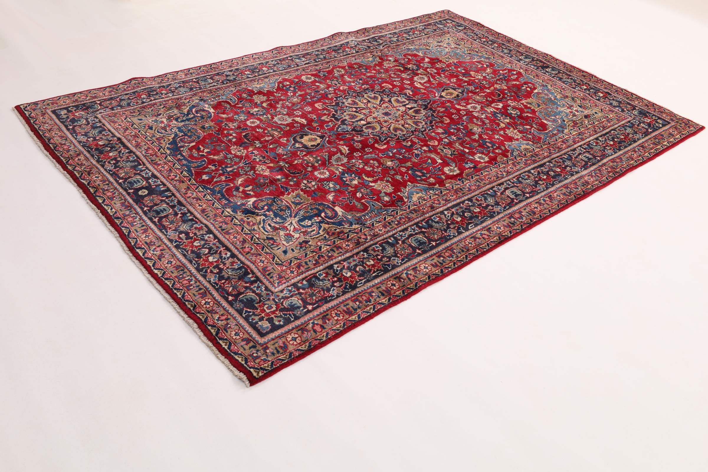 Dette tæppe fra Mashhad, en af de største byer i Iran, er håndknyttet af ren naturuld. Millioner af mennesker valfarter hvert år til denne hellige persiske by. Mashhad-tæpper er kendt for deres usædvanlige størrelser og uld af ekstremt høj kvalitet.