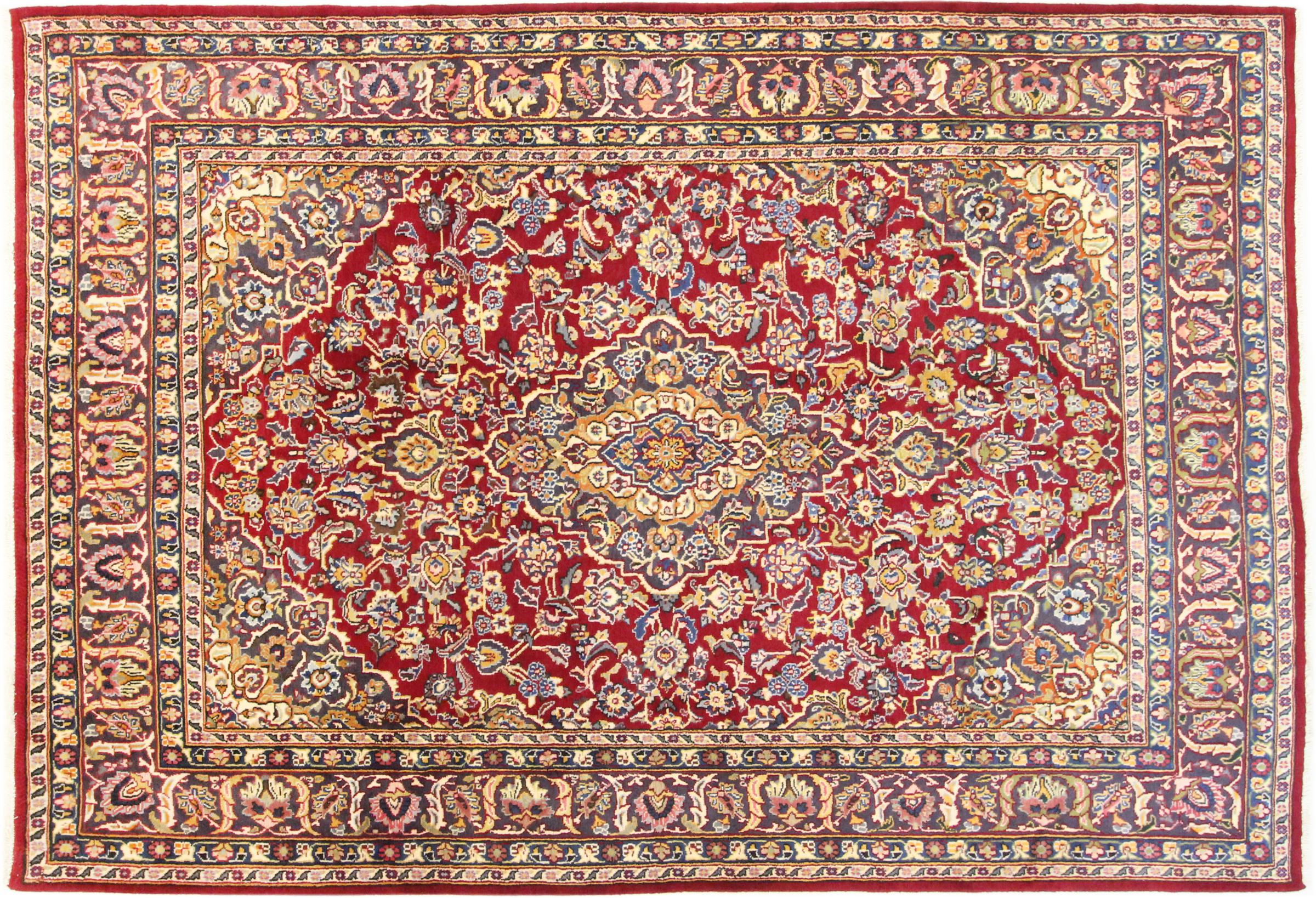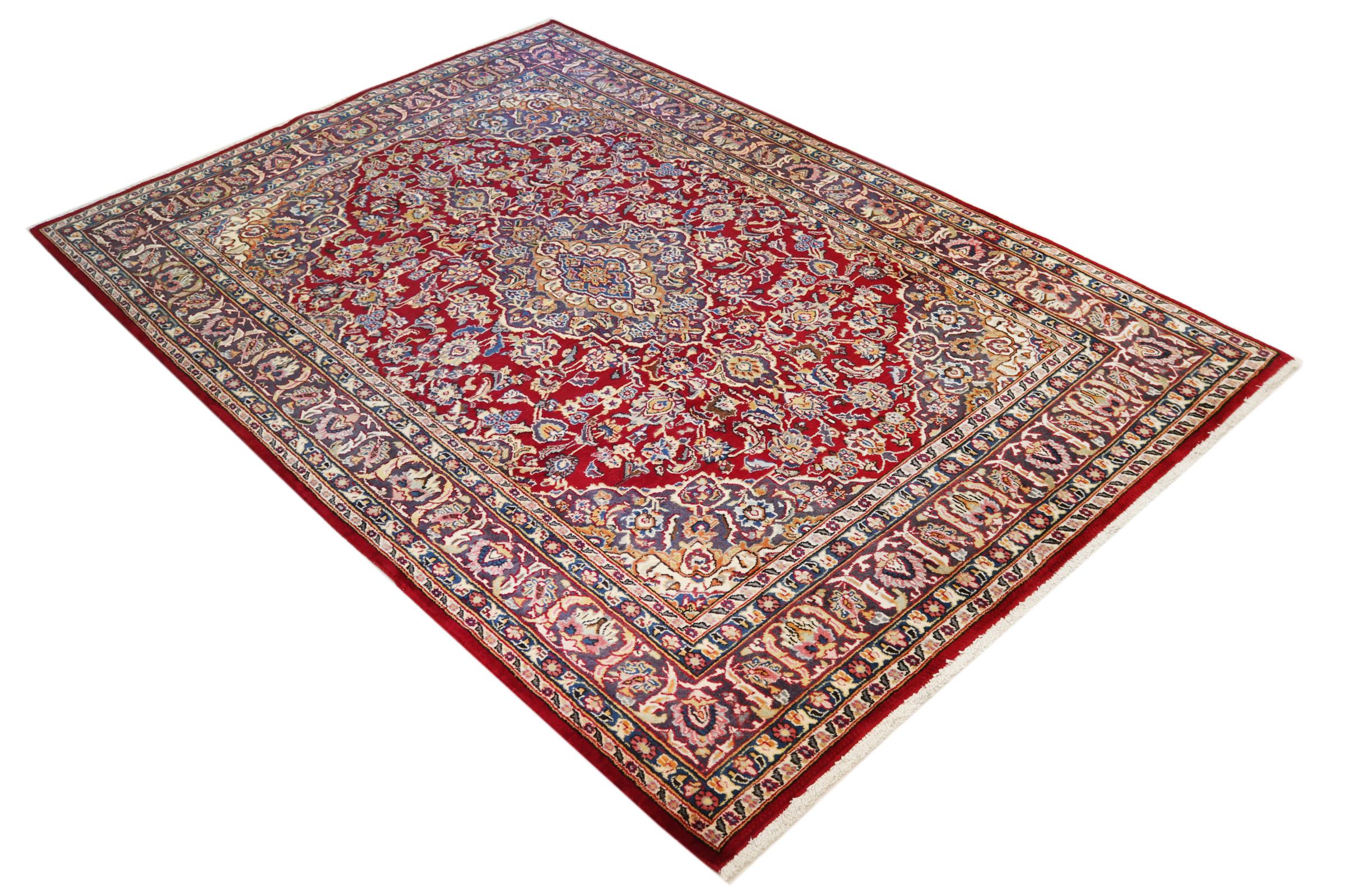 Dette tæppe fra Mashhad, en af de største byer i Iran, er håndknyttet af ren naturuld. Millioner af mennesker valfarter hvert år til denne hellige persiske by. Mashhad-tæpper er kendt for deres usædvanlige størrelser og uld af ekstremt høj kvalitet.