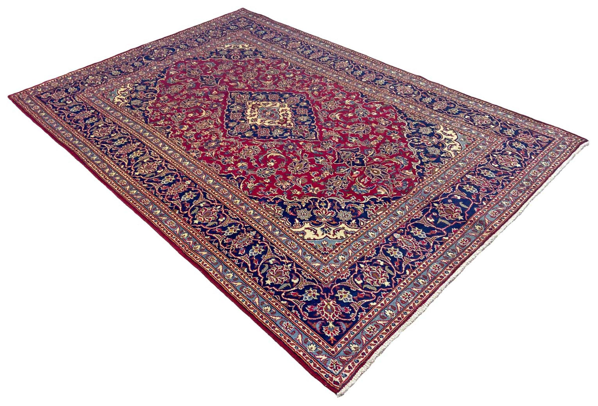 Dette tæppe fra Mashhad, en af de største byer i Iran, er håndknyttet af ren naturuld. Millioner af mennesker valfarter hvert år til denne hellige persiske by. Mashhad-tæpper er kendt for deres usædvanlige størrelser og uld af ekstremt høj kvalitet.