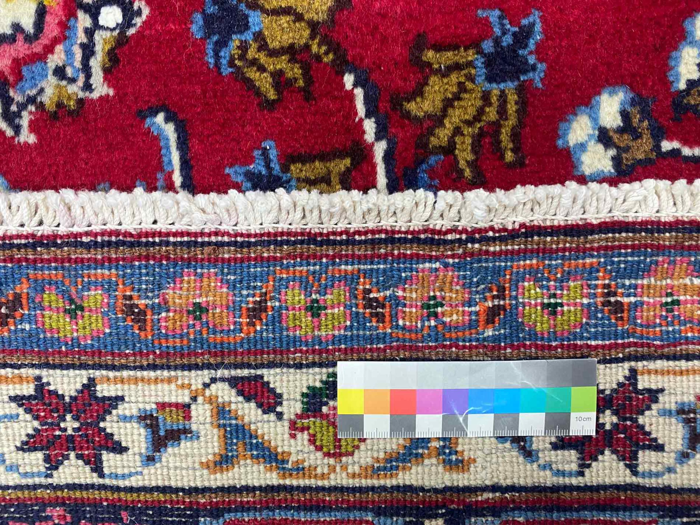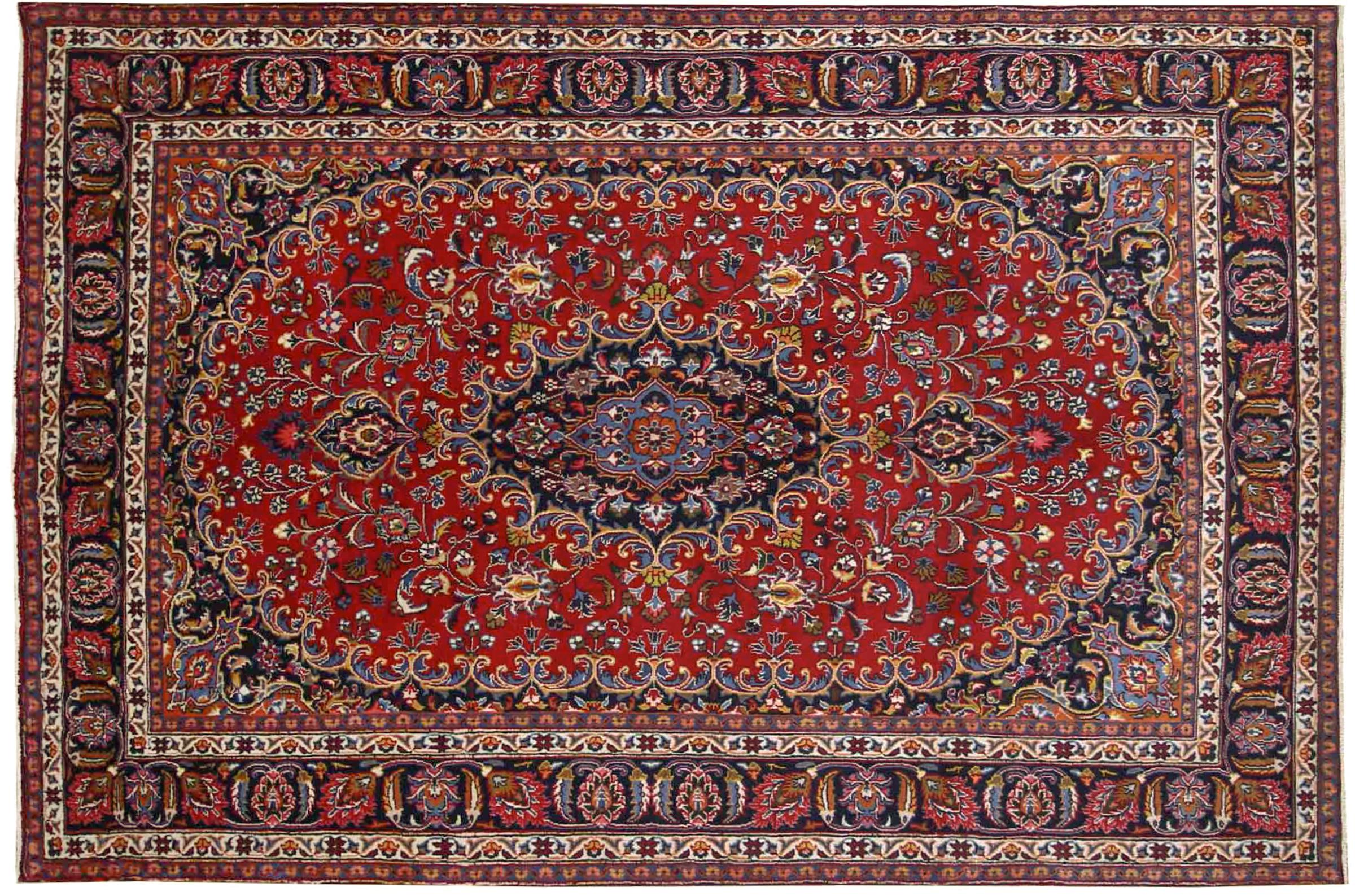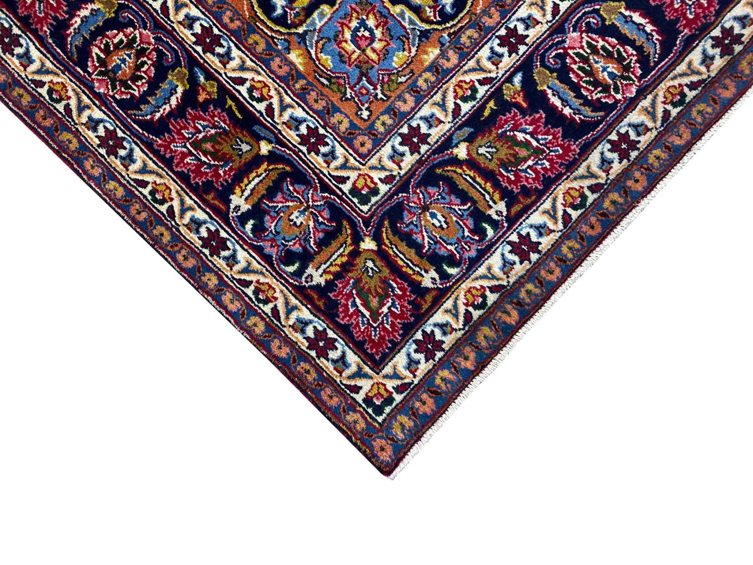 Dette tæppe fra Mashhad, en af de største byer i Iran, er håndknyttet af ren naturuld. Millioner af mennesker valfarter hvert år til denne hellige persiske by. Mashhad-tæpper er kendt for deres usædvanlige størrelser og uld af ekstremt høj kvalitet.