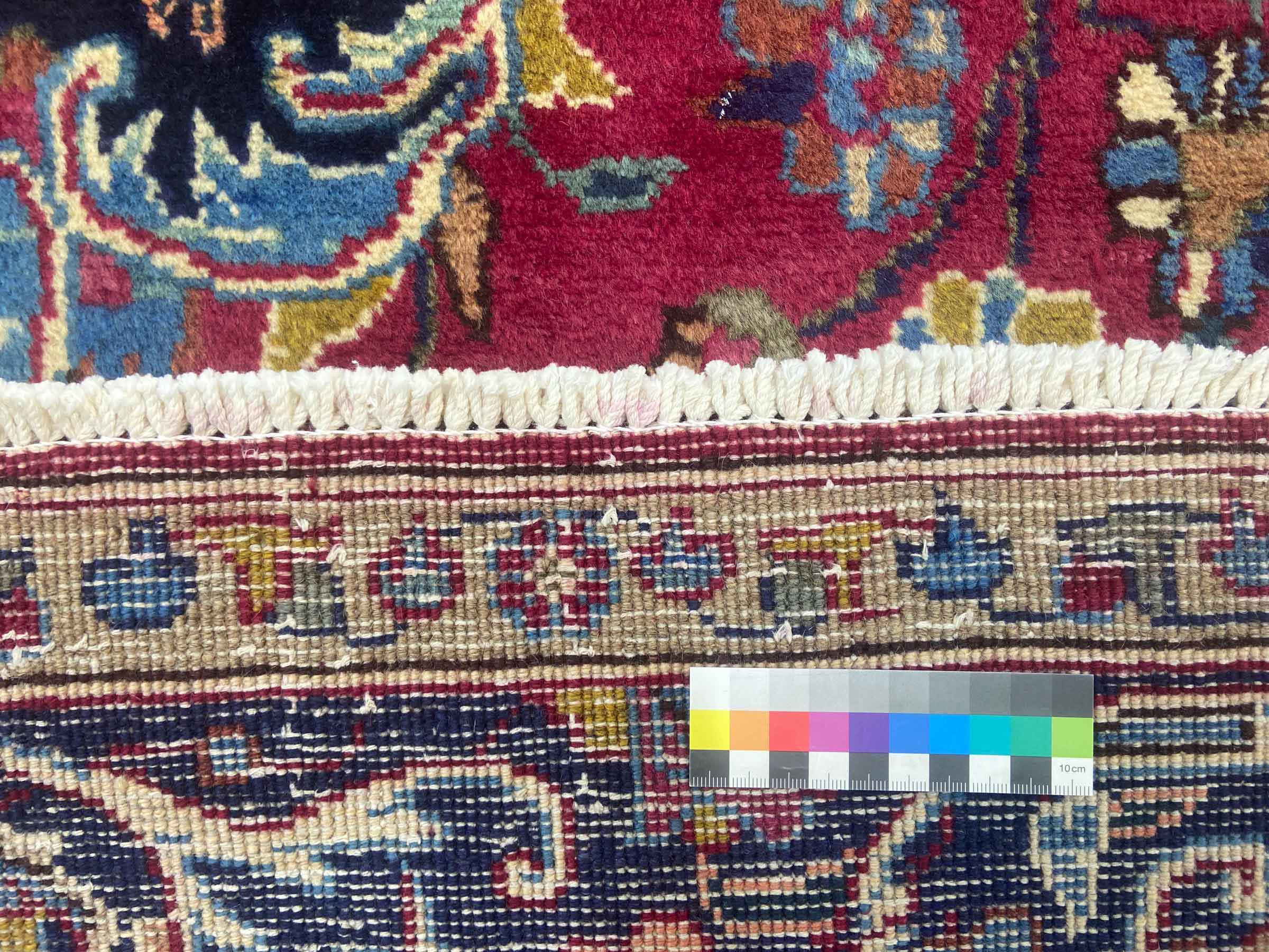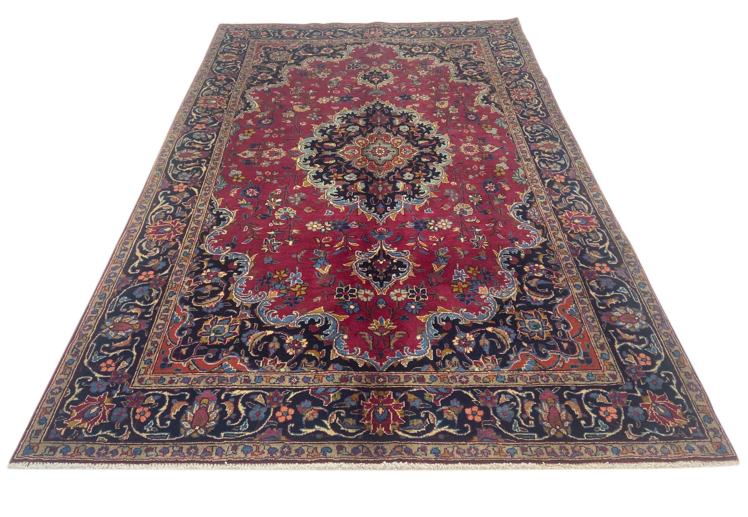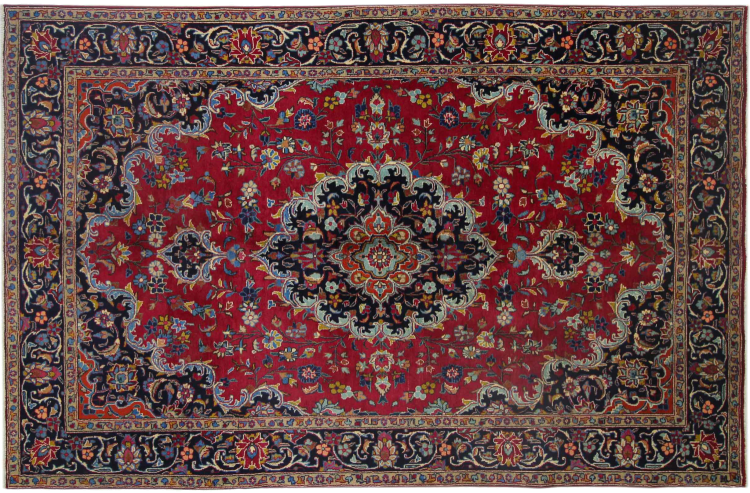 Dette tæppe fra Mashhad, en af de største byer i Iran, er håndknyttet af ren naturuld. Millioner af mennesker valfarter hvert år til denne hellige persiske by. Mashhad-tæpper er kendt for deres usædvanlige størrelser og uld af ekstremt høj kvalitet.