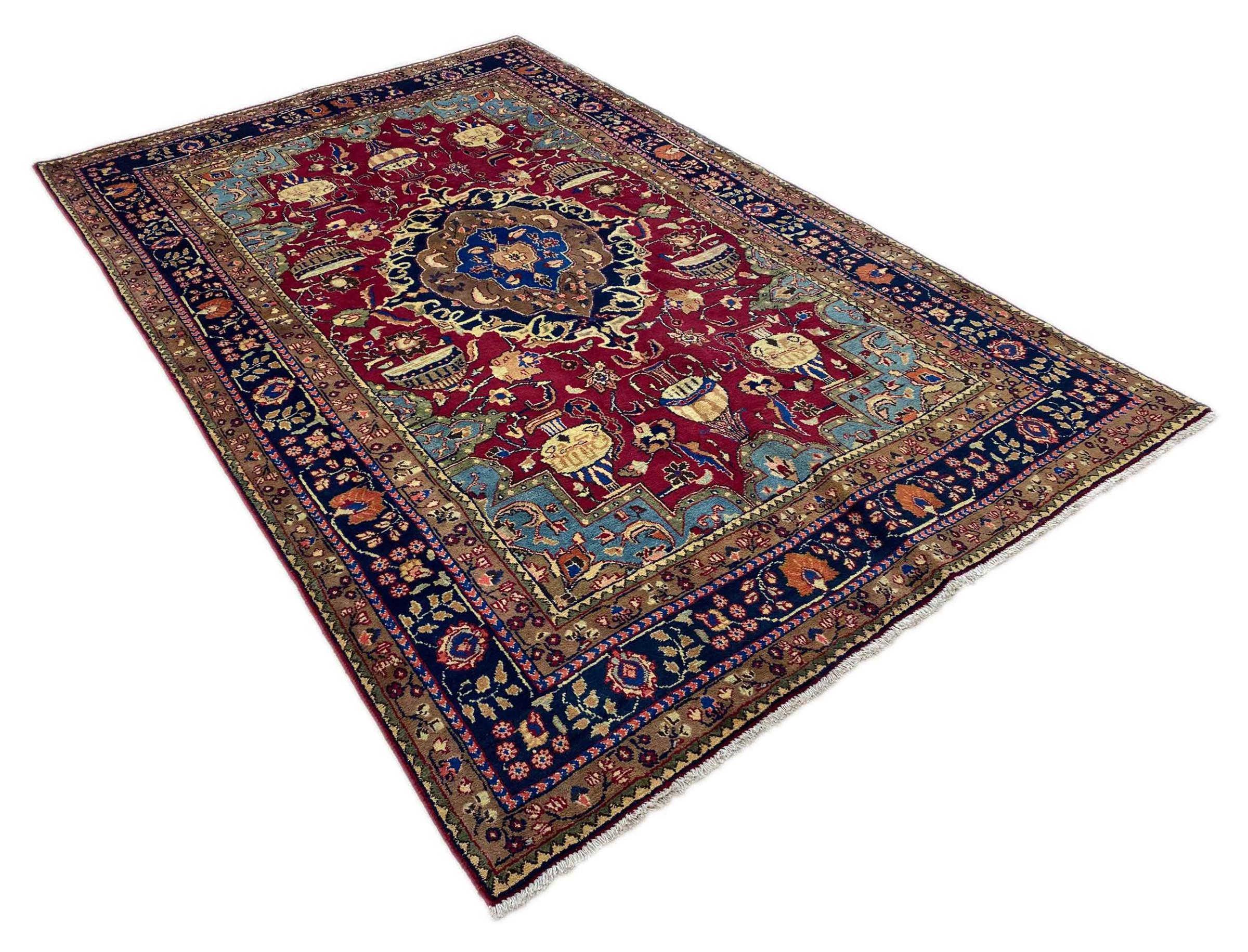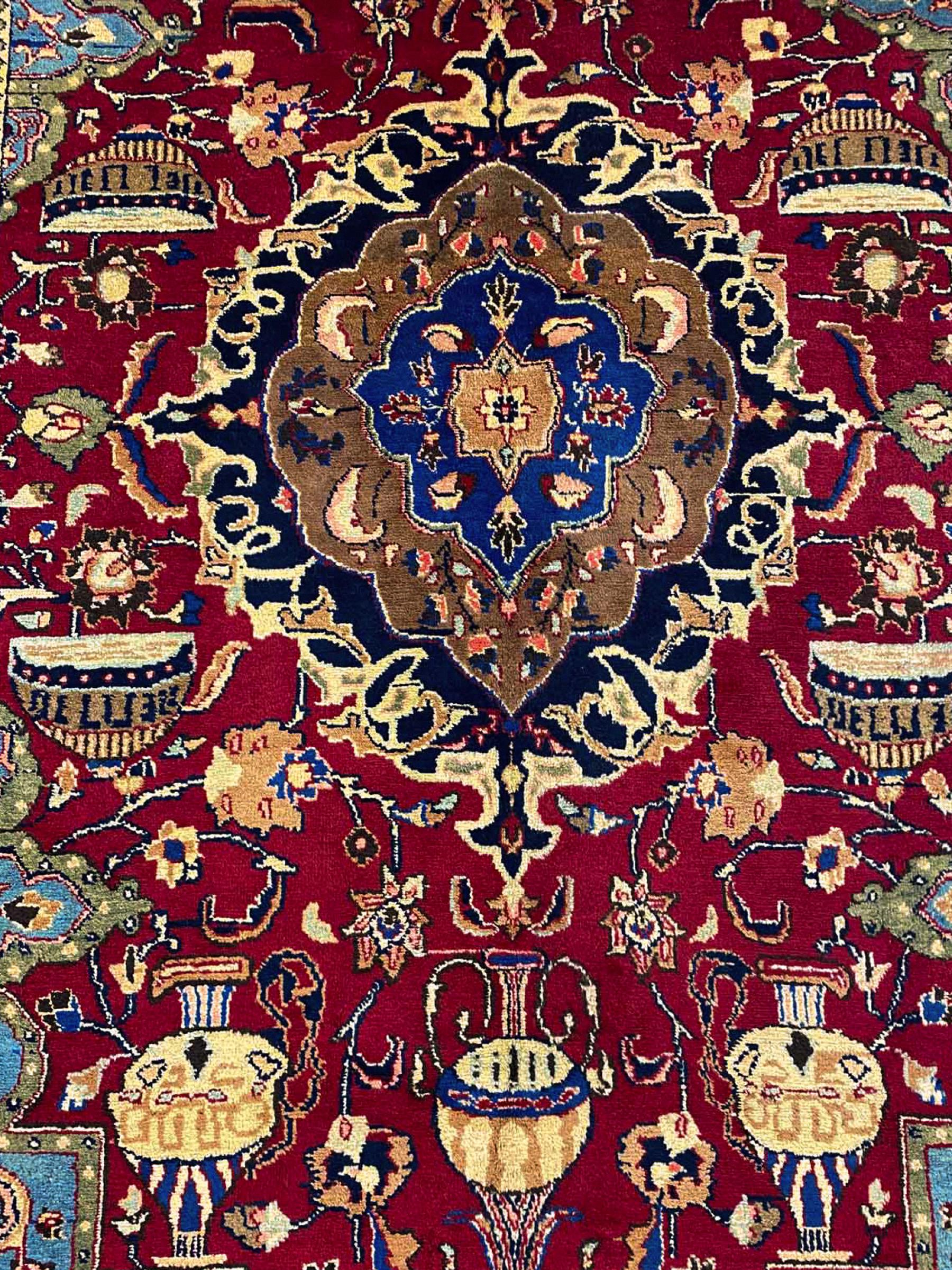 Dette tæppe fra Mashhad, en af de største byer i Iran, er håndknyttet af ren naturuld. Millioner af mennesker valfarter hvert år til denne hellige persiske by. Mashhad-tæpper er kendt for deres usædvanlige størrelser og uld af ekstremt høj kvalitet.
