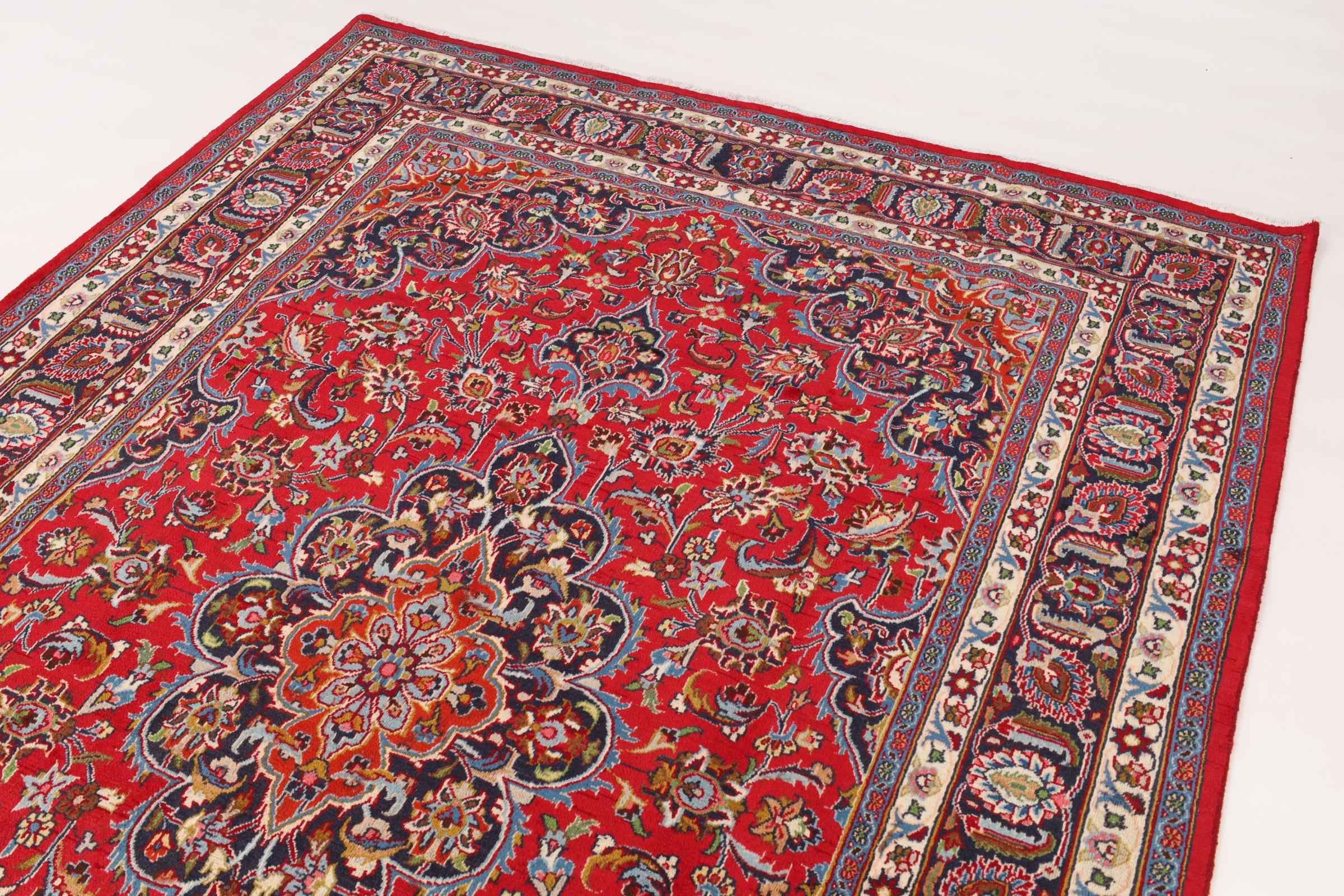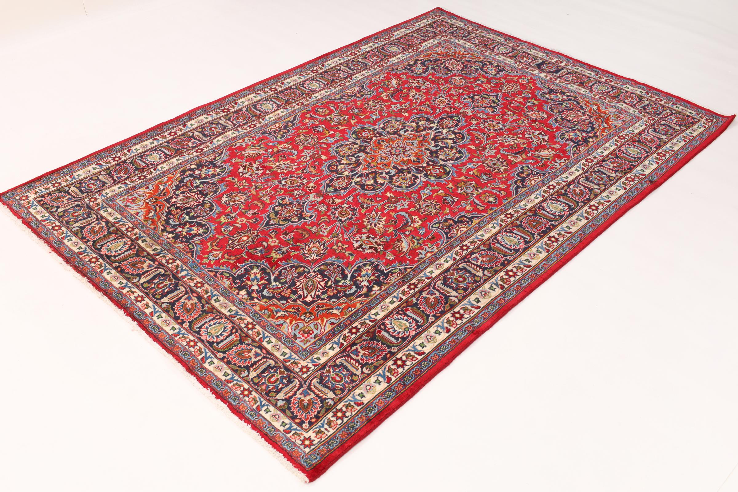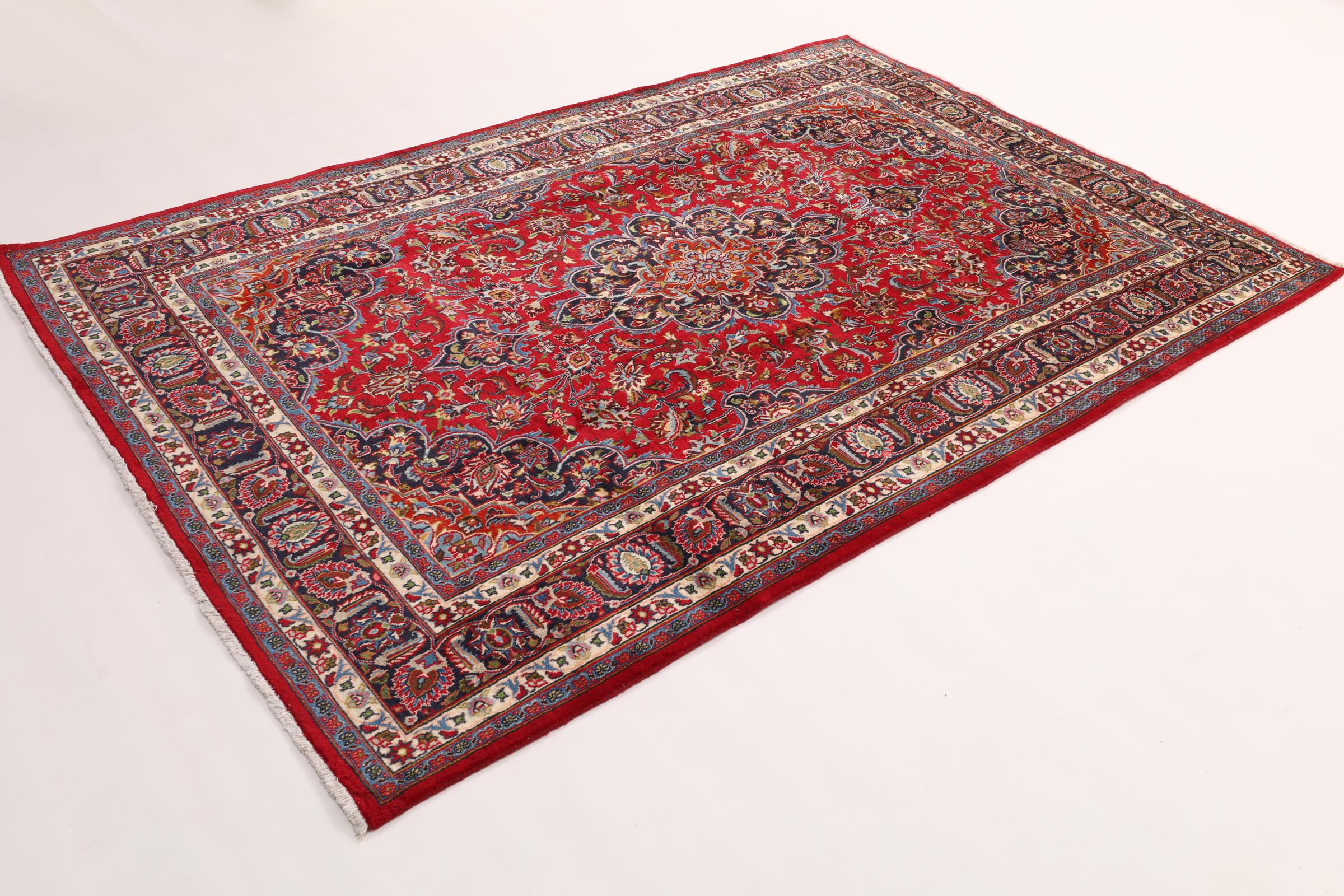 Dette tæppe fra Mashhad, en af de største byer i Iran, er håndknyttet af ren naturuld. Millioner af mennesker valfarter hvert år til denne hellige persiske by. Mashhad-tæpper er kendt for deres usædvanlige størrelser og uld af ekstremt høj kvalitet.