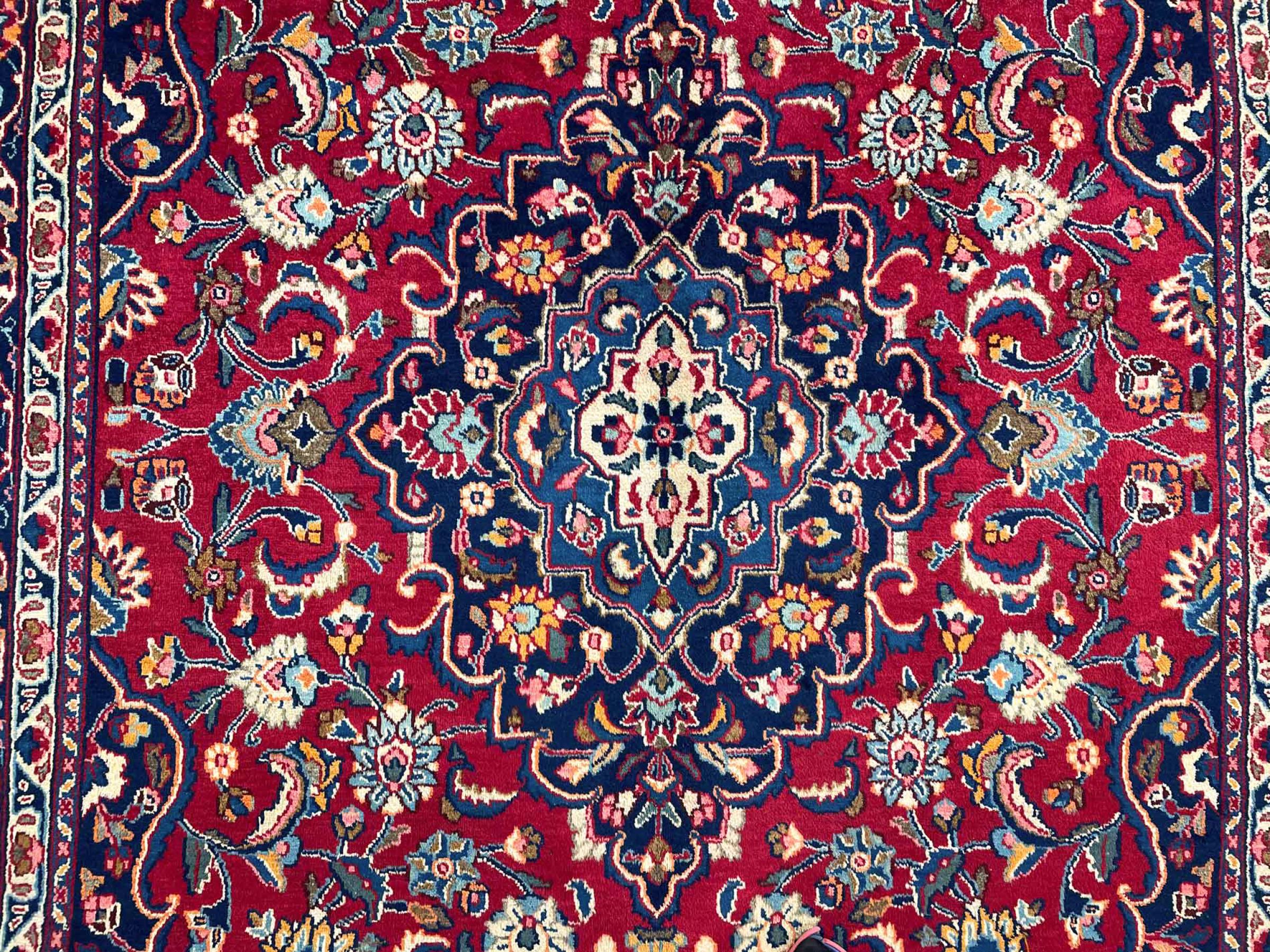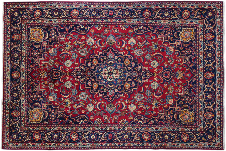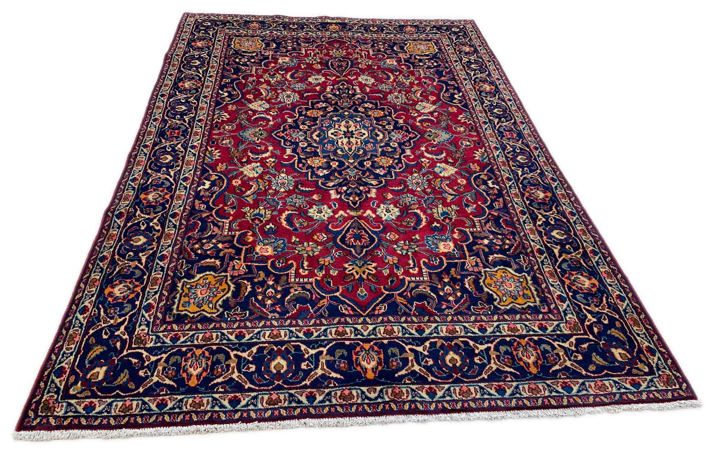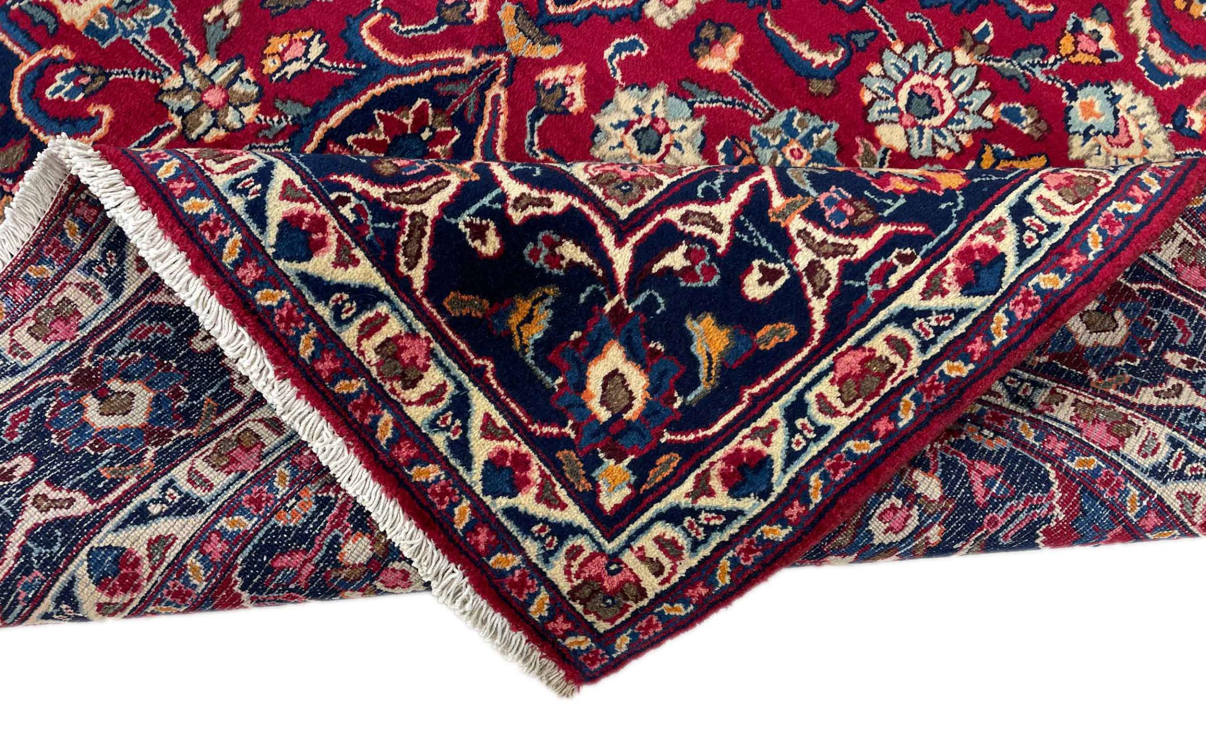 Dette tæppe fra Mashhad, en af de største byer i Iran, er håndknyttet af ren naturuld. Millioner af mennesker valfarter hvert år til denne hellige persiske by. Mashhad-tæpper er kendt for deres usædvanlige størrelser og uld af ekstremt høj kvalitet.