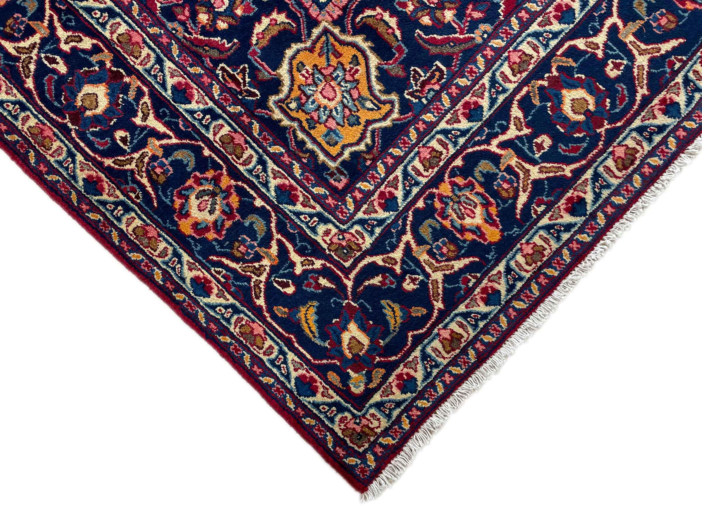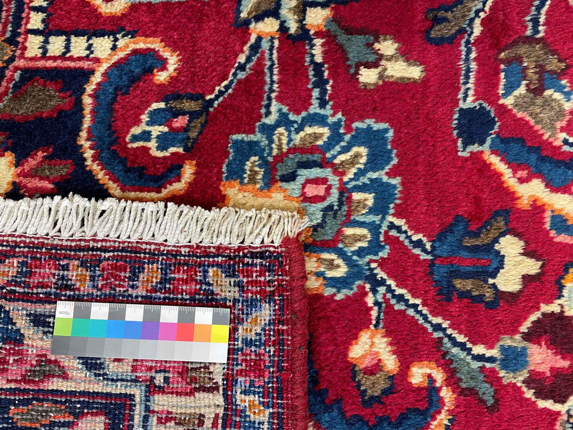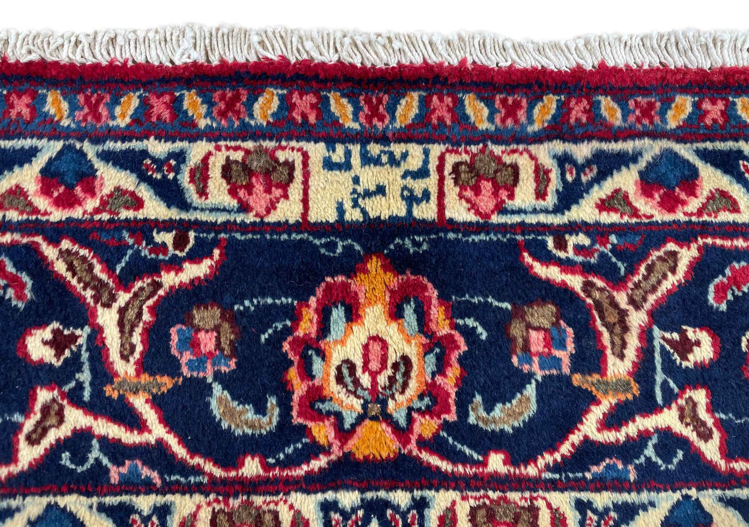 Dette tæppe fra Mashhad, en af de største byer i Iran, er håndknyttet af ren naturuld. Millioner af mennesker valfarter hvert år til denne hellige persiske by. Mashhad-tæpper er kendt for deres usædvanlige størrelser og uld af ekstremt høj kvalitet.