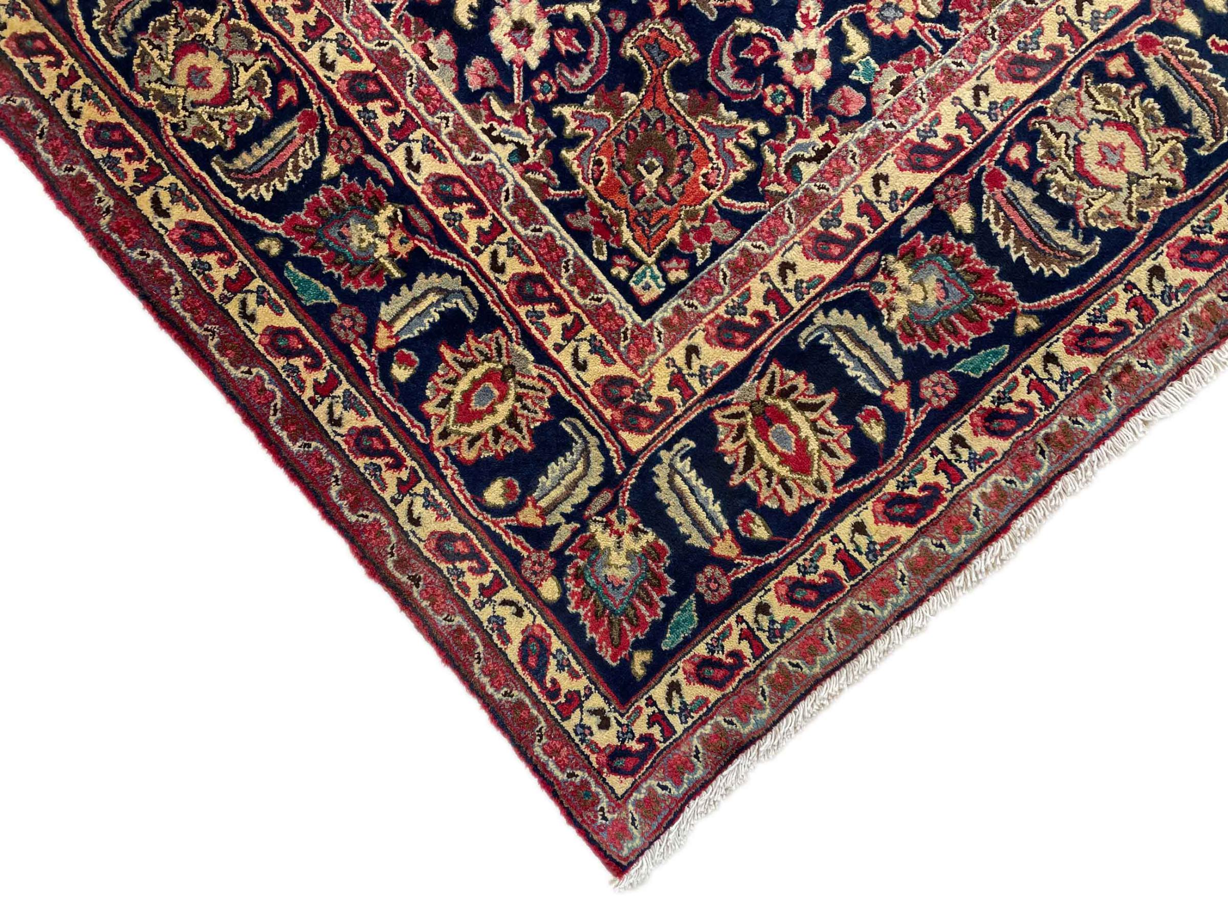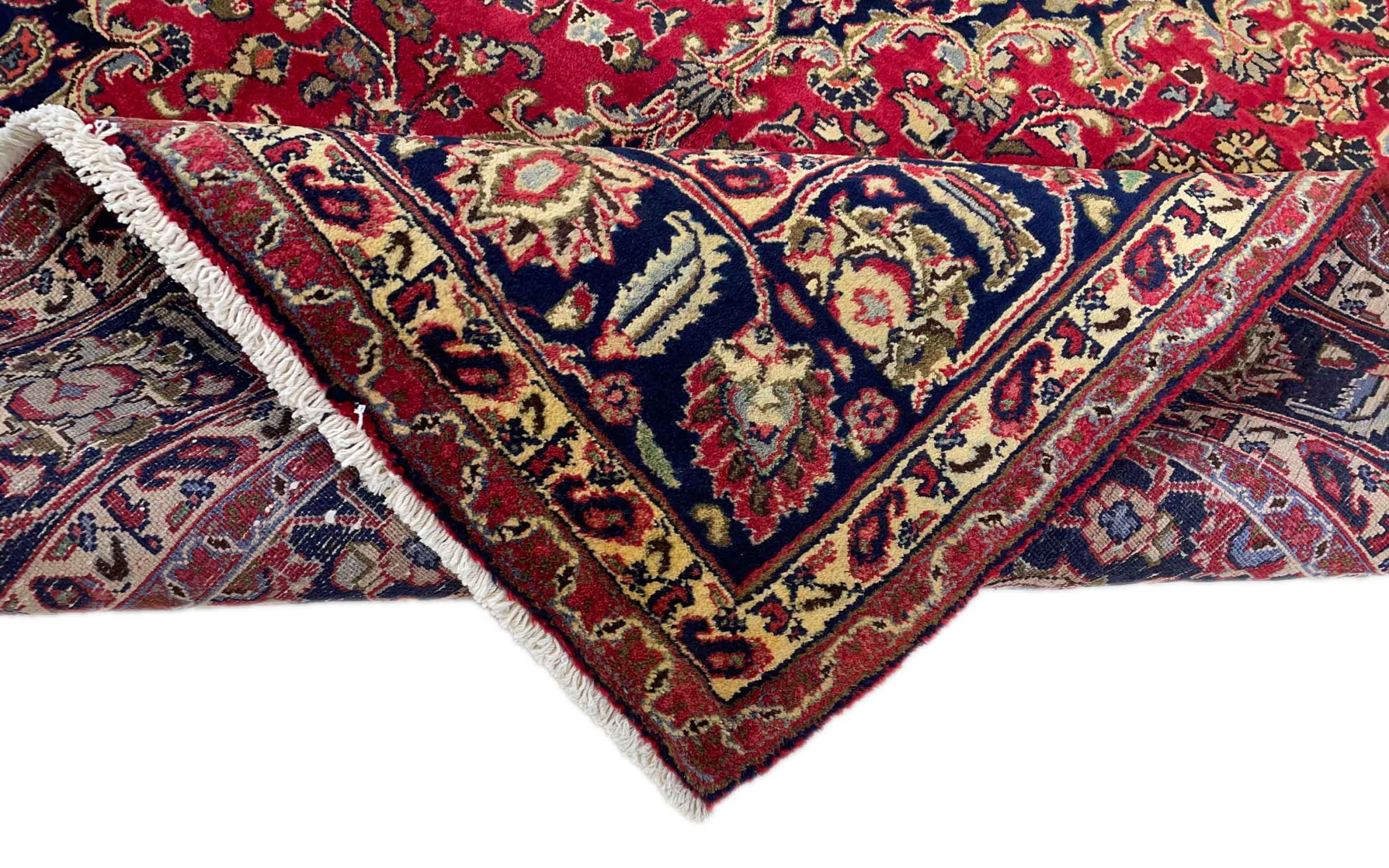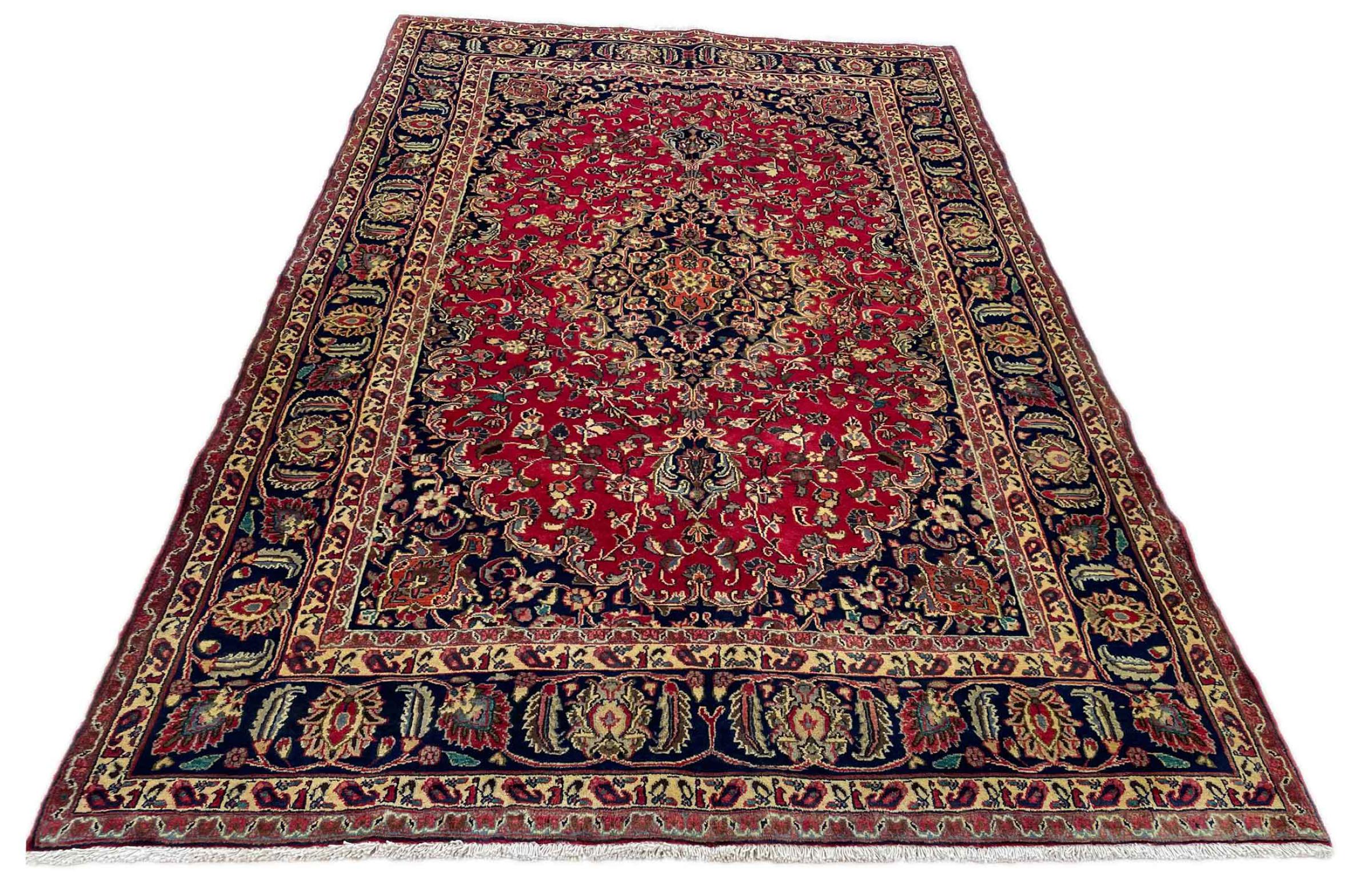 Dette tæppe fra Mashhad, en af de største byer i Iran, er håndknyttet af ren naturuld. Millioner af mennesker valfarter hvert år til denne hellige persiske by. Mashhad-tæpper er kendt for deres usædvanlige størrelser og uld af ekstremt høj kvalitet.