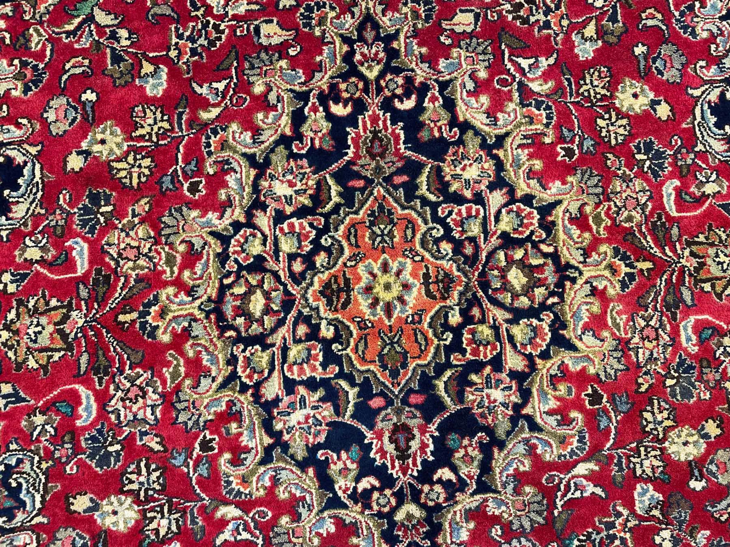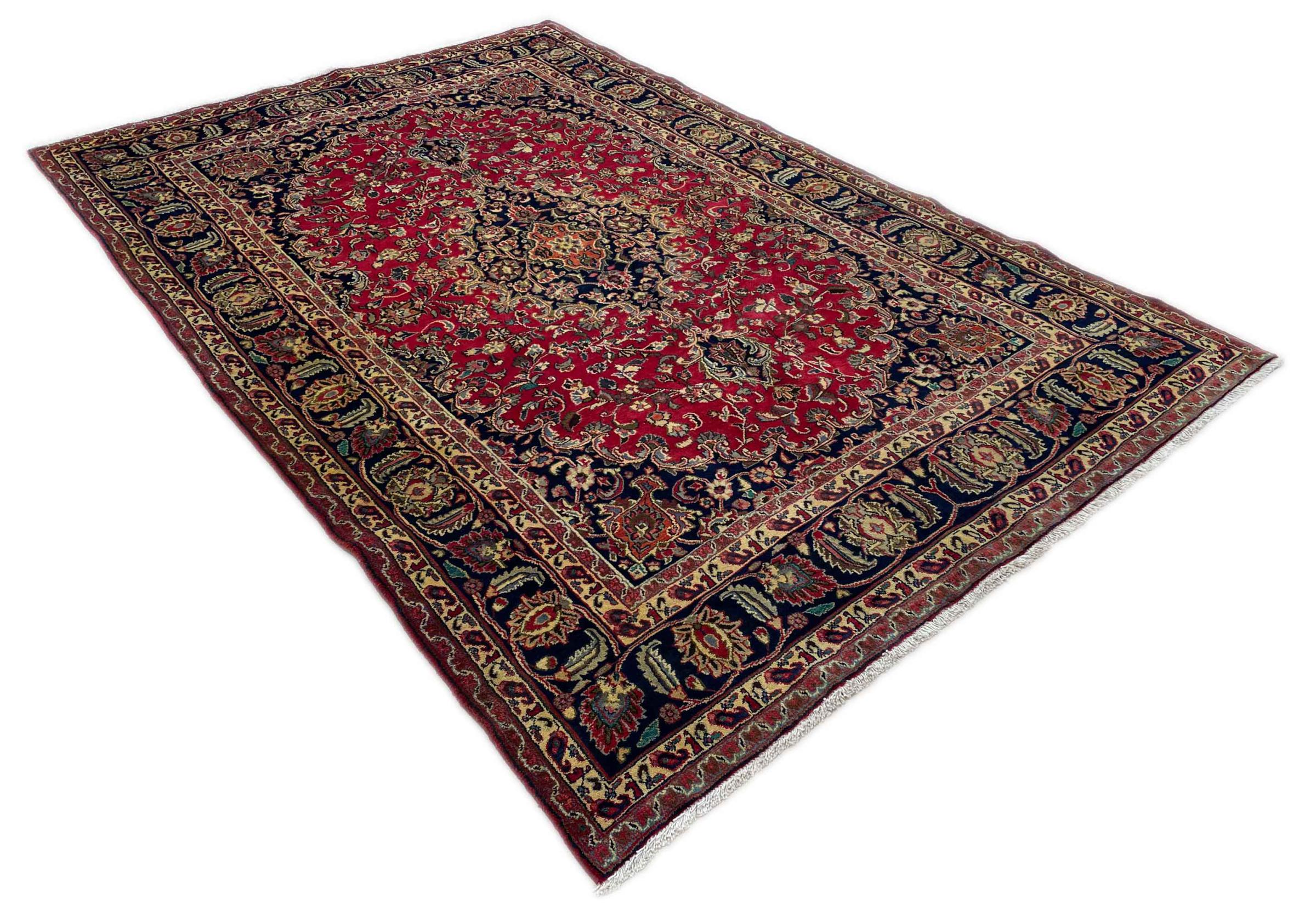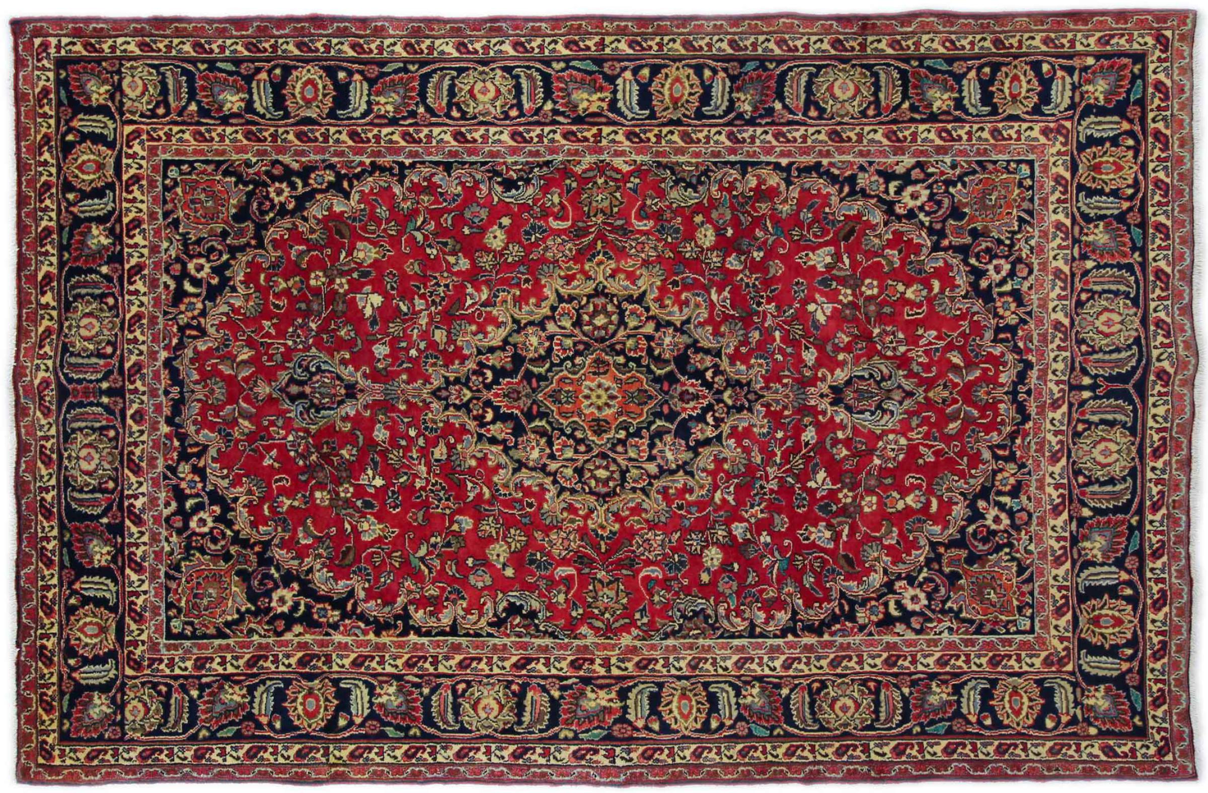 Dette tæppe fra Mashhad, en af de største byer i Iran, er håndknyttet af ren naturuld. Millioner af mennesker valfarter hvert år til denne hellige persiske by. Mashhad-tæpper er kendt for deres usædvanlige størrelser og uld af ekstremt høj kvalitet.