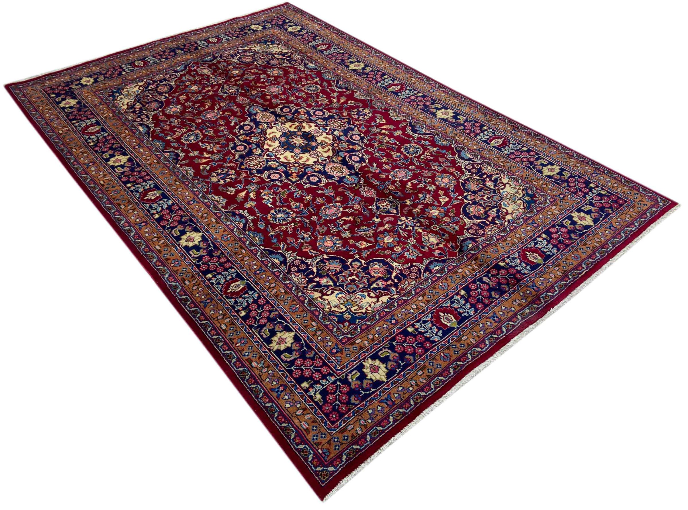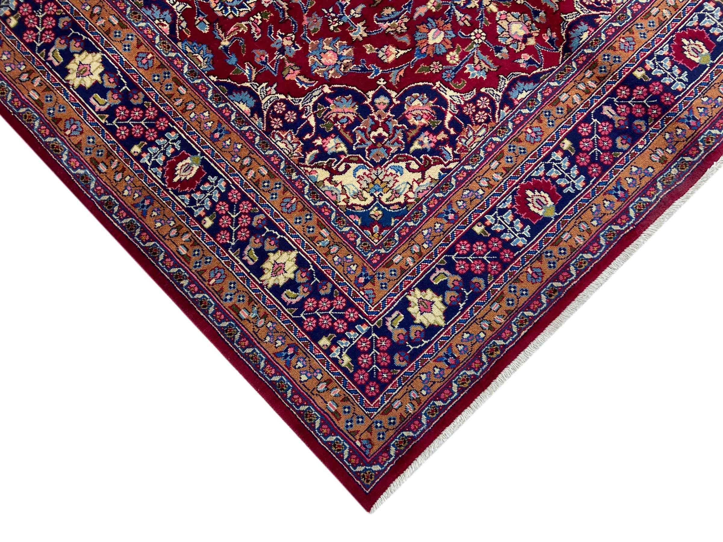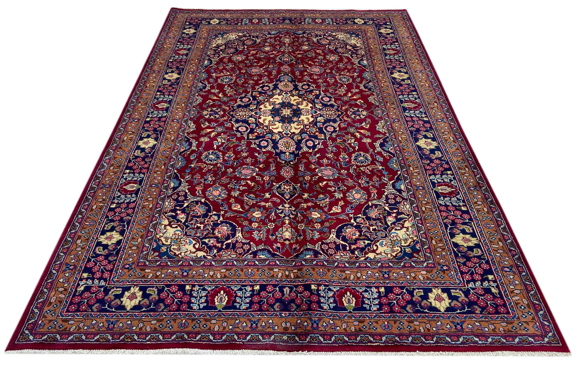 Dette tæppe fra Mashhad, en af de største byer i Iran, er håndknyttet af ren naturuld. Millioner af mennesker valfarter hvert år til denne hellige persiske by. Mashhad-tæpper er kendt for deres usædvanlige størrelser og uld af ekstremt høj kvalitet.