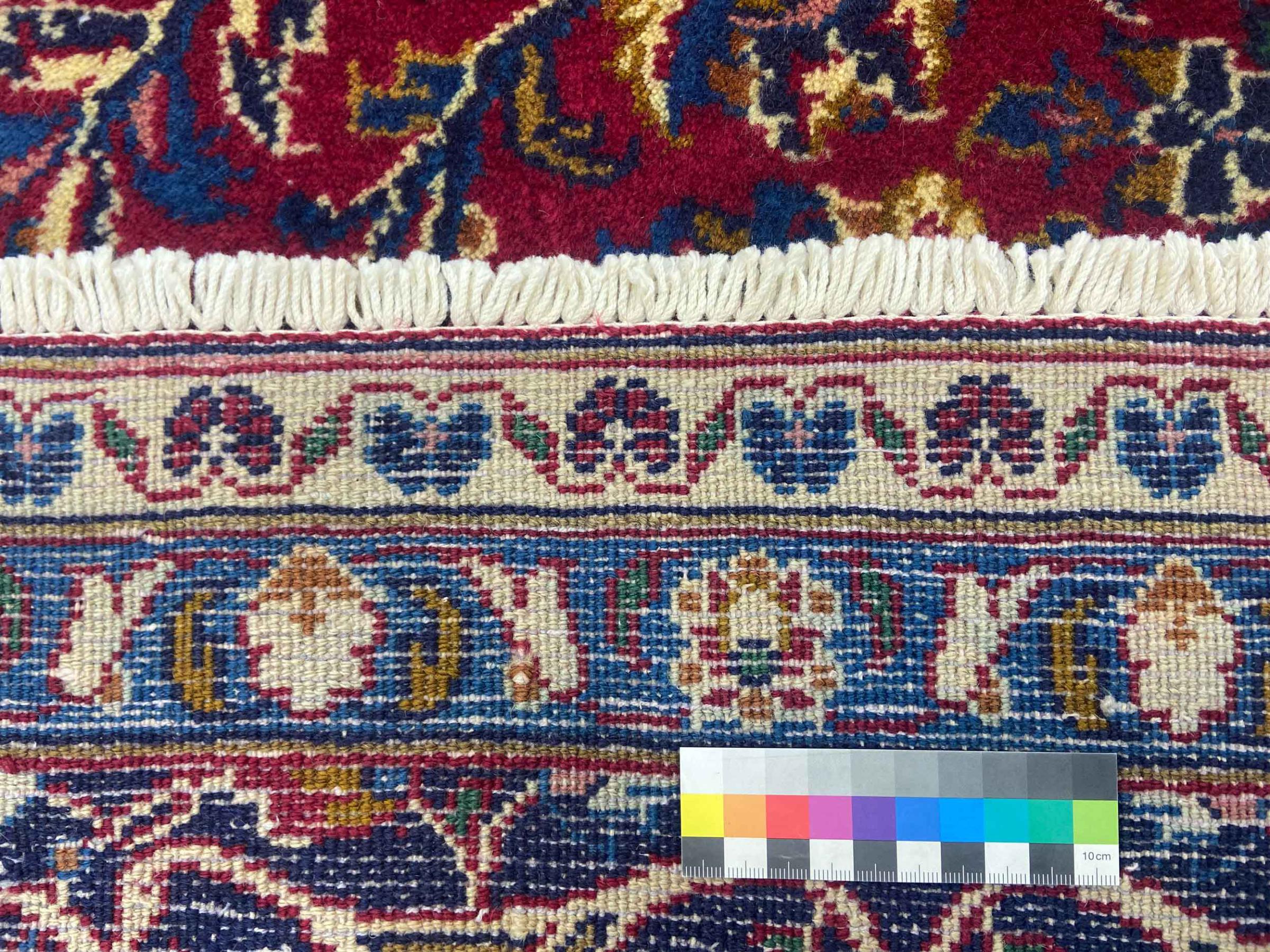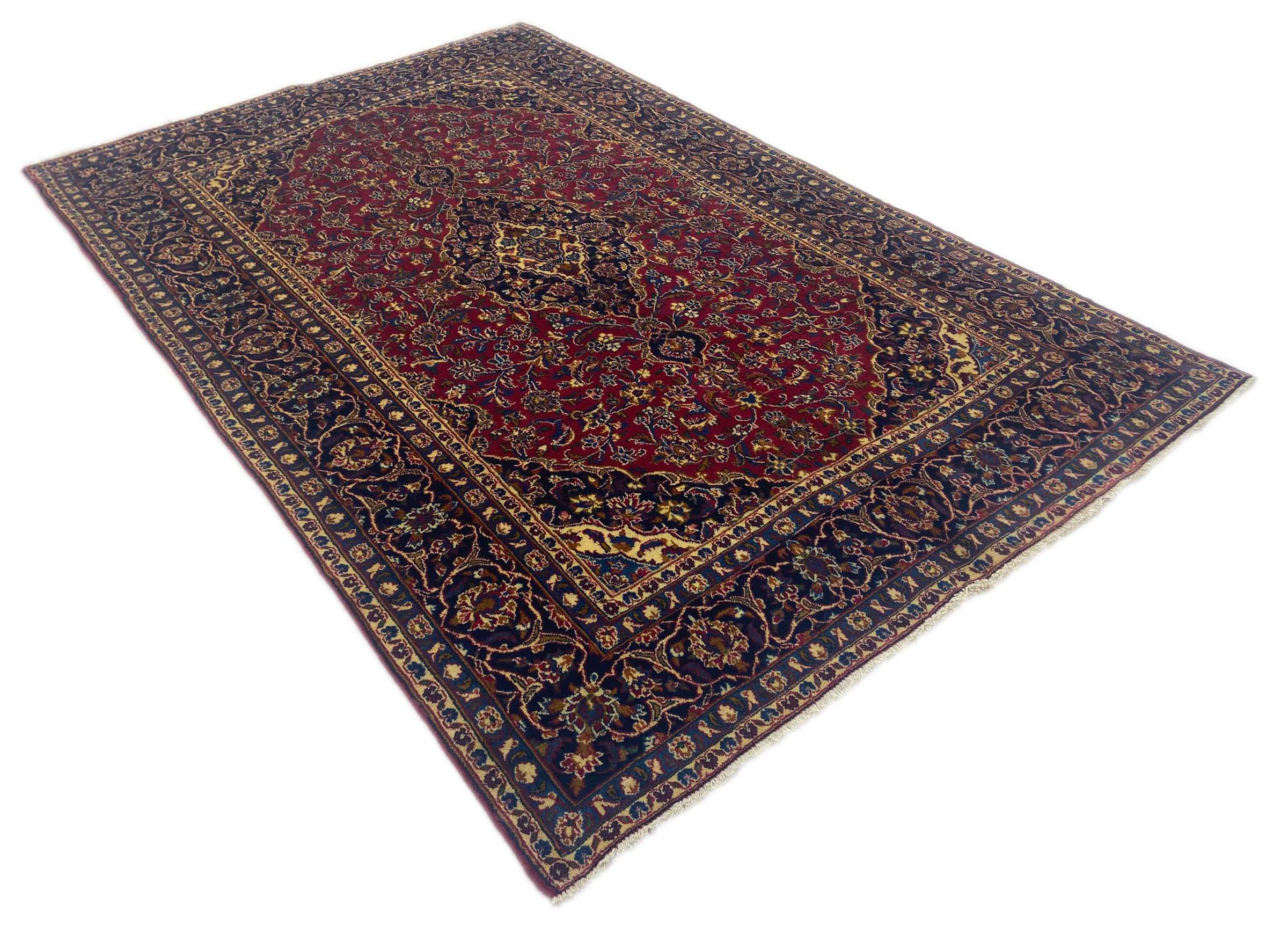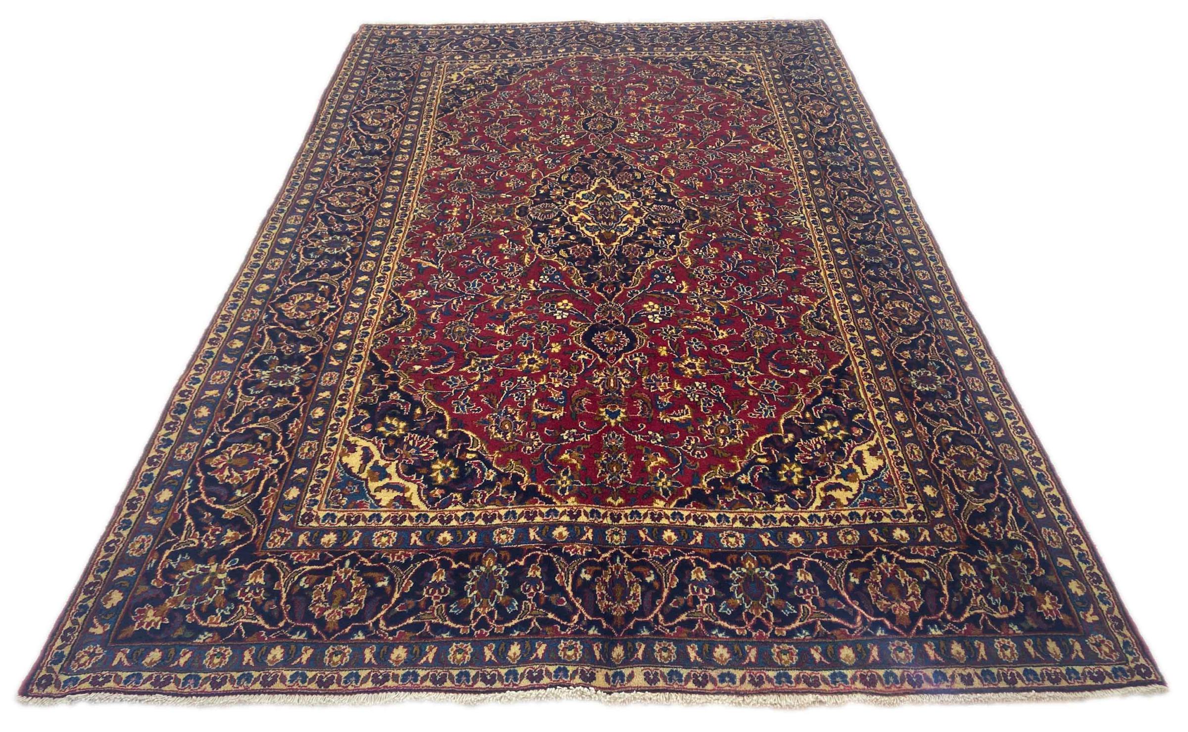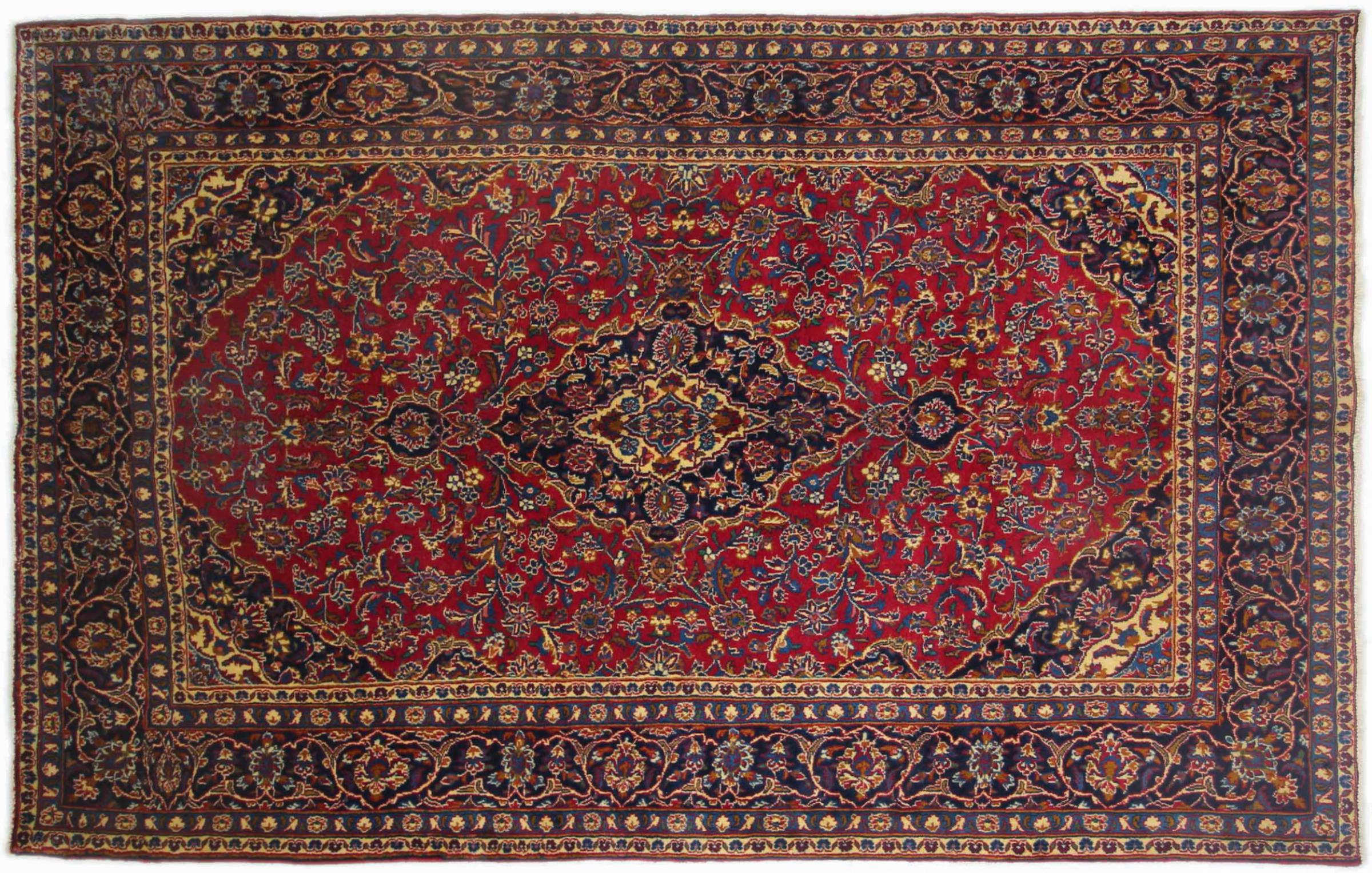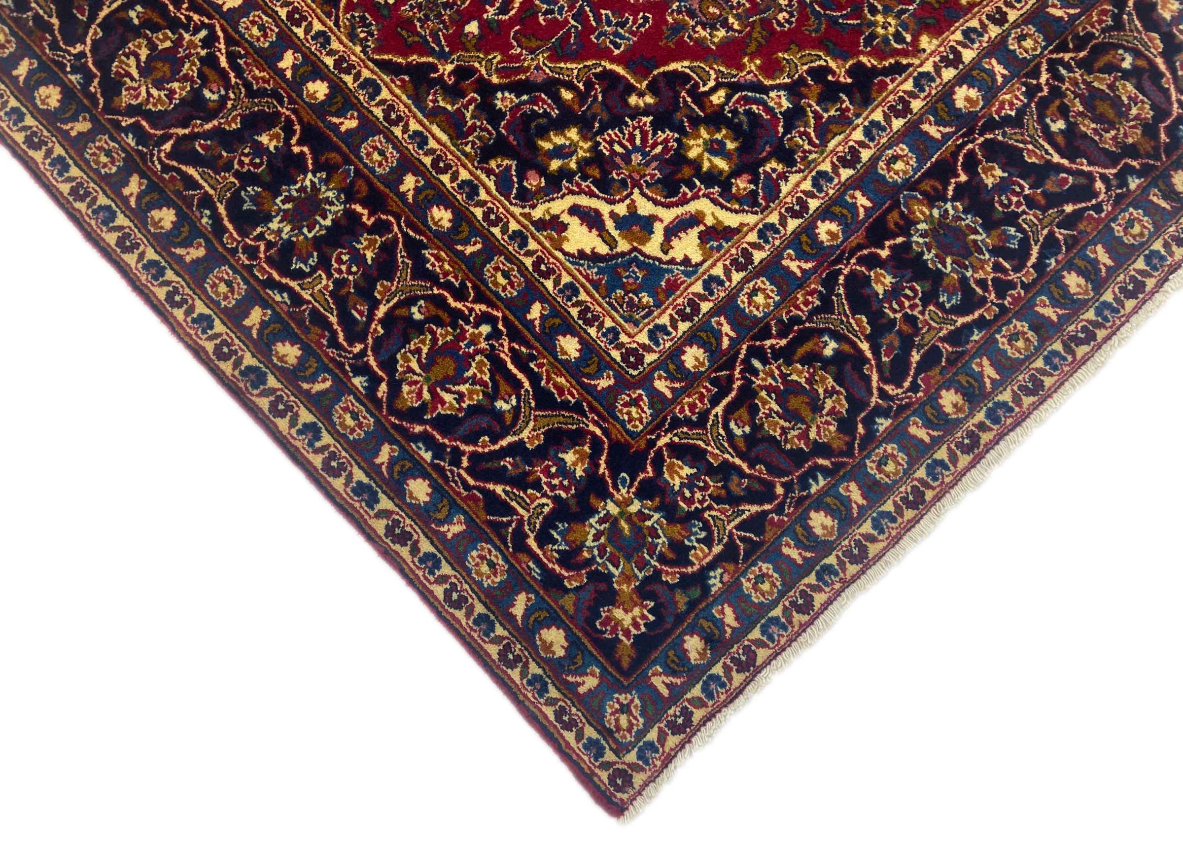Dette tæppe fra Mashhad, en af de største byer i Iran, er håndknyttet af ren naturuld. Millioner af mennesker valfarter hvert år til denne hellige persiske by. Mashhad-tæpper er kendt for deres usædvanlige størrelser og uld af ekstremt høj kvalitet.