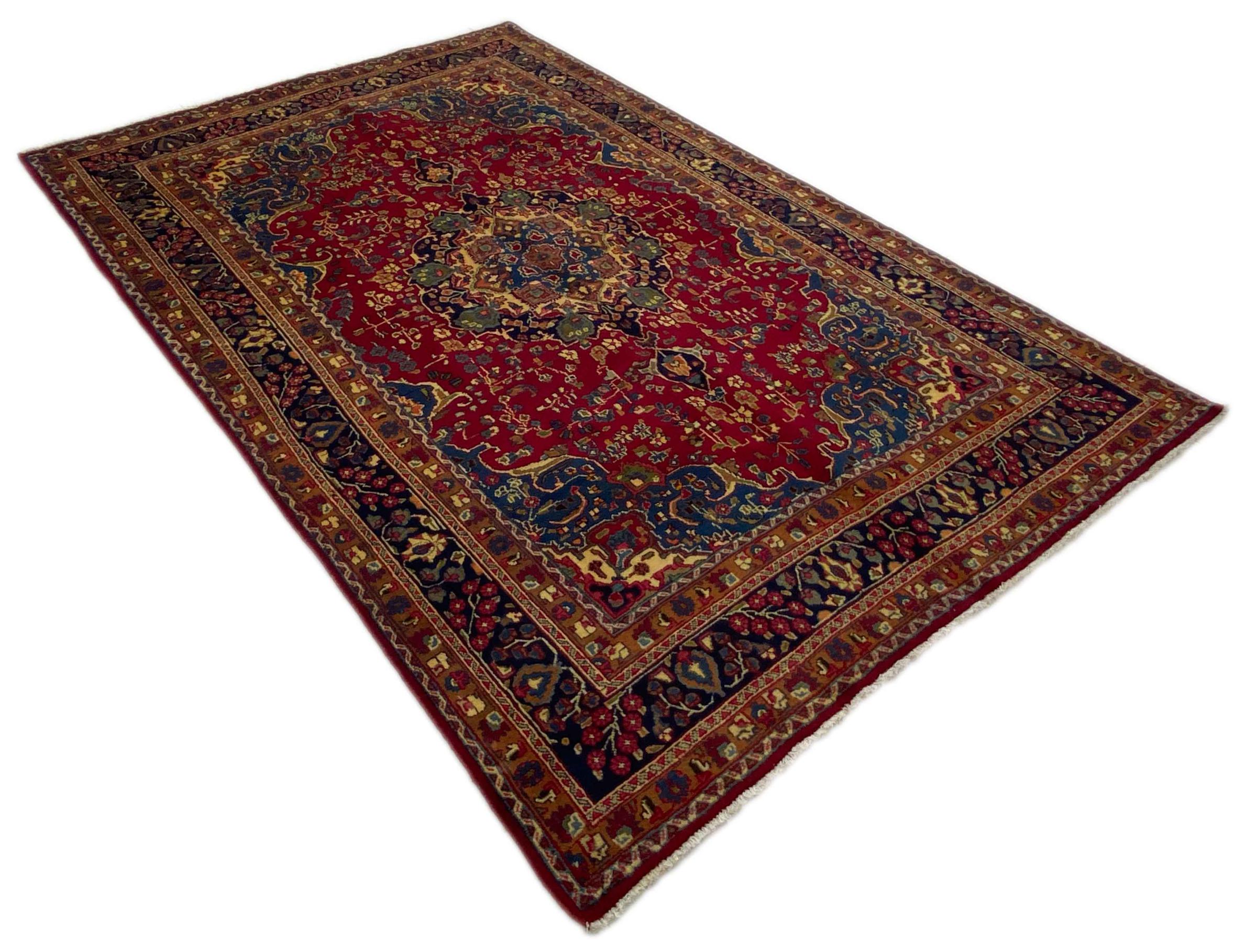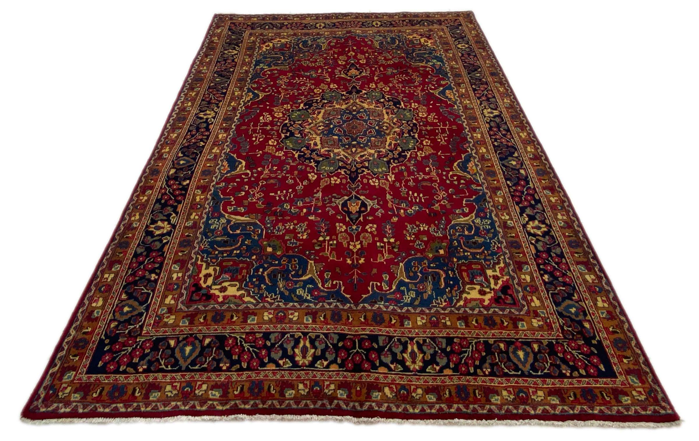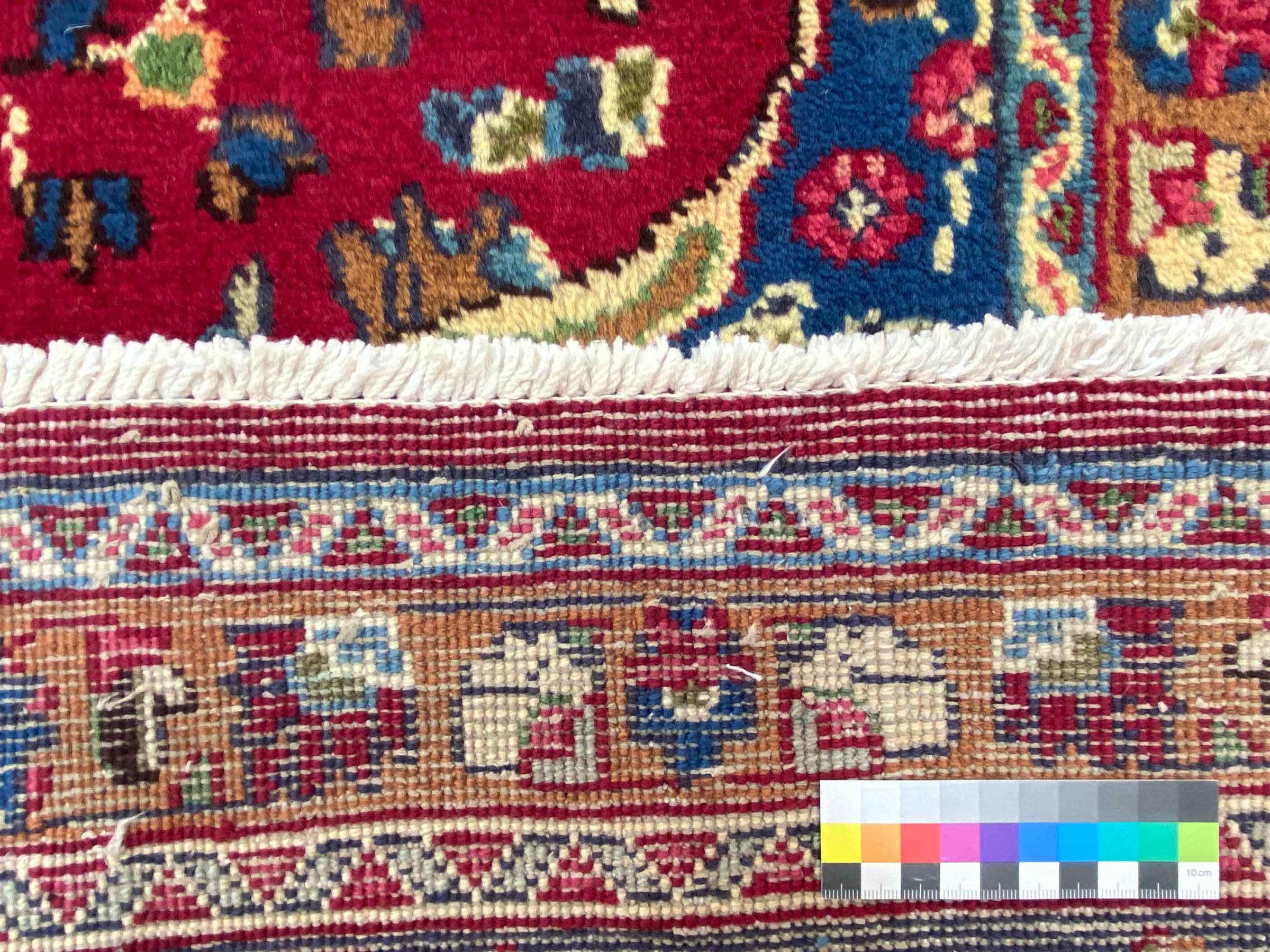 Dette tæppe fra Mashhad, en af de største byer i Iran, er håndknyttet af ren naturuld. Millioner af mennesker valfarter hvert år til denne hellige persiske by. Mashhad-tæpper er kendt for deres usædvanlige størrelser og uld af ekstremt høj kvalitet.