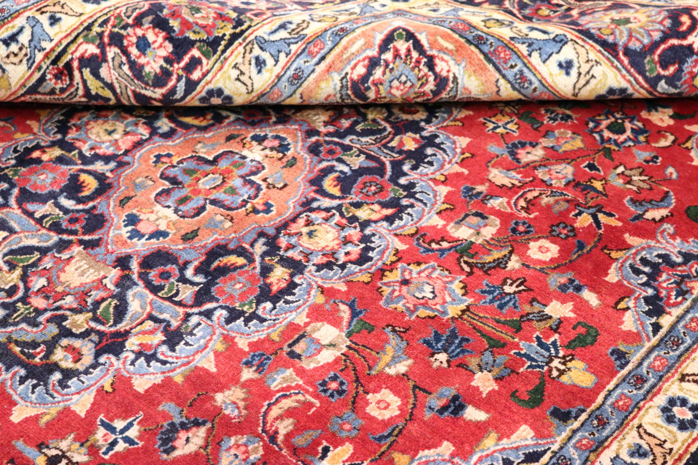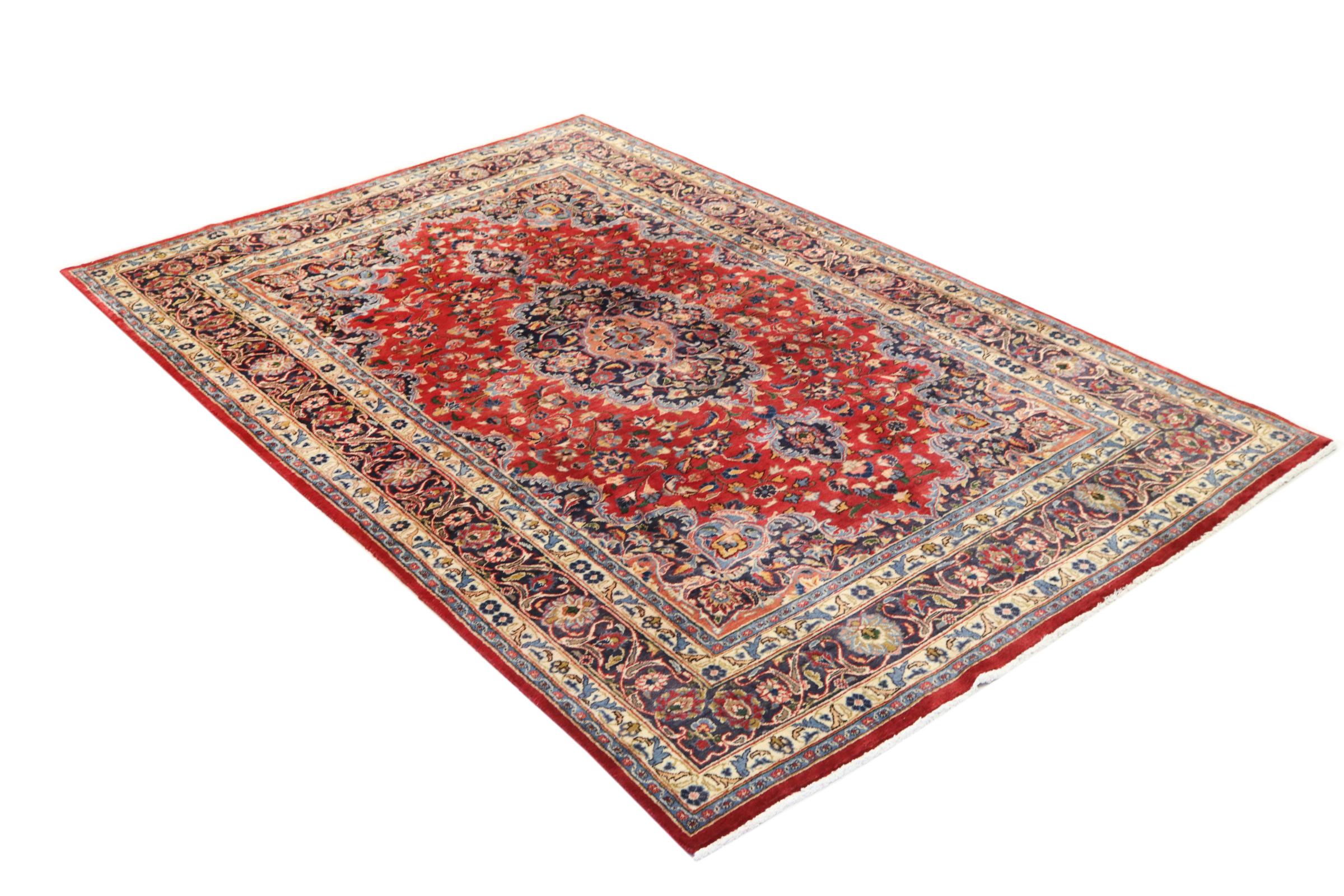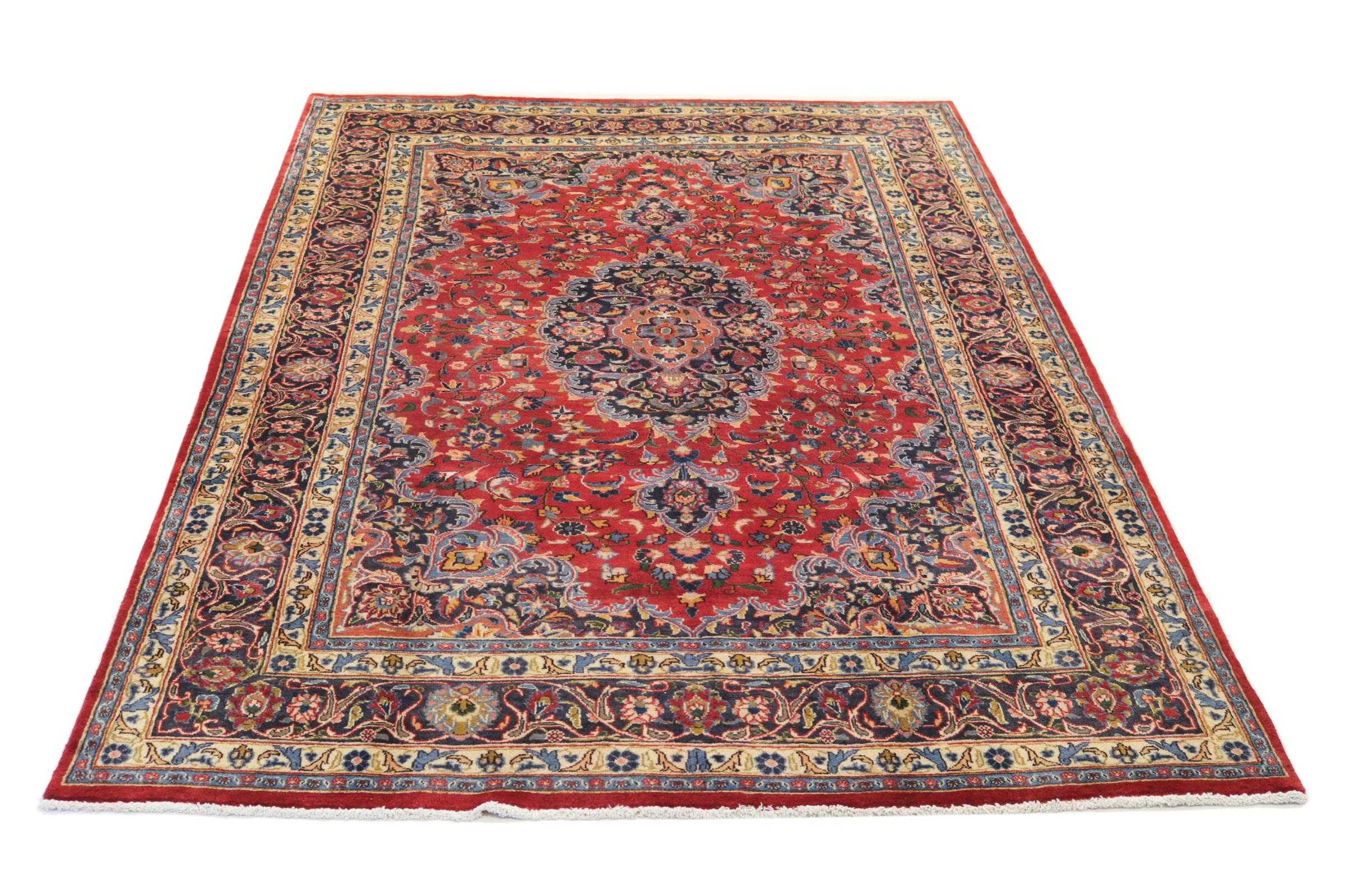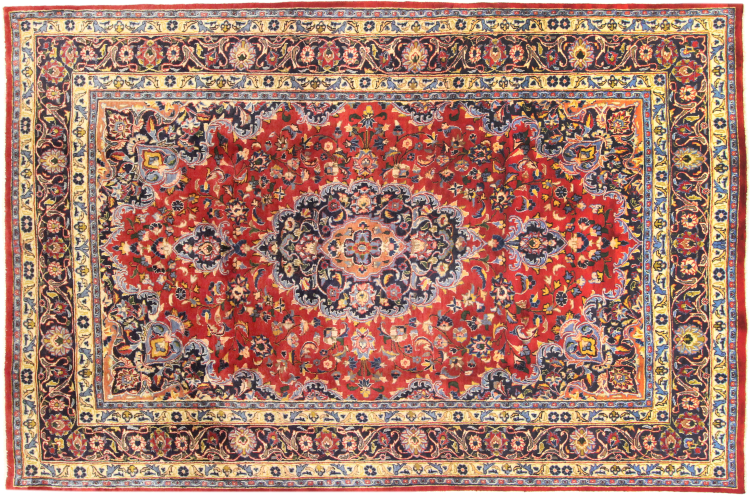 Dette tæppe fra Mashhad, en af de største byer i Iran, er håndknyttet af ren naturuld. Millioner af mennesker valfarter hvert år til denne hellige persiske by. Mashhad-tæpper er kendt for deres usædvanlige størrelser og uld af ekstremt høj kvalitet.