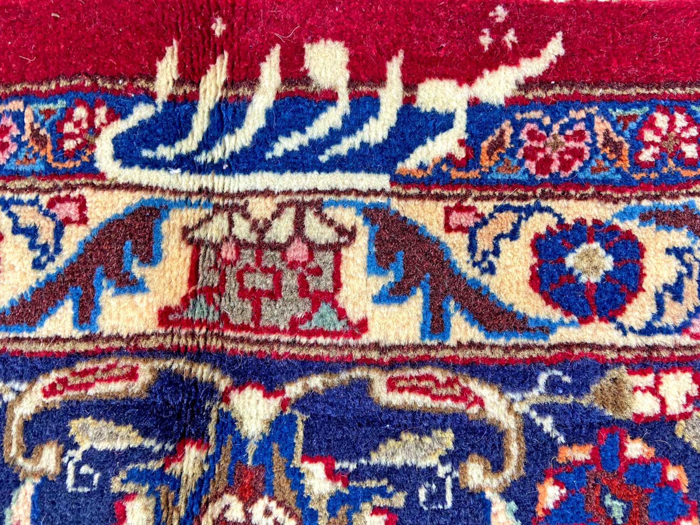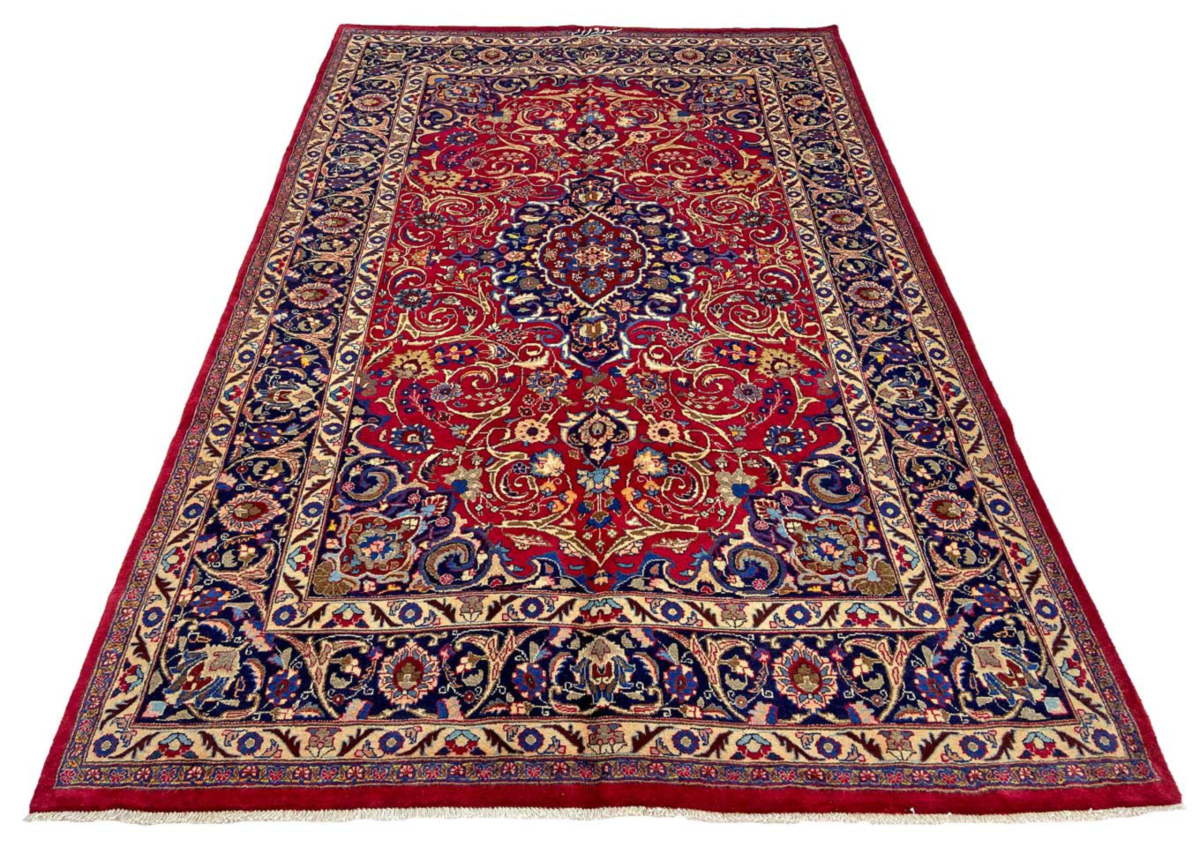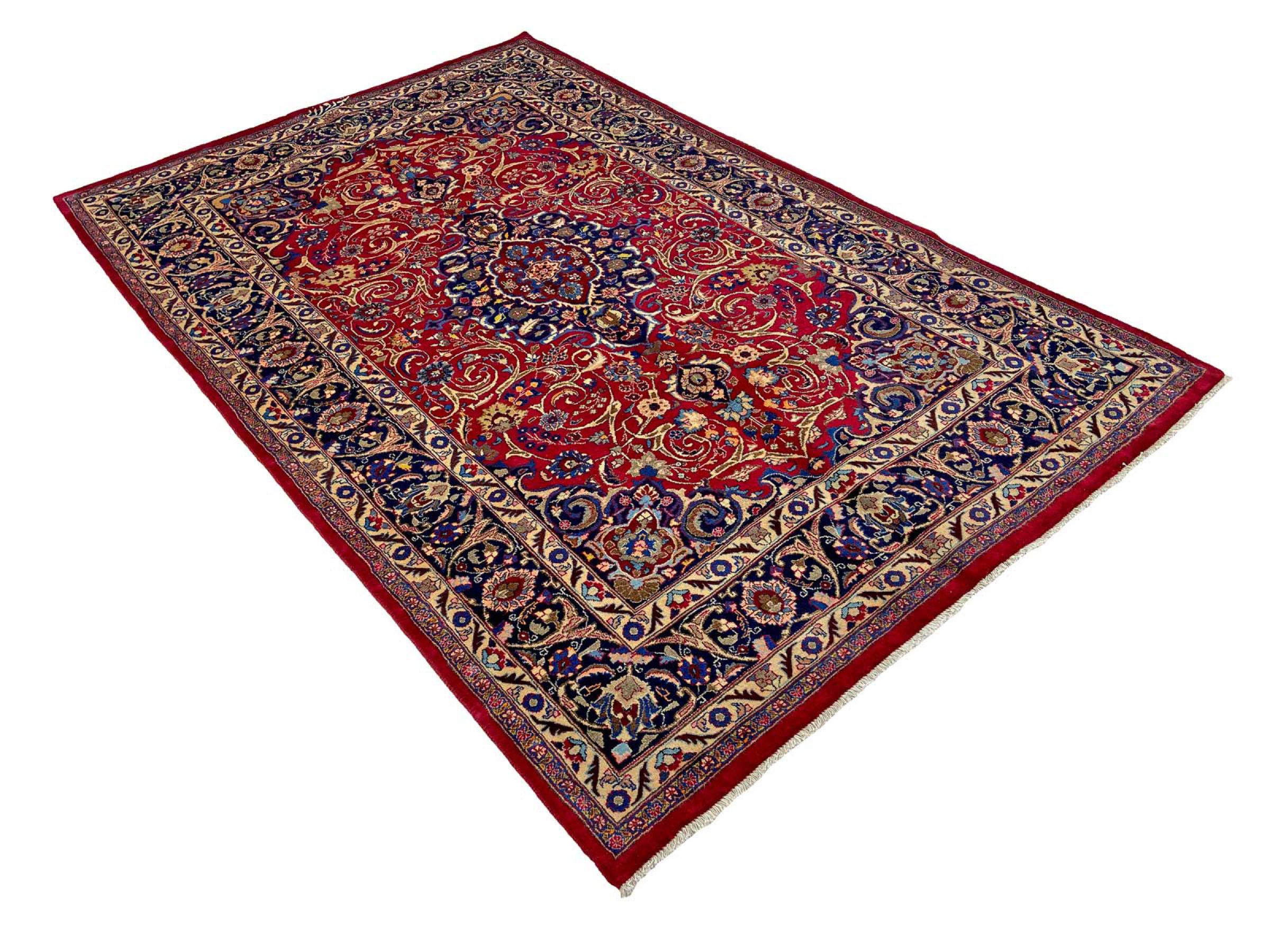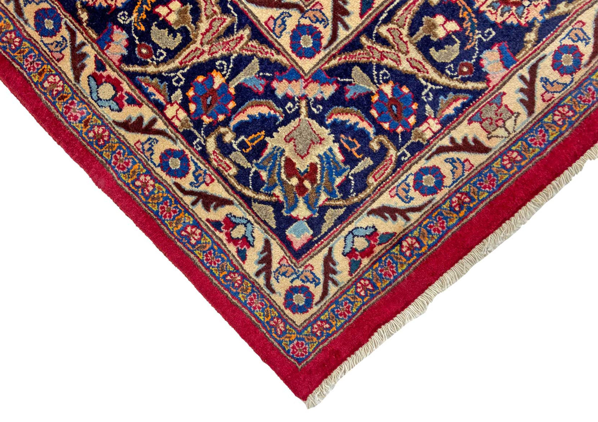 Dette tæppe fra Mashhad, en af de største byer i Iran, er håndknyttet af ren naturuld. Millioner af mennesker valfarter hvert år til denne hellige persiske by. Mashhad-tæpper er kendt for deres usædvanlige størrelser og uld af ekstremt høj kvalitet.