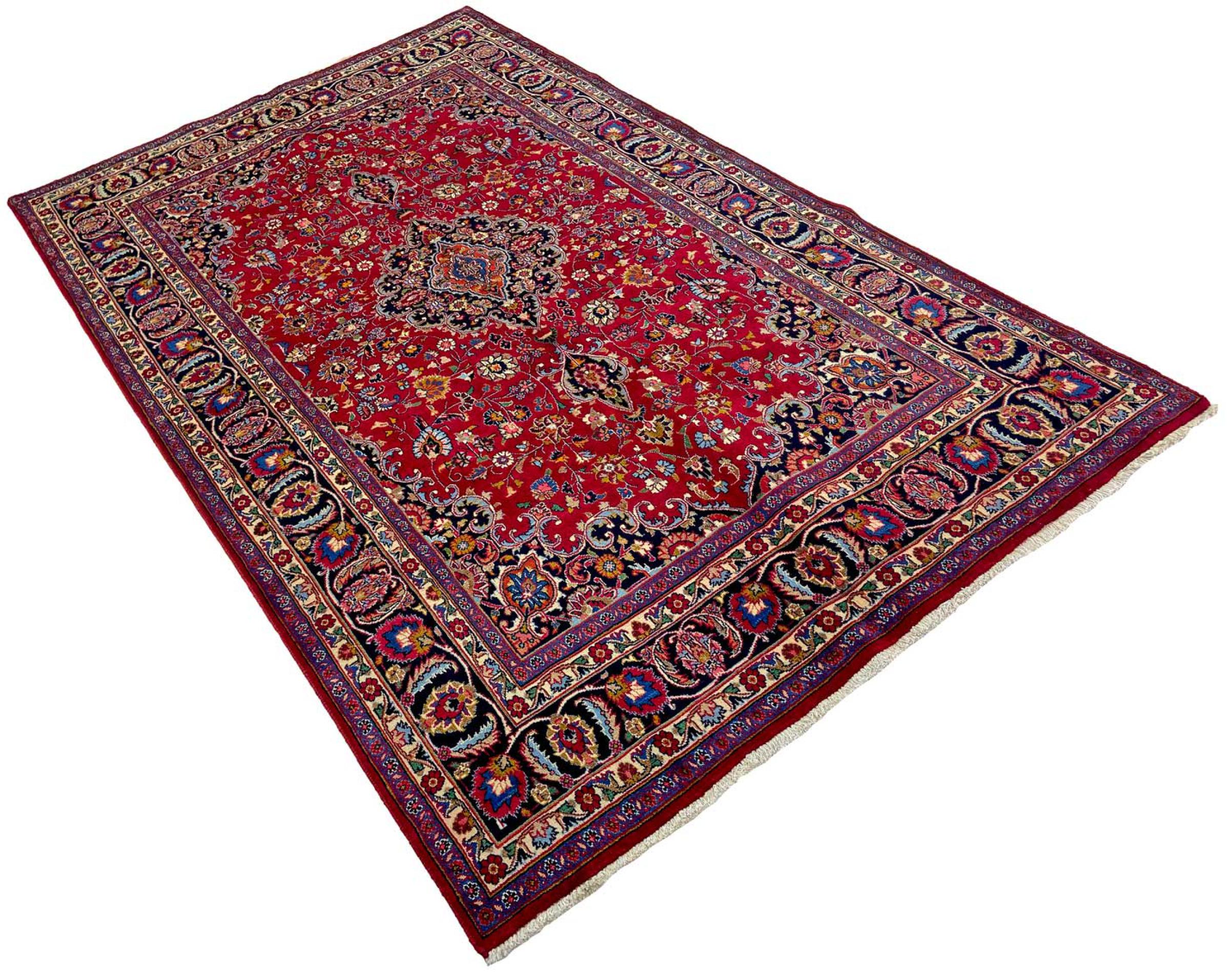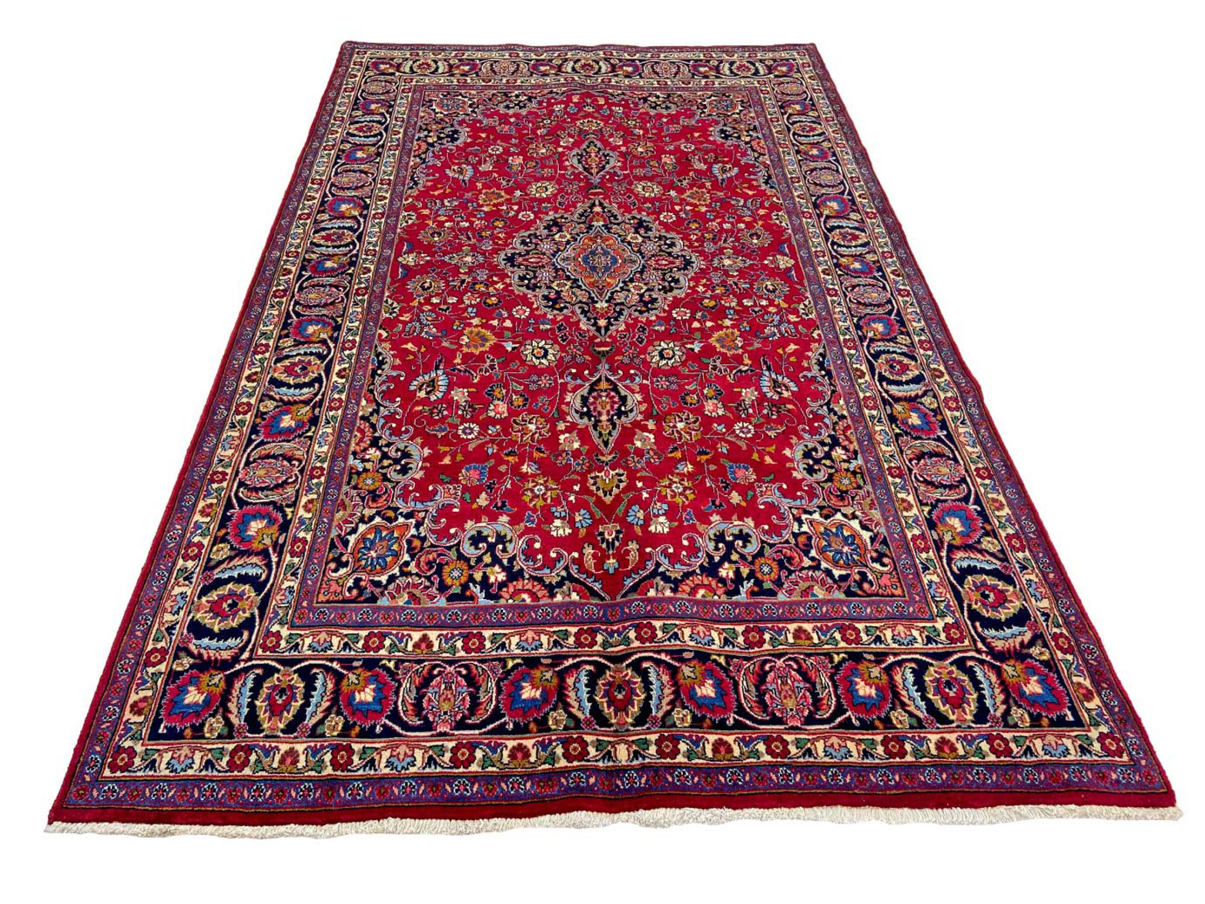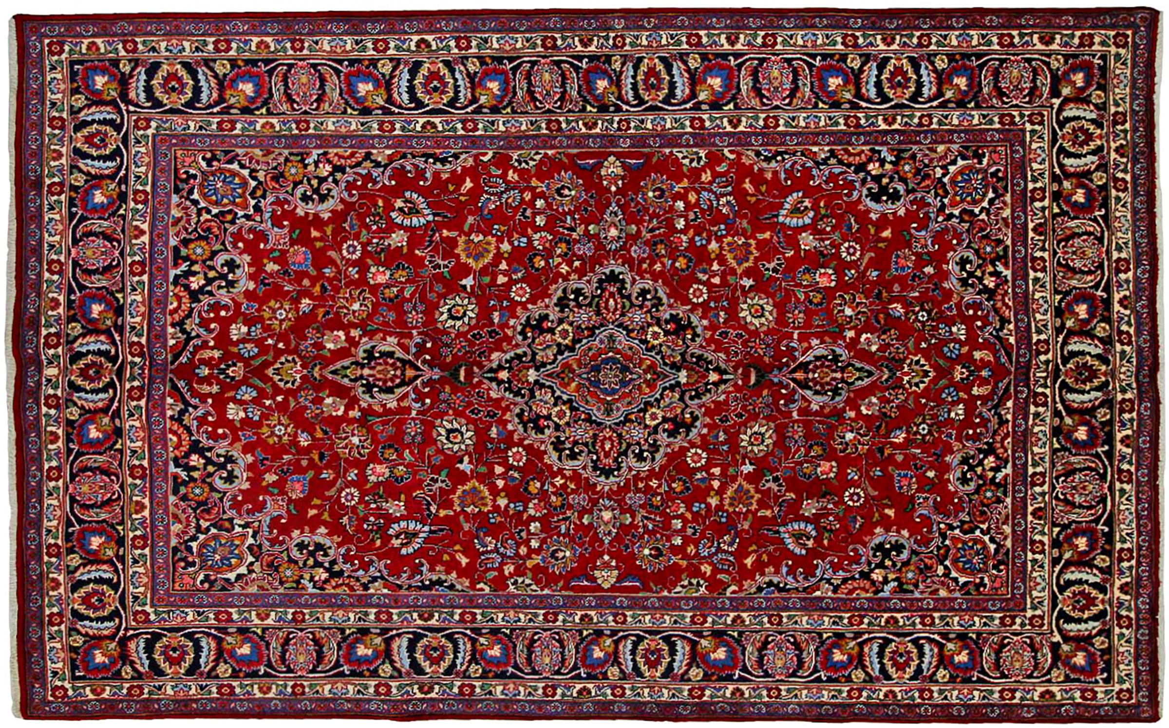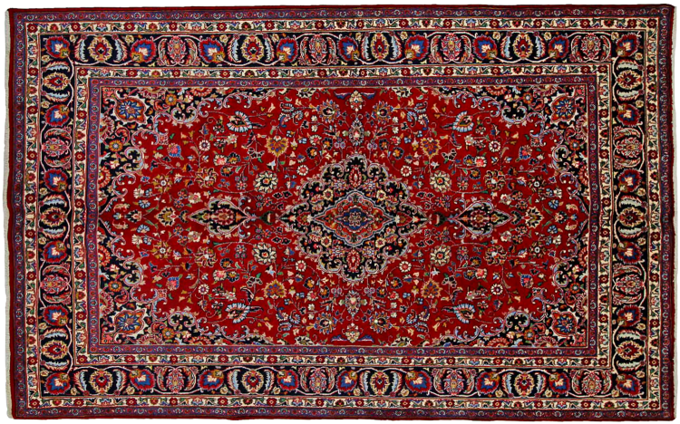 Dette tæppe fra Mashhad, en af de største byer i Iran, er håndknyttet af ren naturuld. Millioner af mennesker valfarter hvert år til denne hellige persiske by. Mashhad-tæpper er kendt for deres usædvanlige størrelser og uld af ekstremt høj kvalitet.