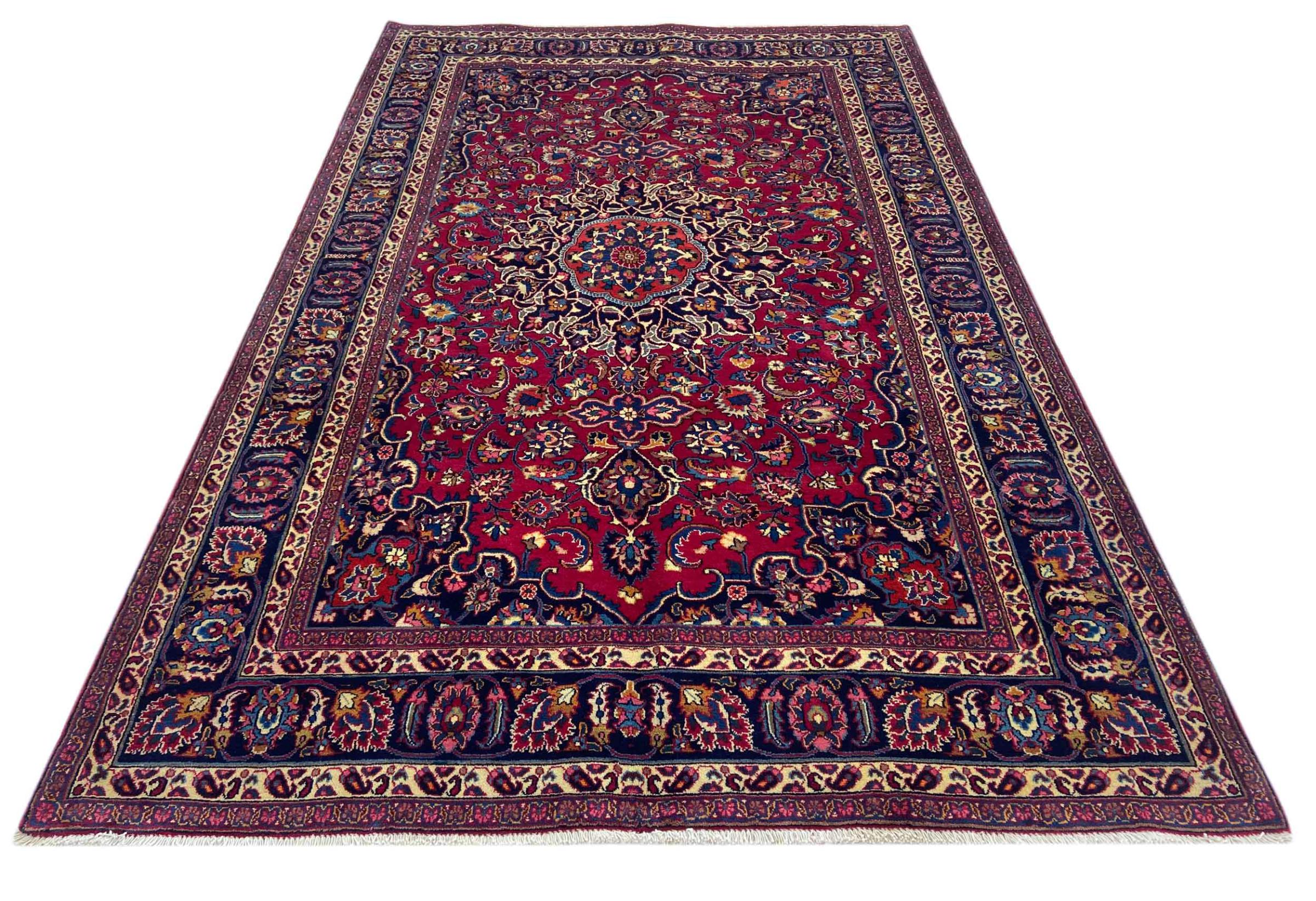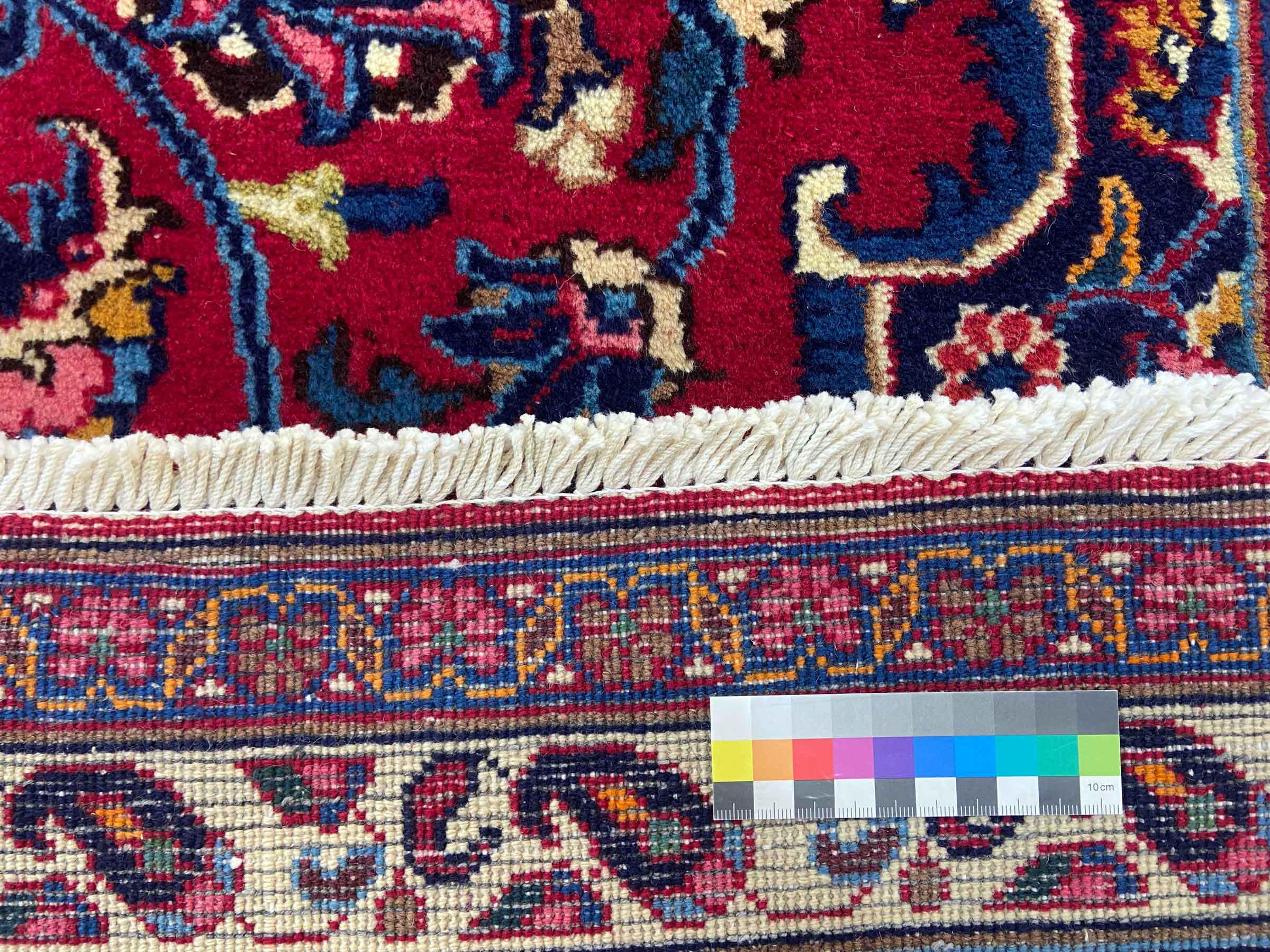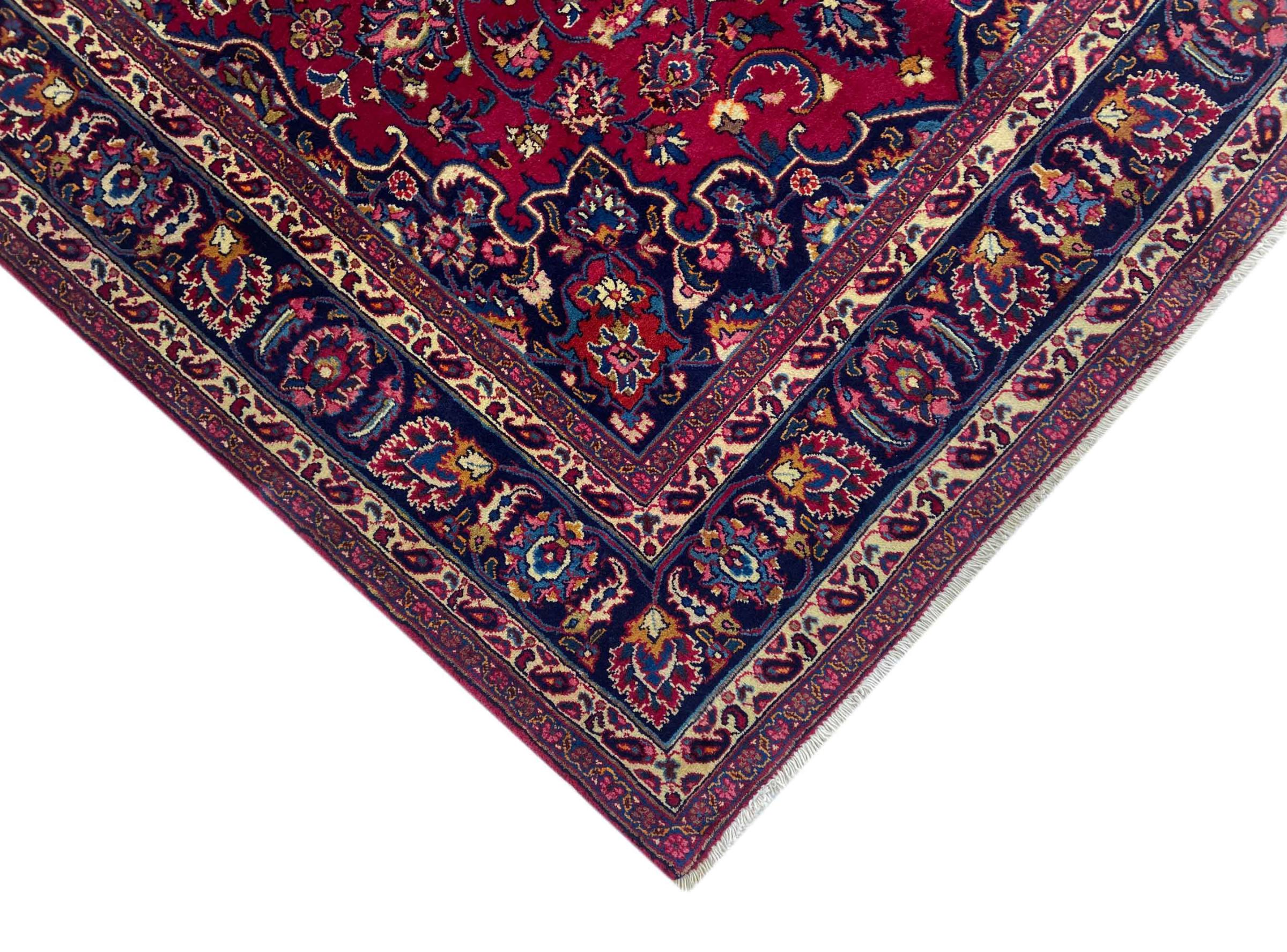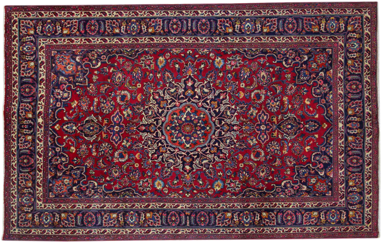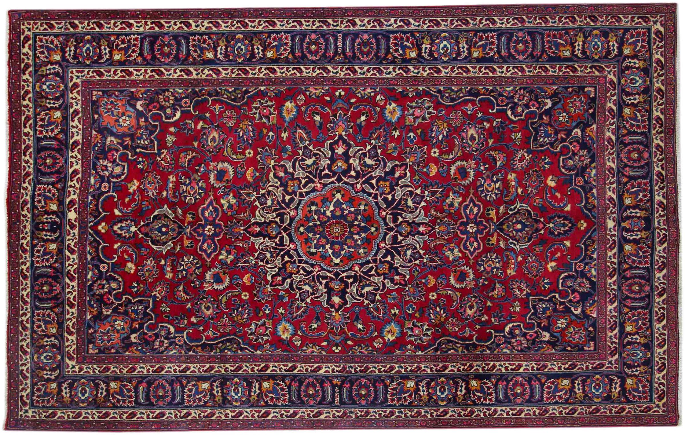 Dette tæppe fra Mashhad, en af de største byer i Iran, er håndknyttet af ren naturuld. Millioner af mennesker valfarter hvert år til denne hellige persiske by. Mashhad-tæpper er kendt for deres usædvanlige størrelser og uld af ekstremt høj kvalitet.