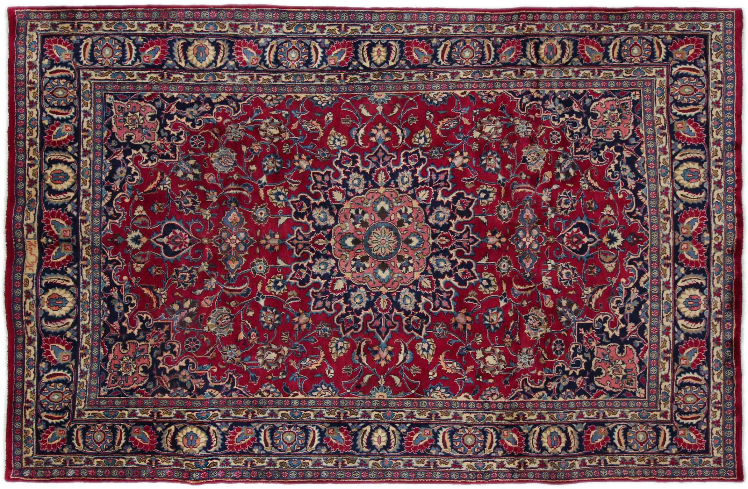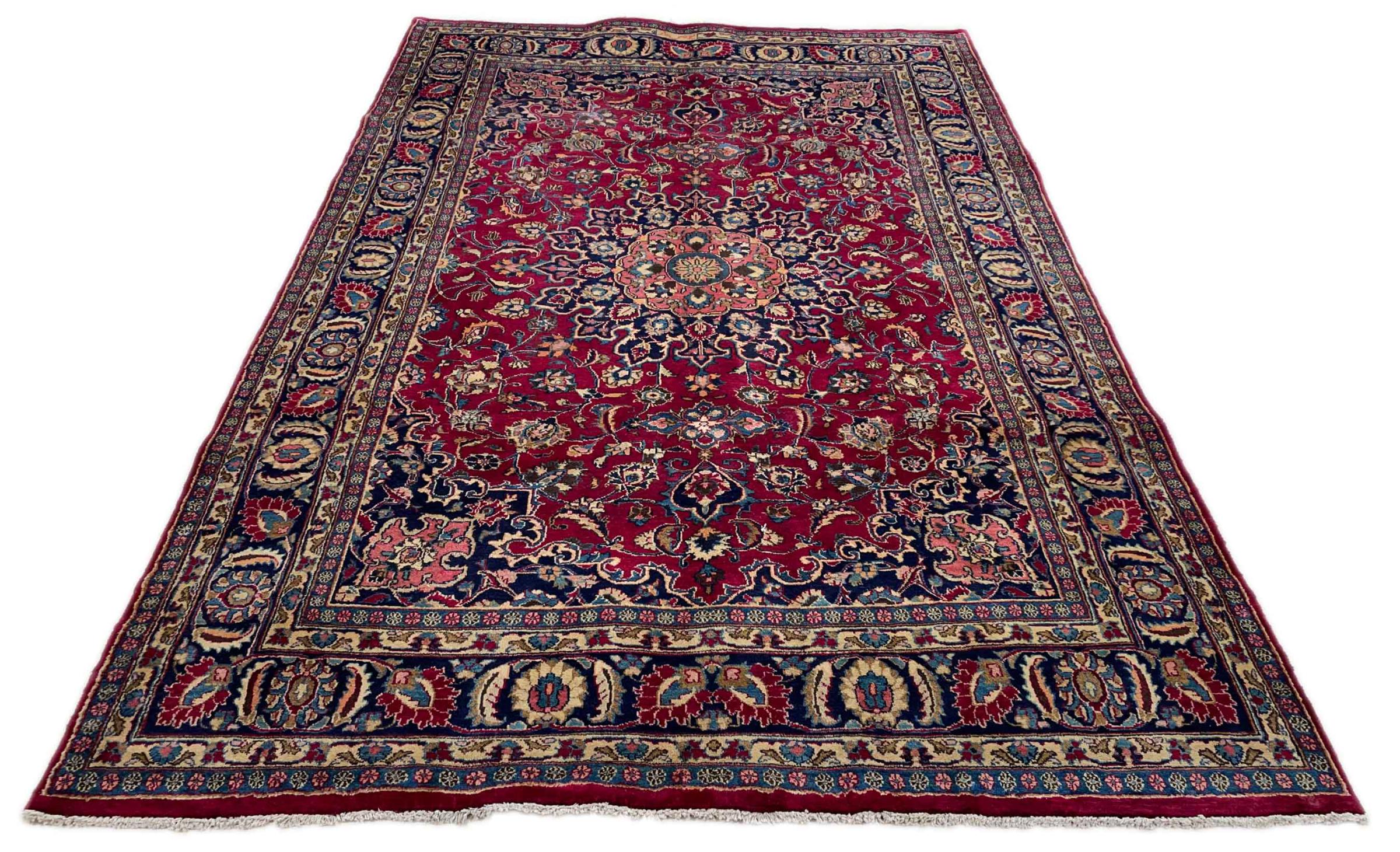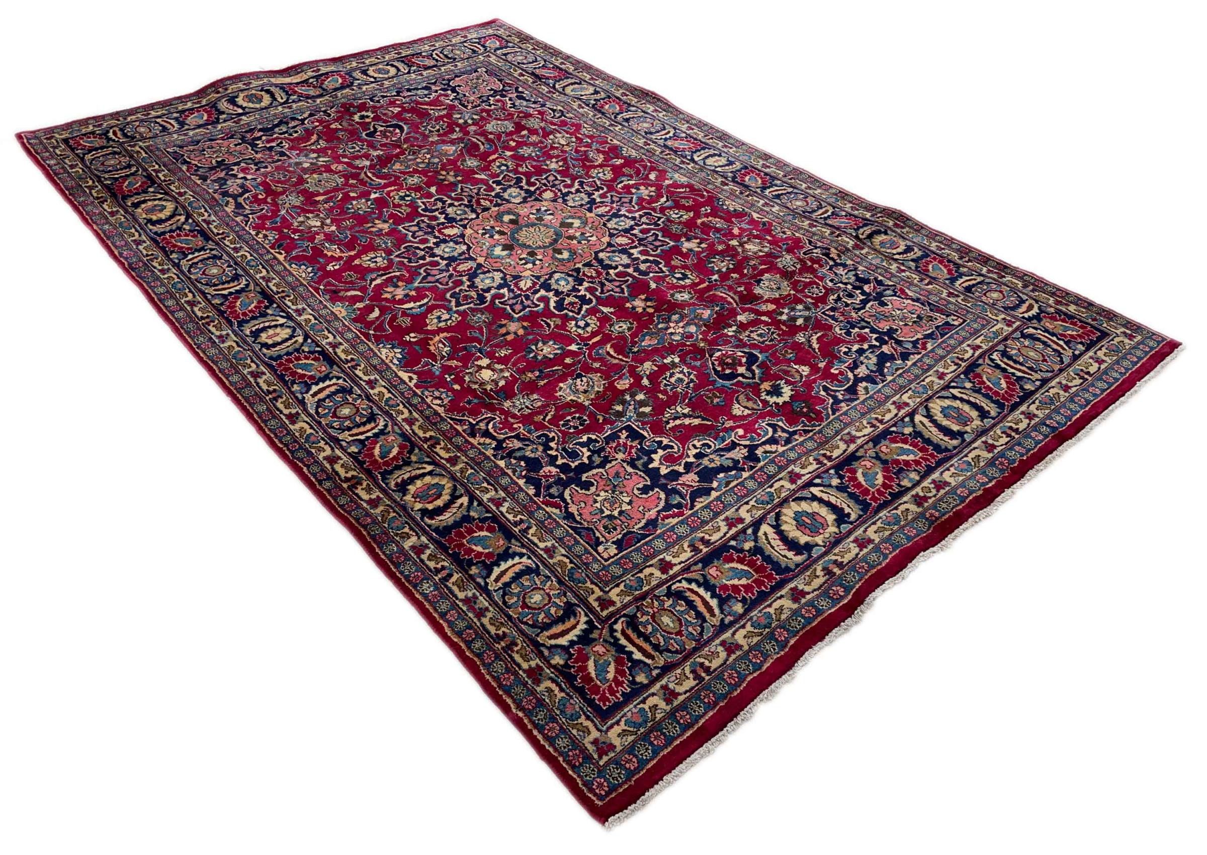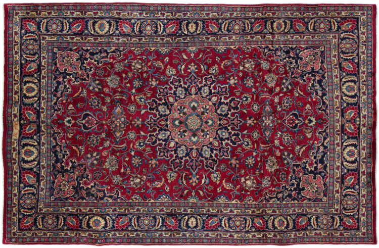 Dette tæppe fra Mashhad, en af de største byer i Iran, er håndknyttet af ren naturuld. Millioner af mennesker valfarter hvert år til denne hellige persiske by. Mashhad-tæpper er kendt for deres usædvanlige størrelser og uld af ekstremt høj kvalitet.