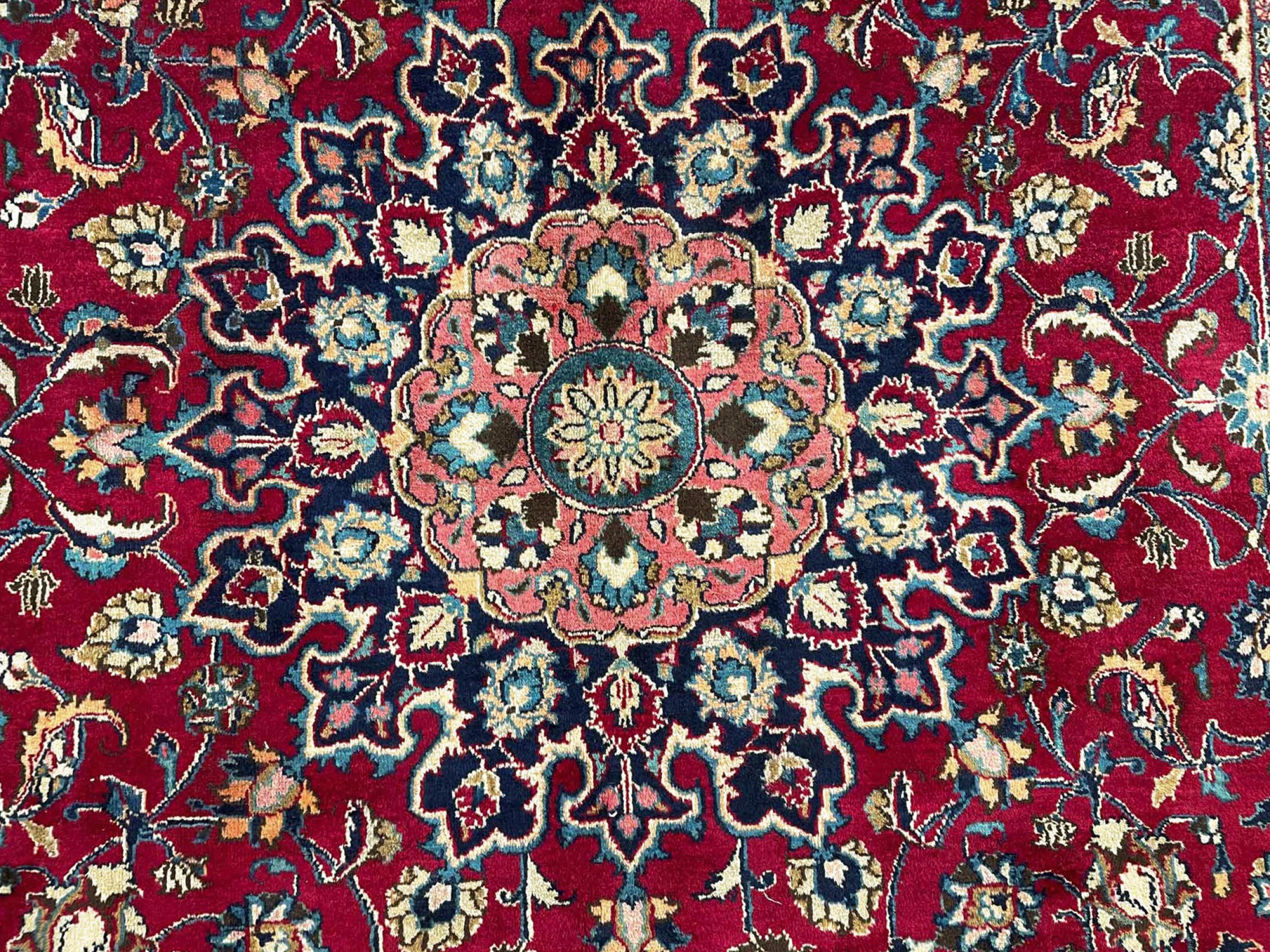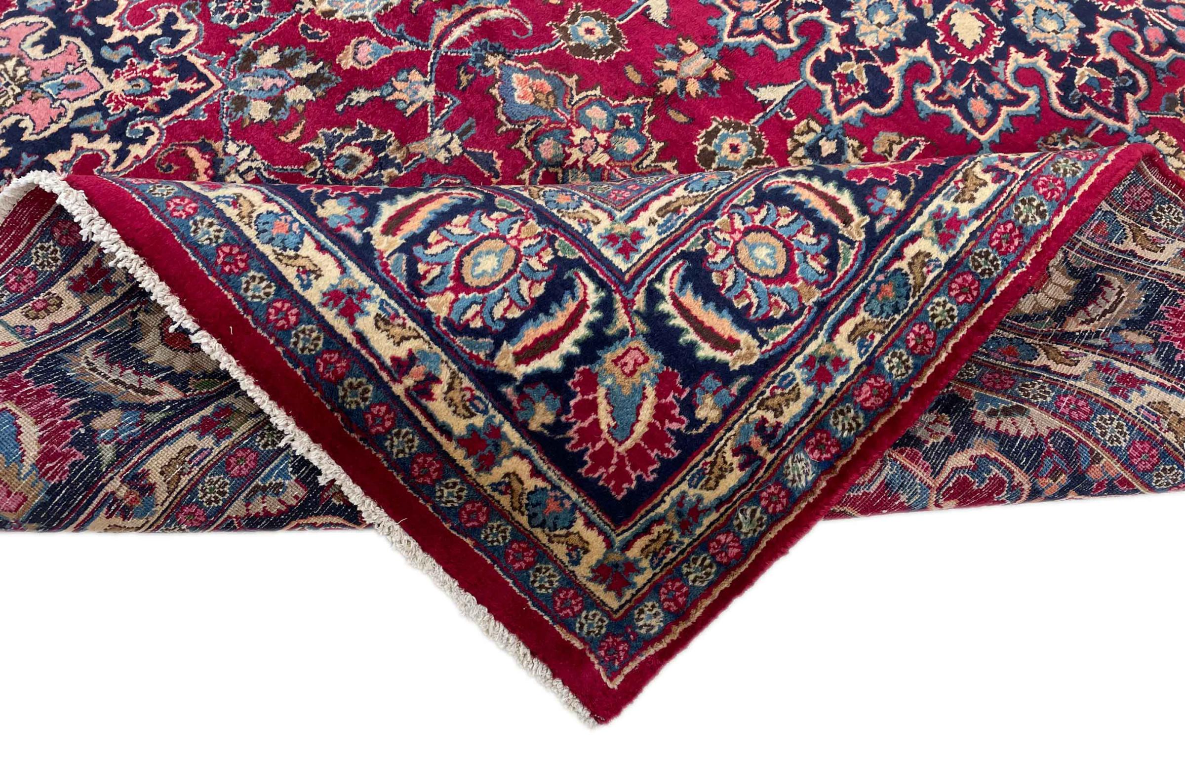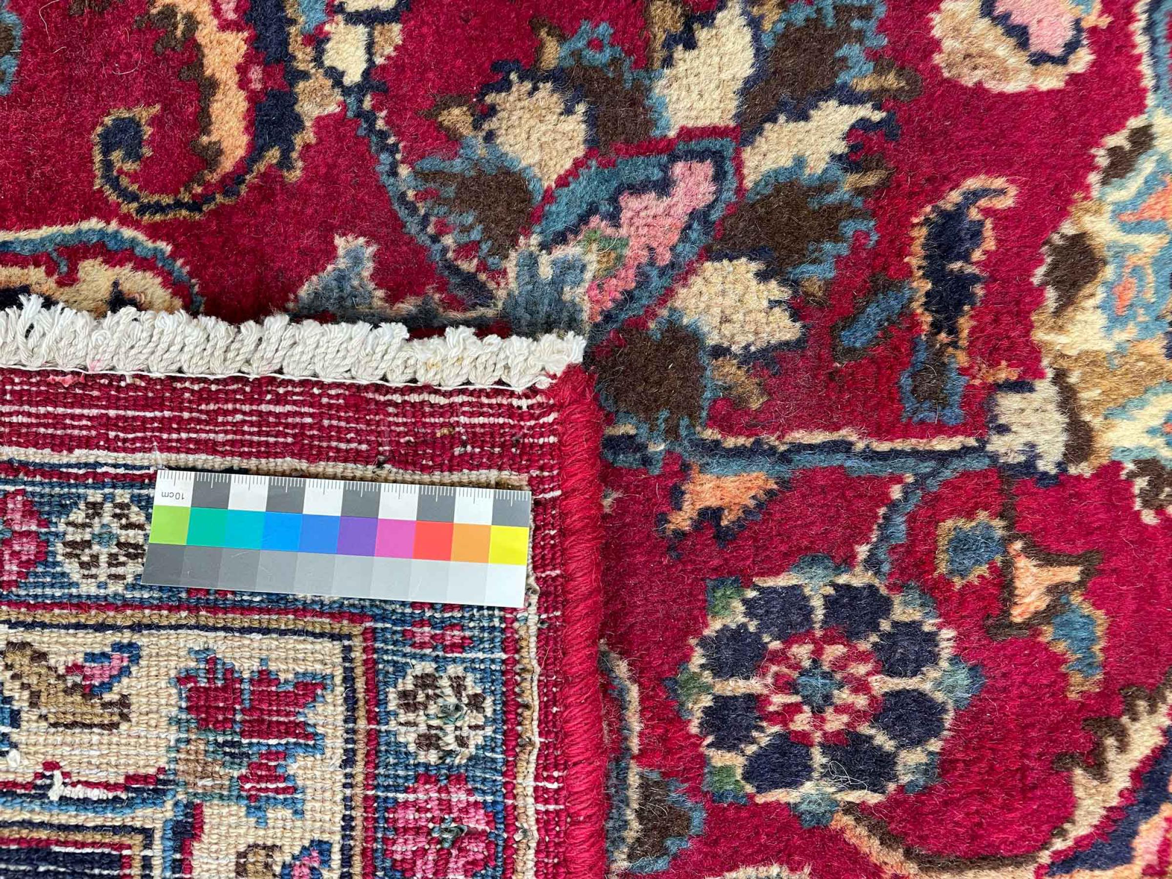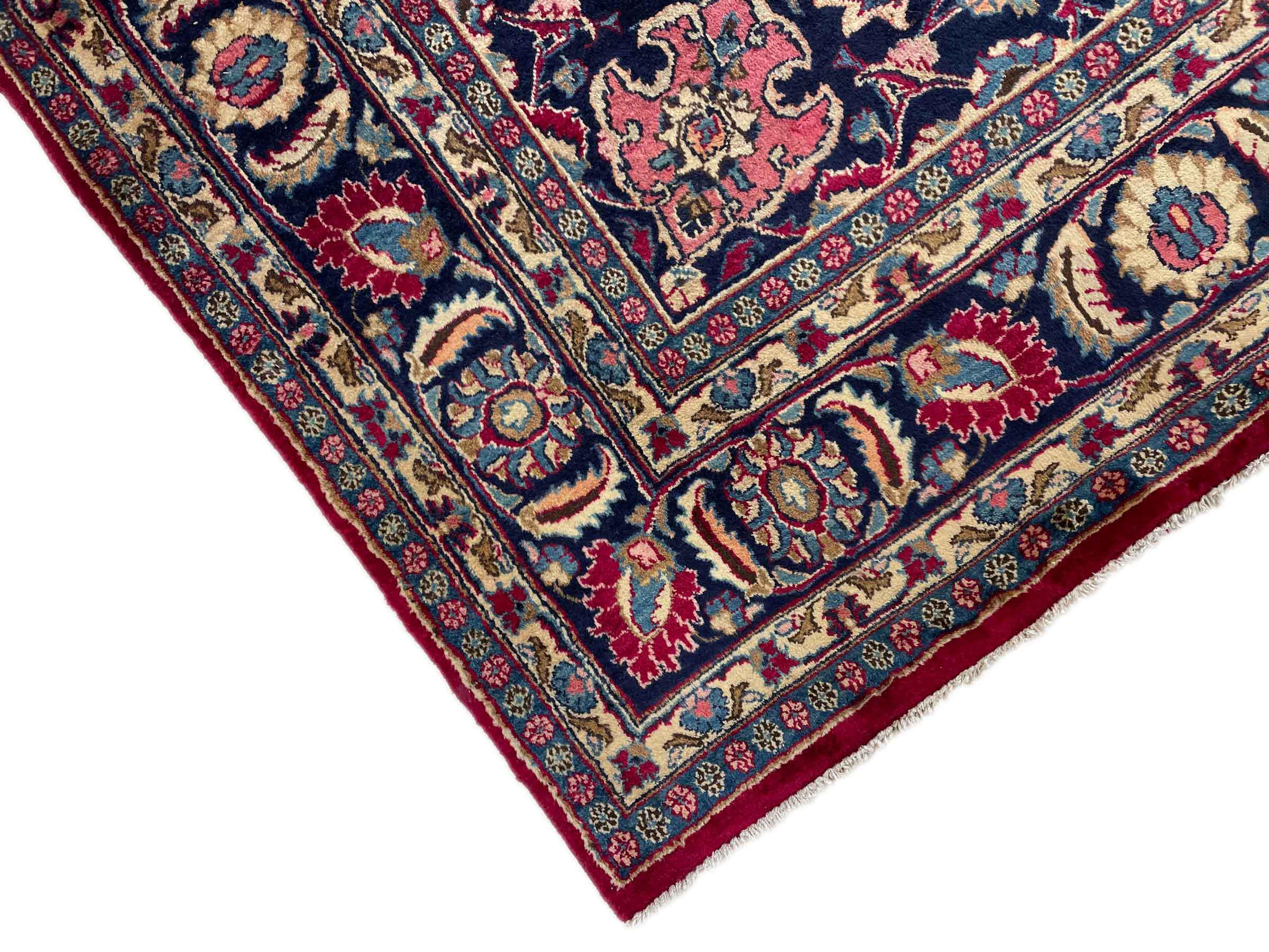 Dette tæppe fra Mashhad, en af de største byer i Iran, er håndknyttet af ren naturuld. Millioner af mennesker valfarter hvert år til denne hellige persiske by. Mashhad-tæpper er kendt for deres usædvanlige størrelser og uld af ekstremt høj kvalitet.