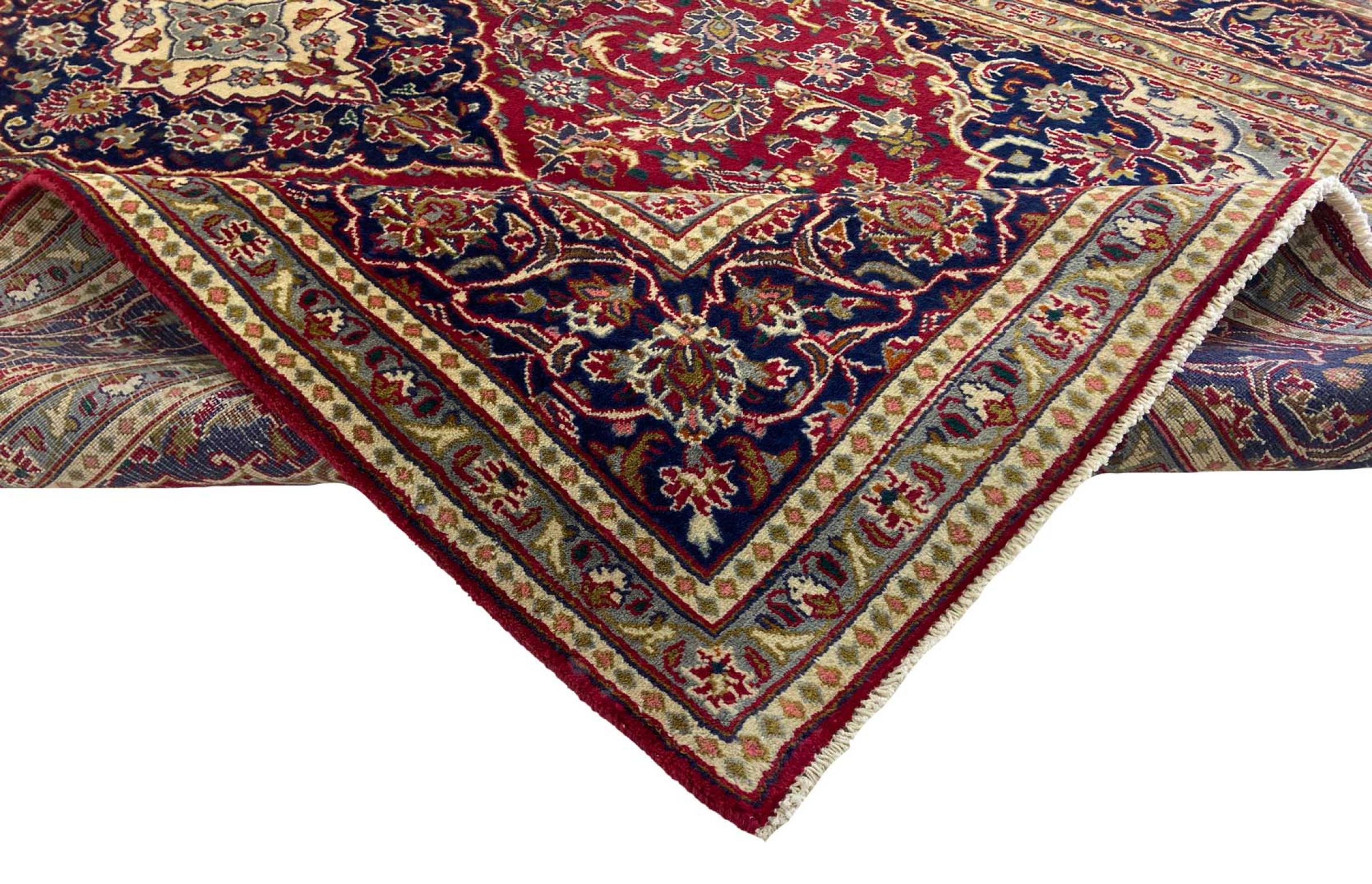 Dette tæppe fra Mashhad, en af de største byer i Iran, er håndknyttet af ren naturuld. Millioner af mennesker valfarter hvert år til denne hellige persiske by. Mashhad-tæpper er kendt for deres usædvanlige størrelser og uld af ekstremt høj kvalitet.