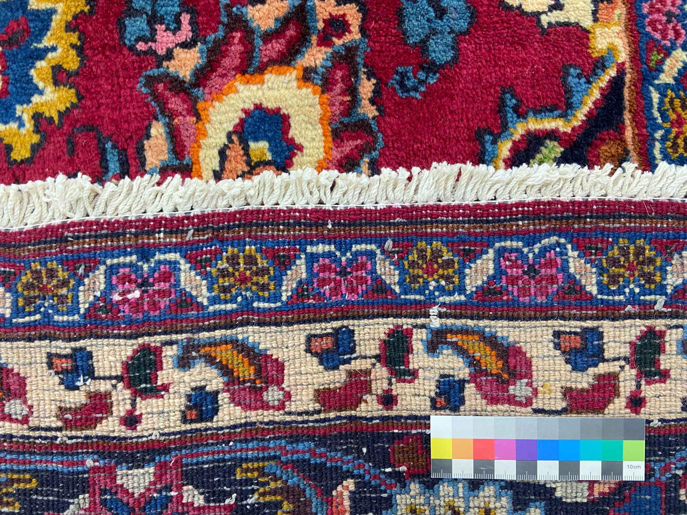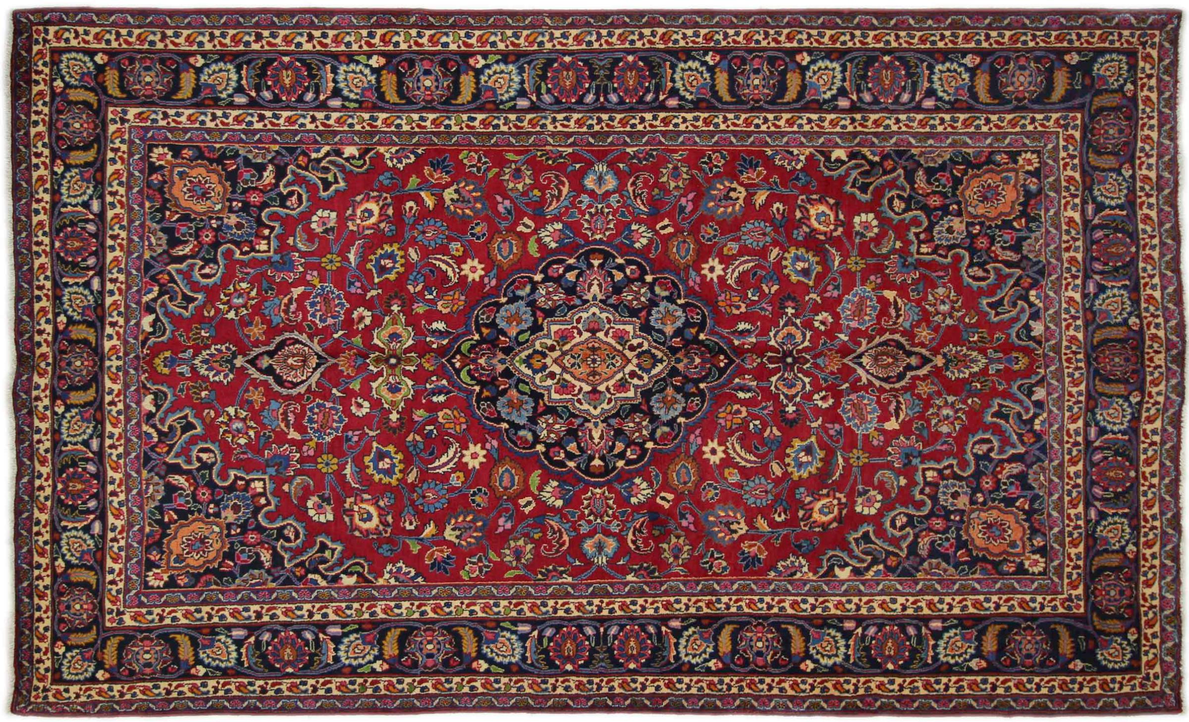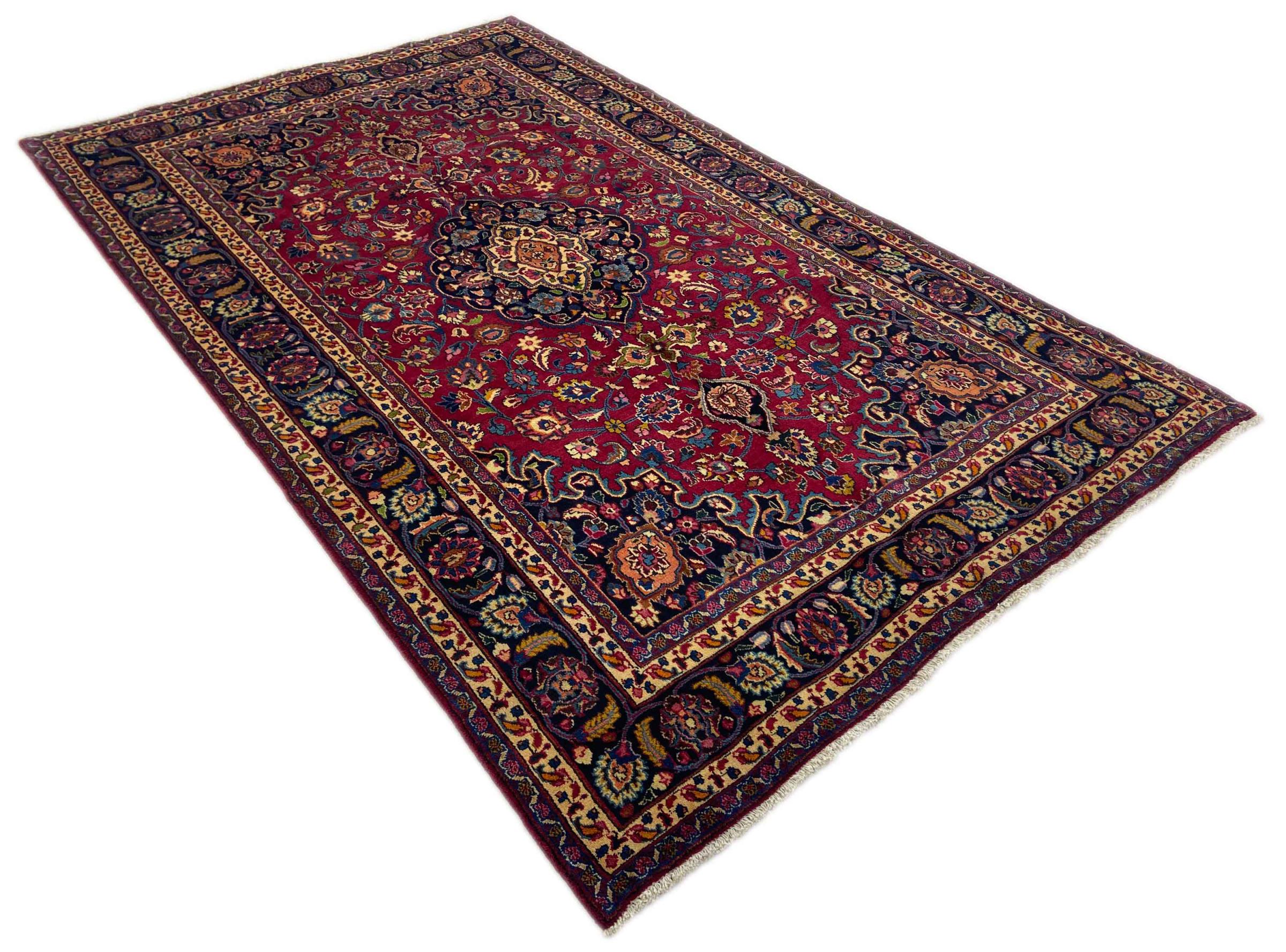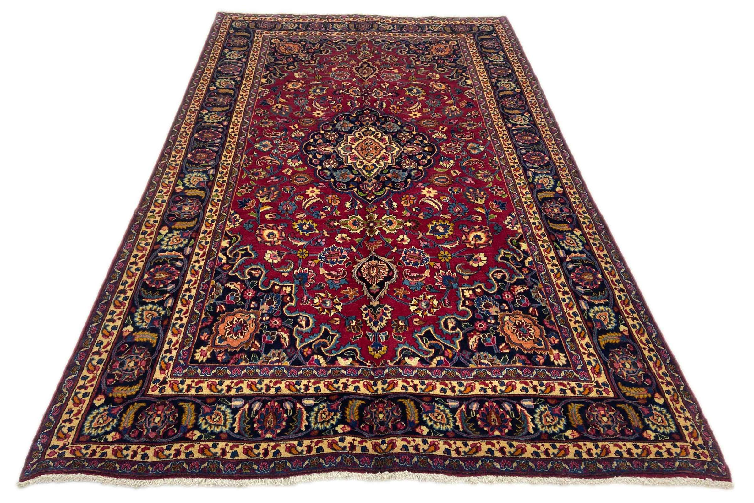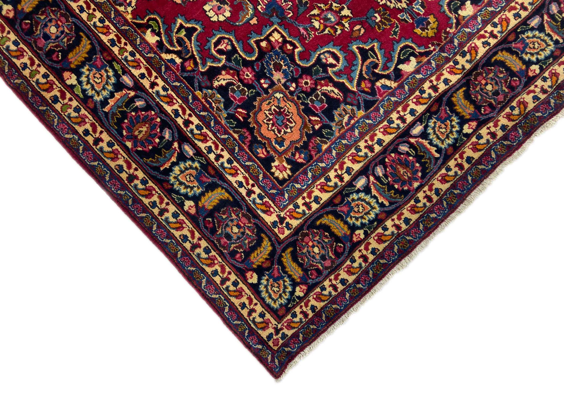 Dette tæppe fra Mashhad, en af de største byer i Iran, er håndknyttet af ren naturuld. Millioner af mennesker valfarter hvert år til denne hellige persiske by. Mashhad-tæpper er kendt for deres usædvanlige størrelser og uld af ekstremt høj kvalitet.