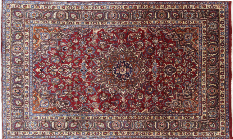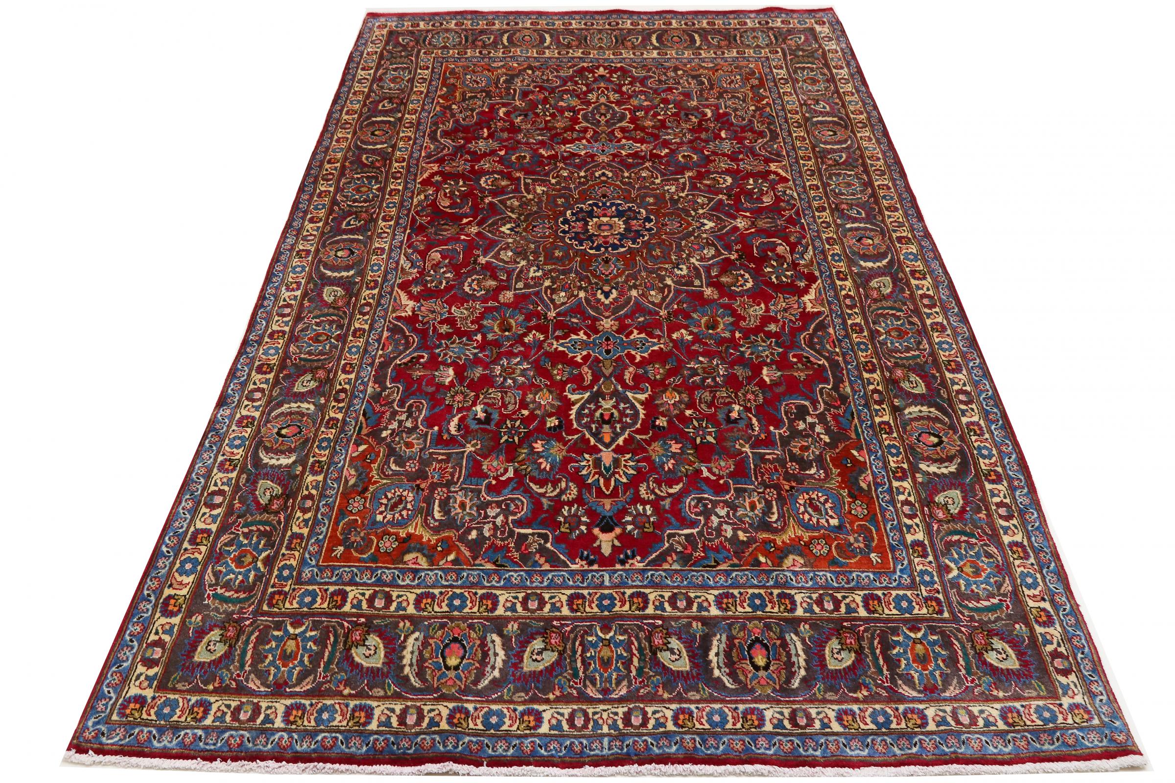 Dette tæppe fra Mashhad, en af de største byer i Iran, er håndknyttet af ren naturuld. Millioner af mennesker valfarter hvert år til denne hellige persiske by. Mashhad-tæpper er kendt for deres usædvanlige størrelser og uld af ekstremt høj kvalitet.