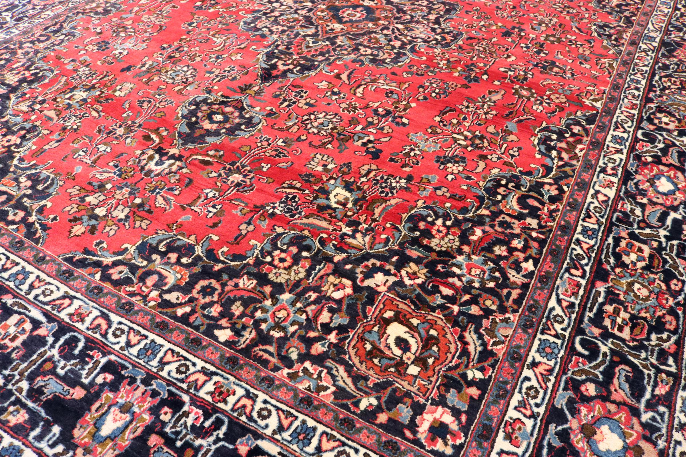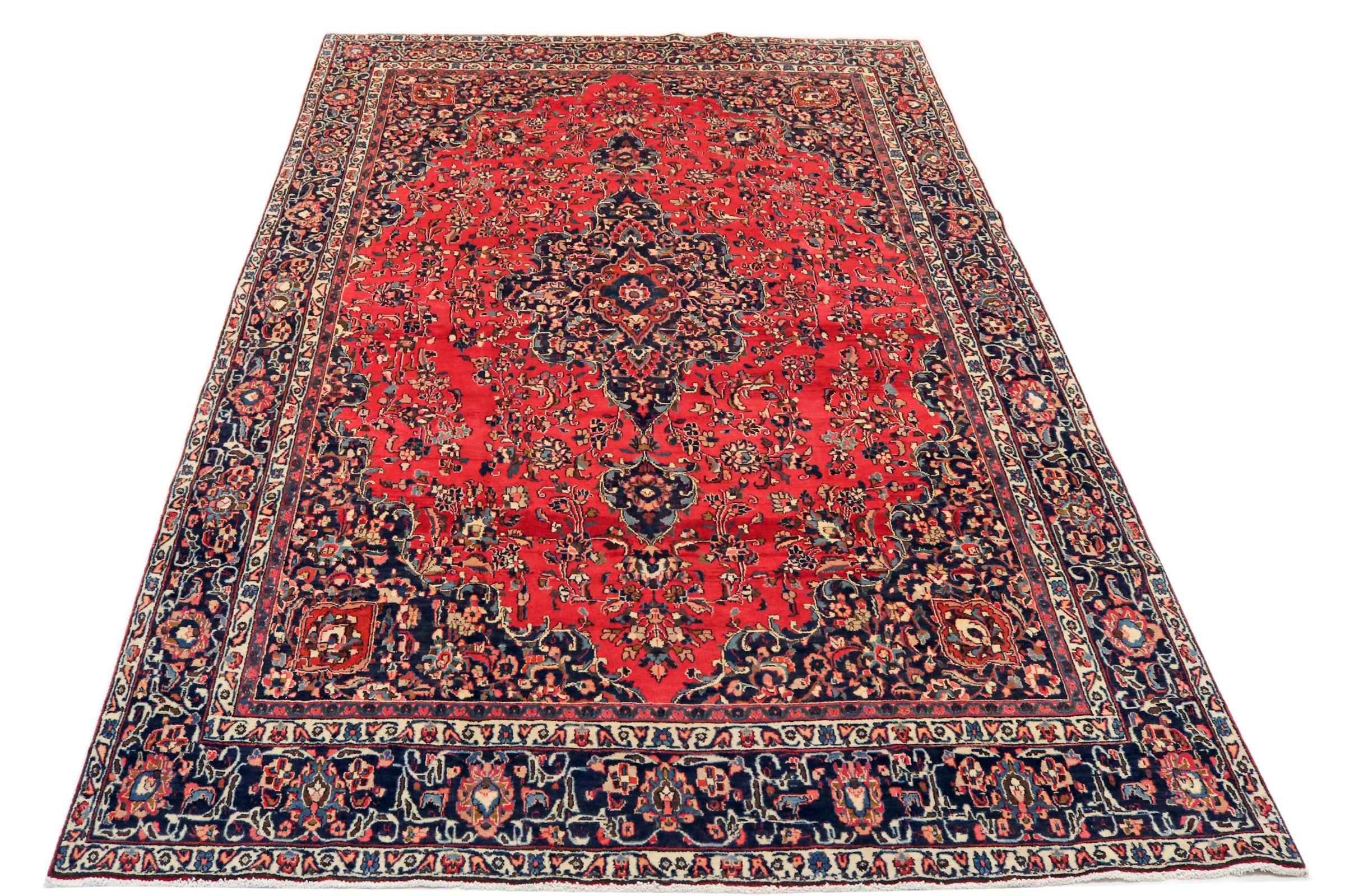 Dette tæppe fra Mashhad, en af de største byer i Iran, er håndknyttet af ren naturuld. Millioner af mennesker valfarter hvert år til denne hellige persiske by. Mashhad-tæpper er kendt for deres usædvanlige størrelser og uld af ekstremt høj kvalitet.