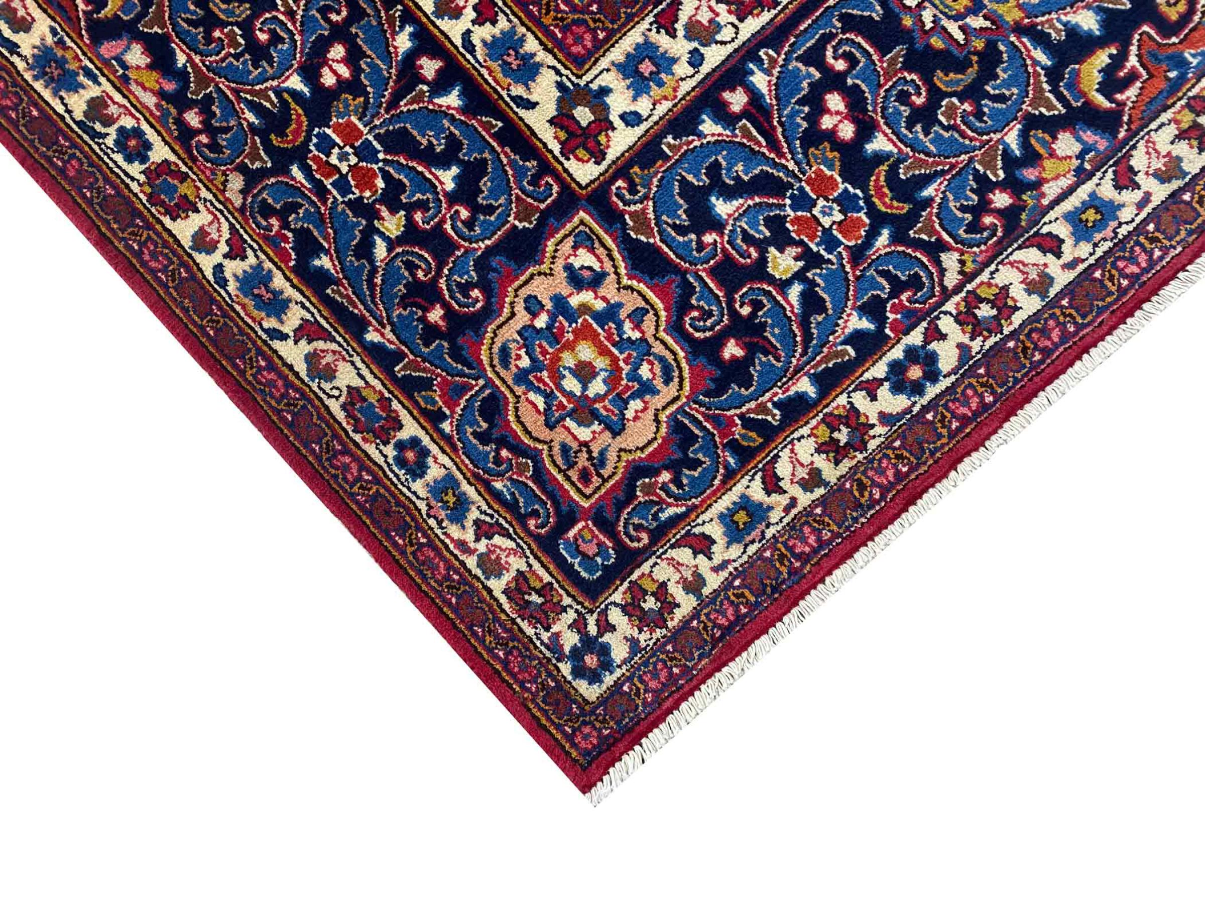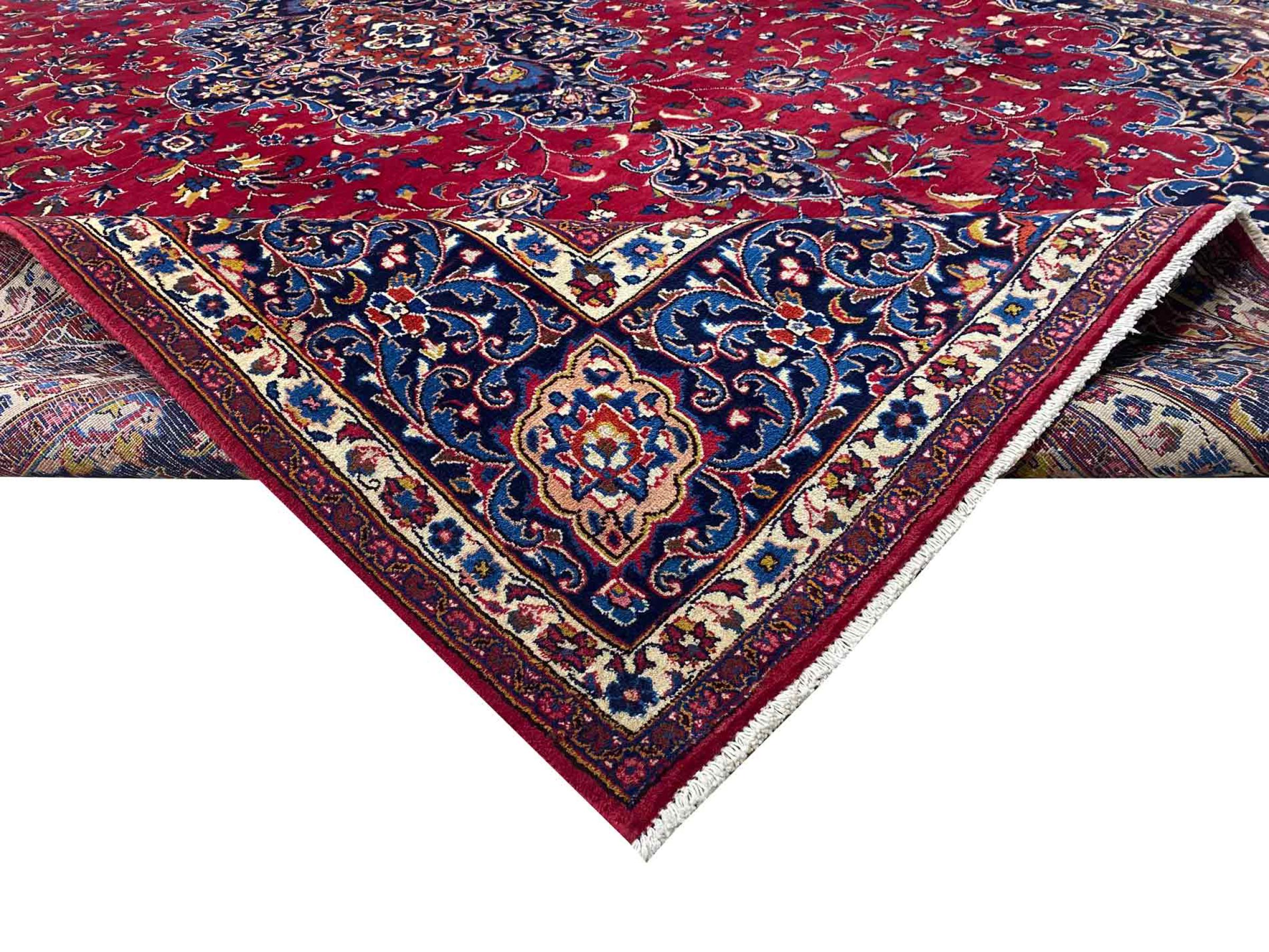 Dette tæppe fra Mashhad, en af de største byer i Iran, er håndknyttet af ren naturuld. Millioner af mennesker valfarter hvert år til denne hellige persiske by. Mashhad-tæpper er kendt for deres usædvanlige størrelser og uld af ekstremt høj kvalitet.
