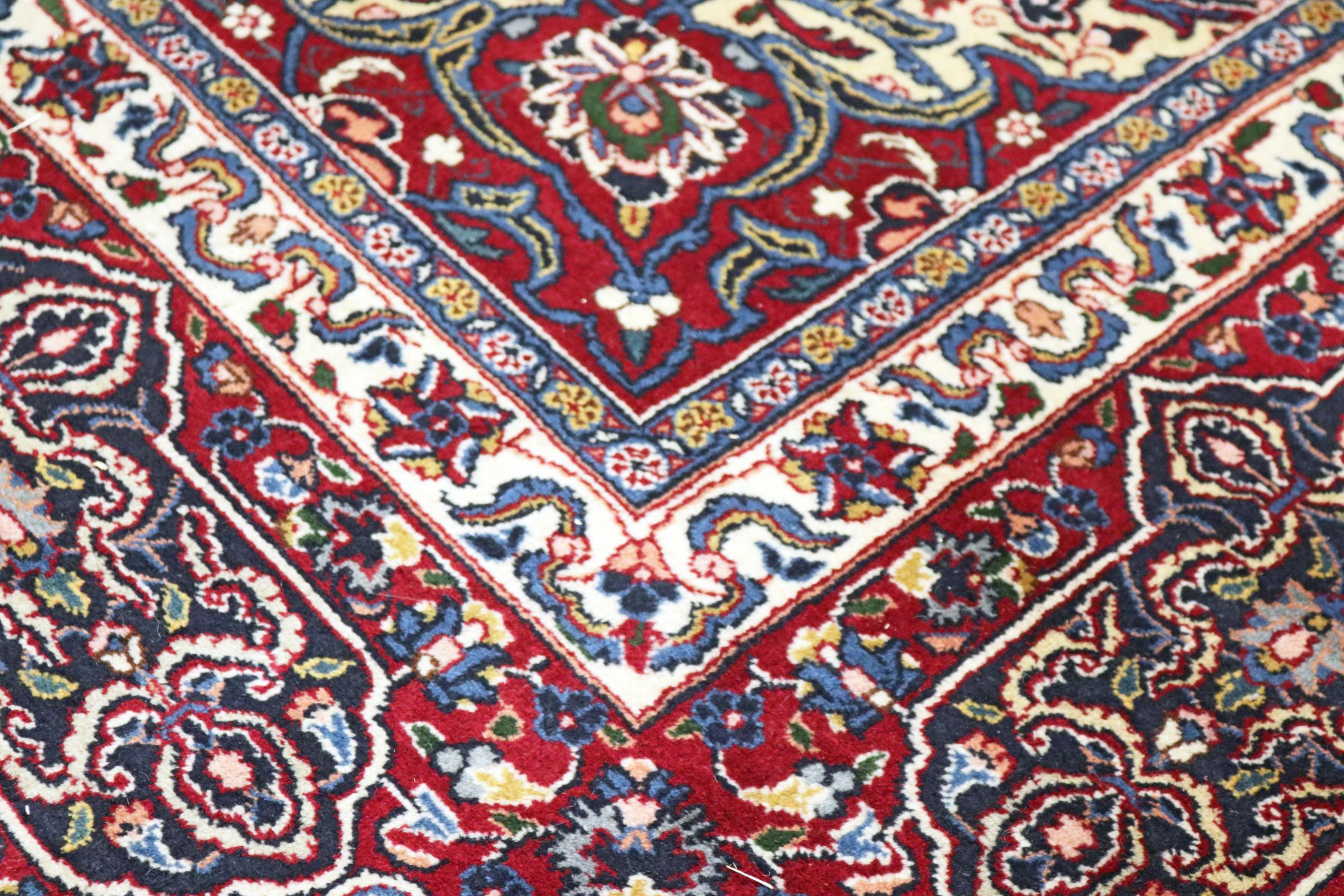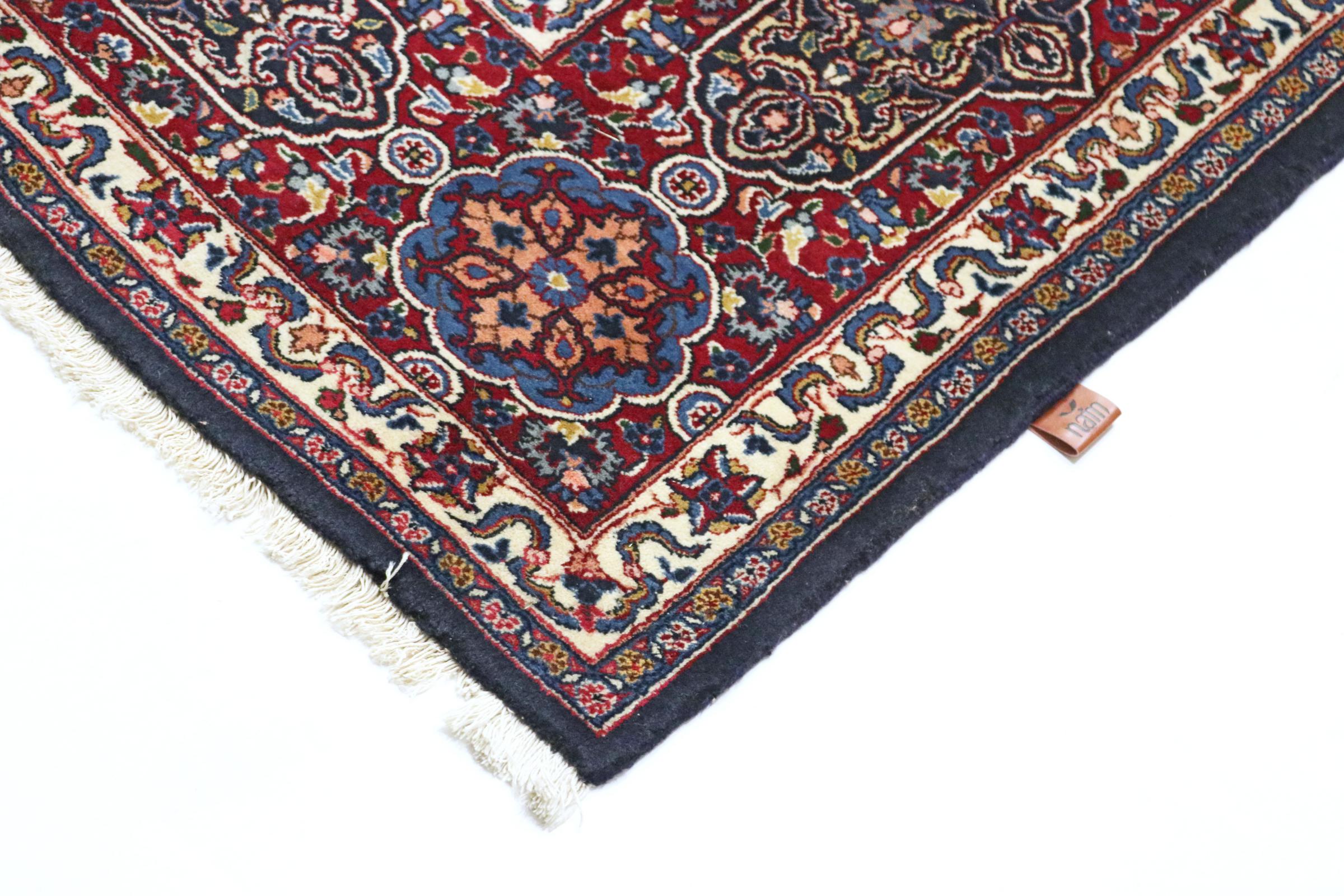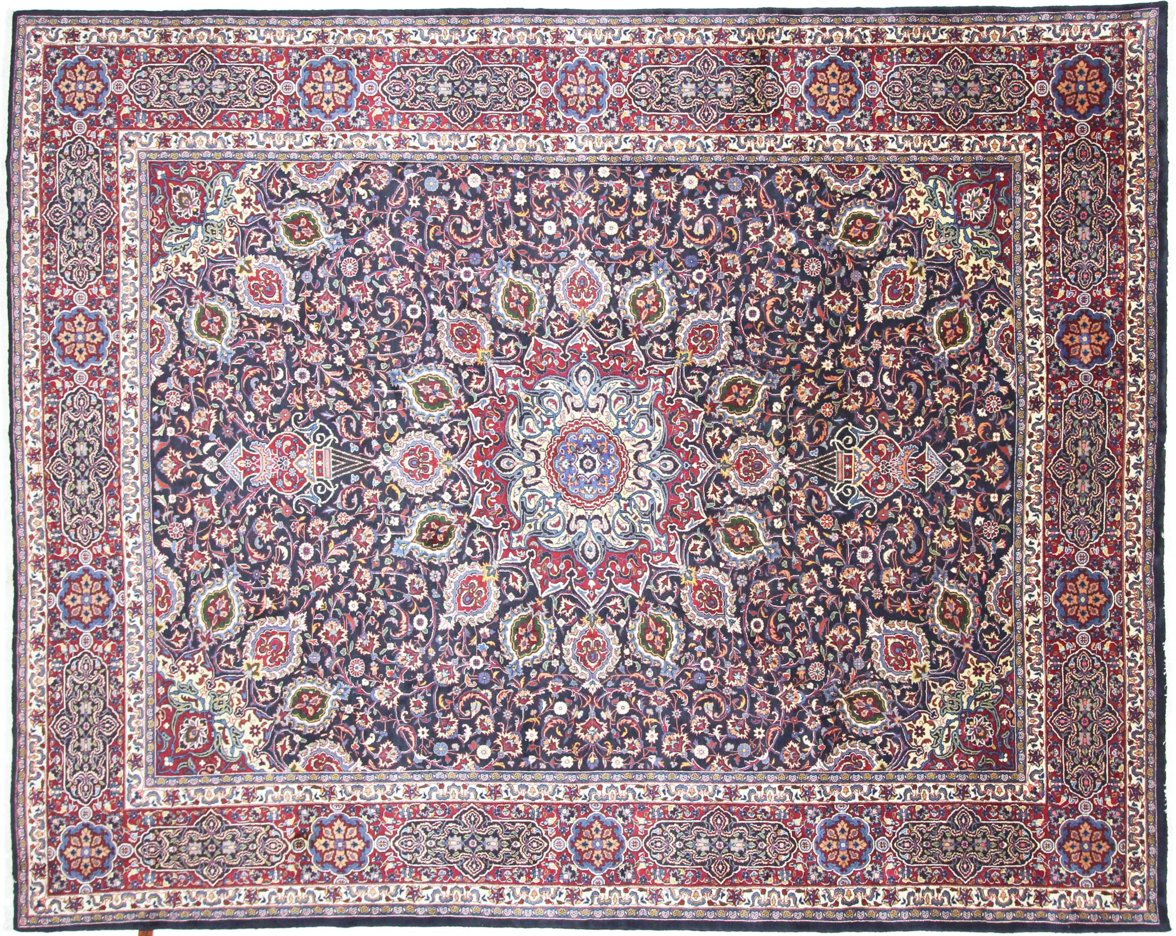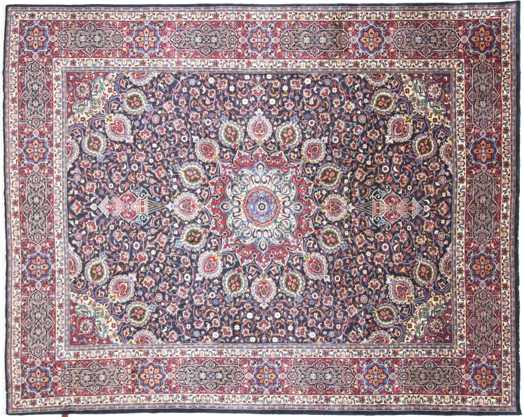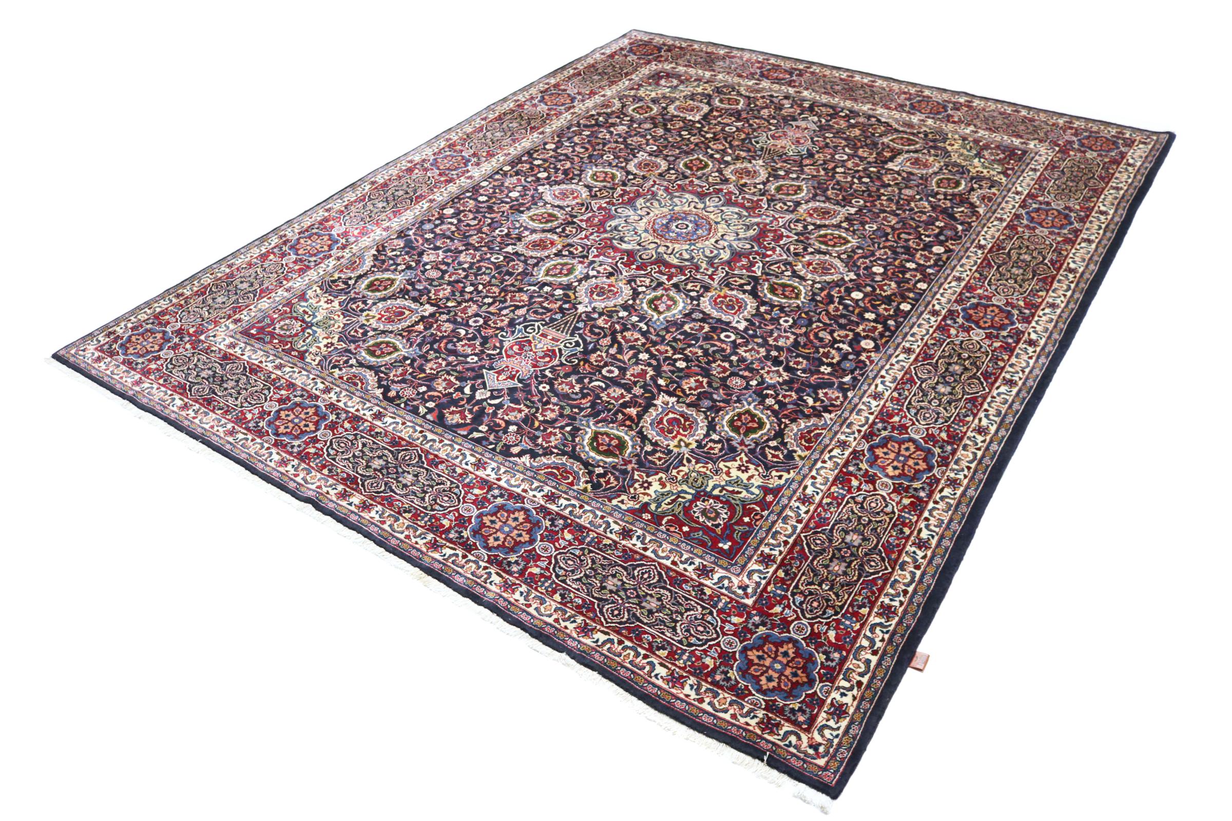 Dette tæppe fra Mashhad, en af de største byer i Iran, er håndknyttet af ren naturuld. Millioner af mennesker valfarter hvert år til denne hellige persiske by. Mashhad-tæpper er kendt for deres usædvanlige størrelser og uld af ekstremt høj kvalitet.