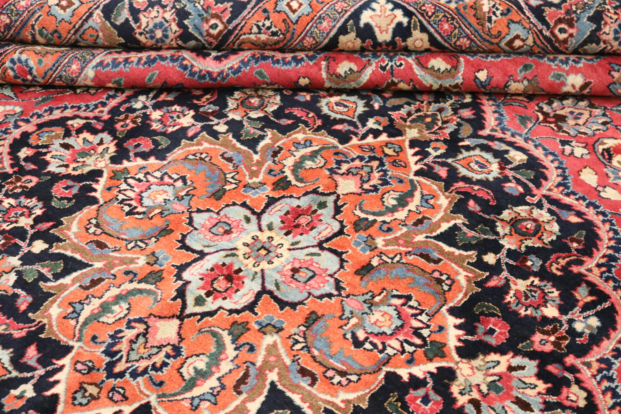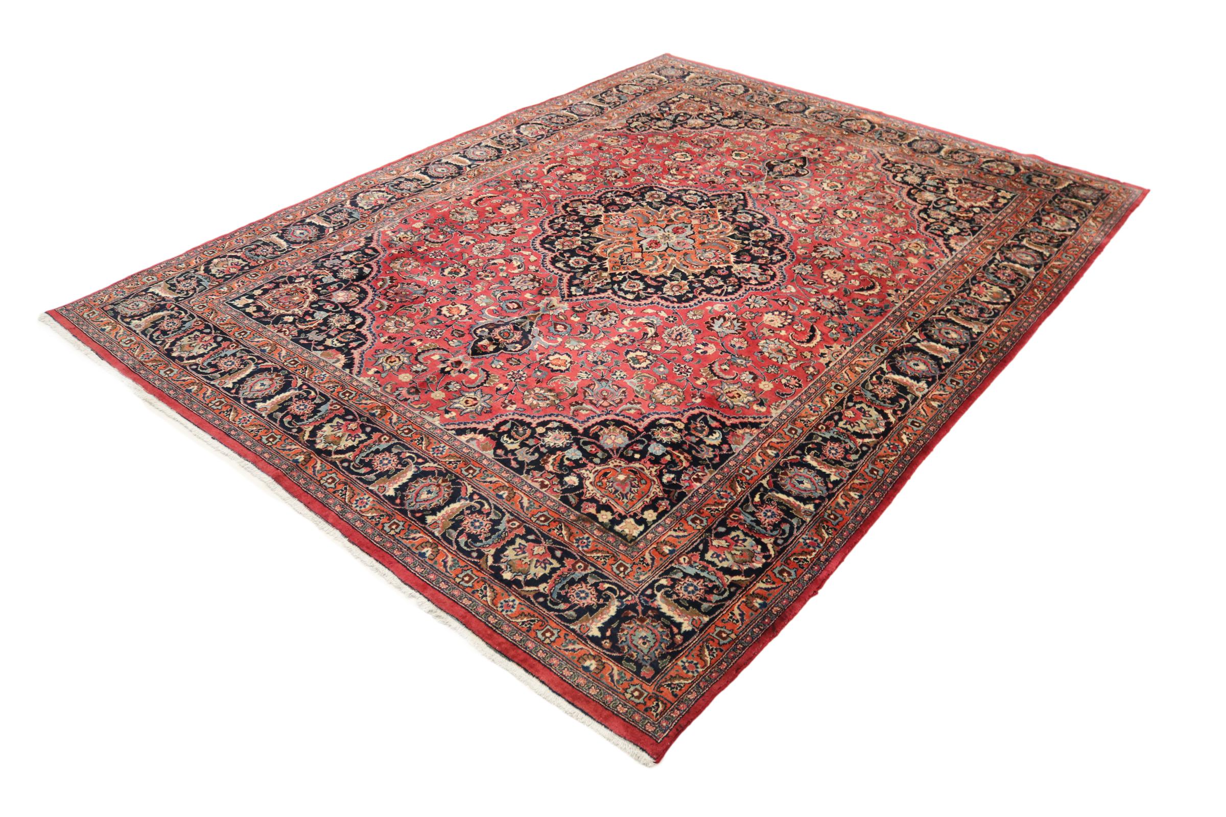 Dette tæppe fra Mashhad, en af de største byer i Iran, er håndknyttet af ren naturuld. Millioner af mennesker valfarter hvert år til denne hellige persiske by. Mashhad-tæpper er kendt for deres usædvanlige størrelser og uld af ekstremt høj kvalitet.