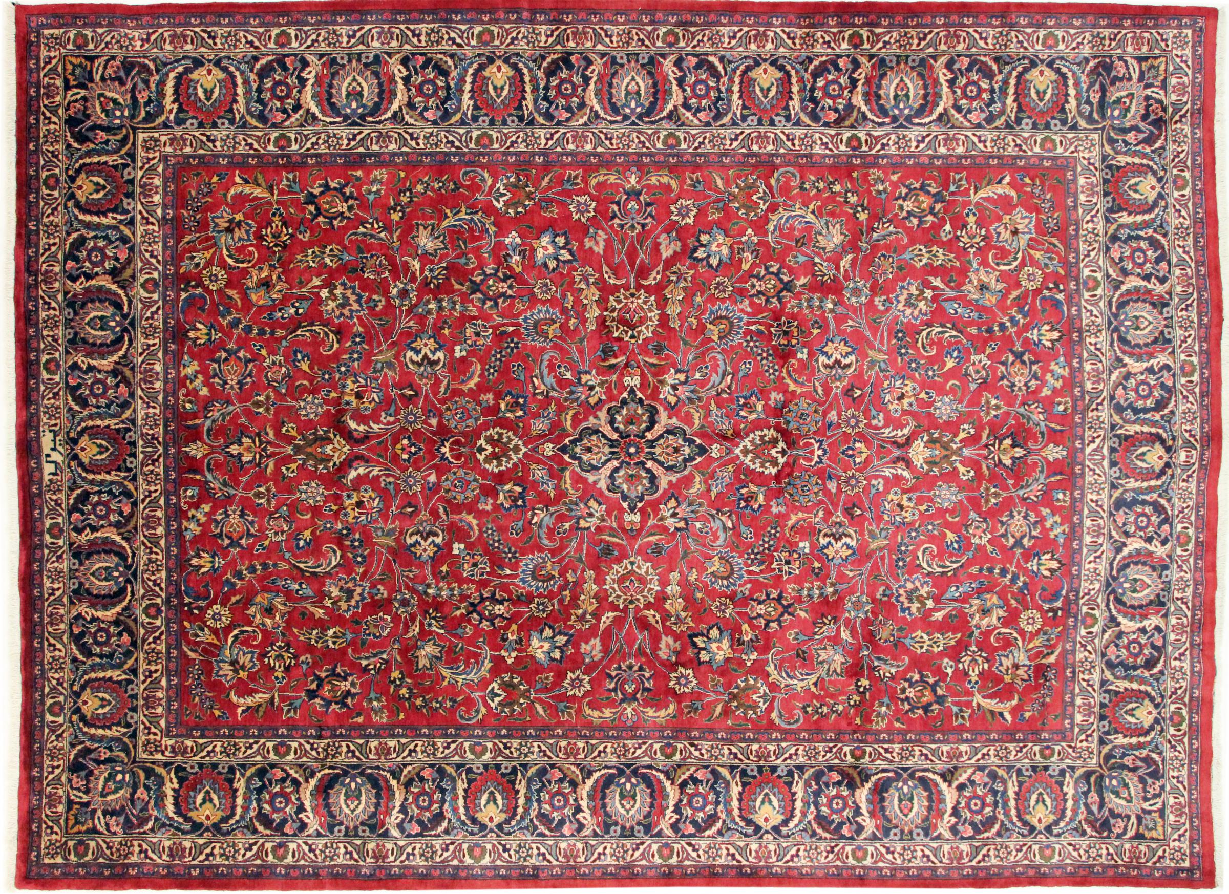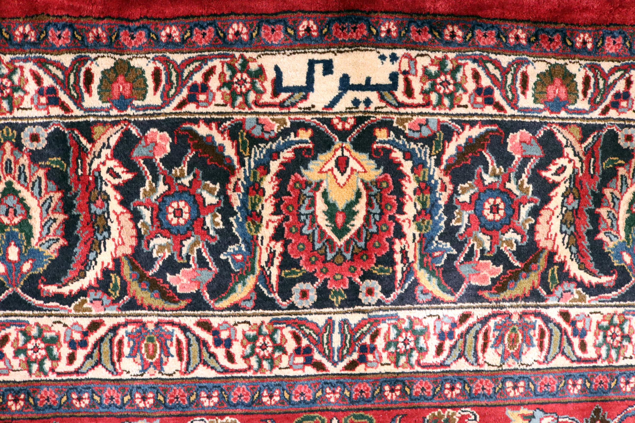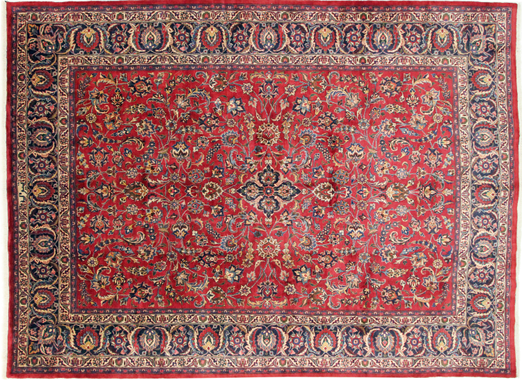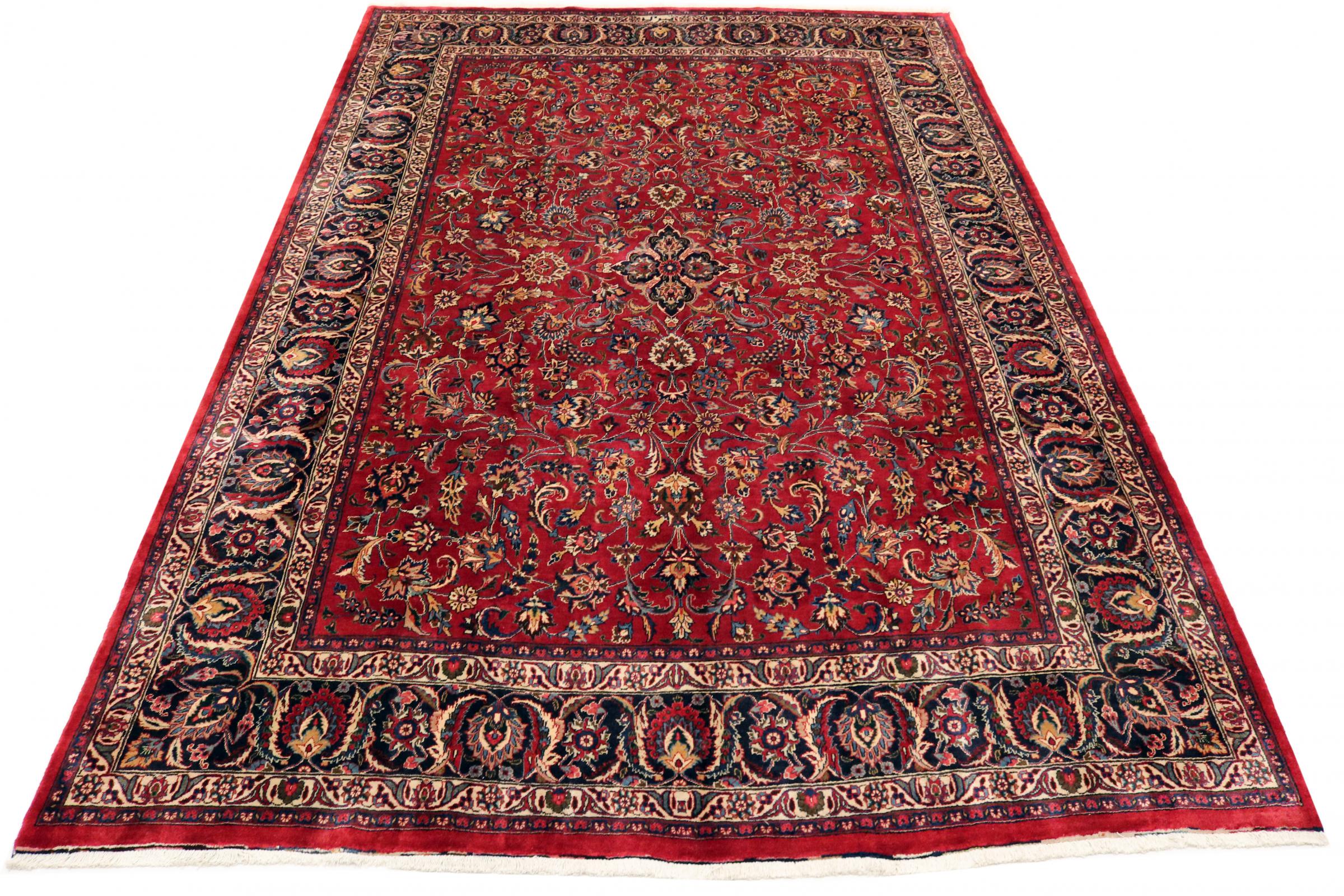 Dette tæppe fra Mashhad, en af de største byer i Iran, er håndknyttet af ren naturuld. Millioner af mennesker valfarter hvert år til denne hellige persiske by. Mashhad-tæpper er kendt for deres usædvanlige størrelser og uld af ekstremt høj kvalitet.