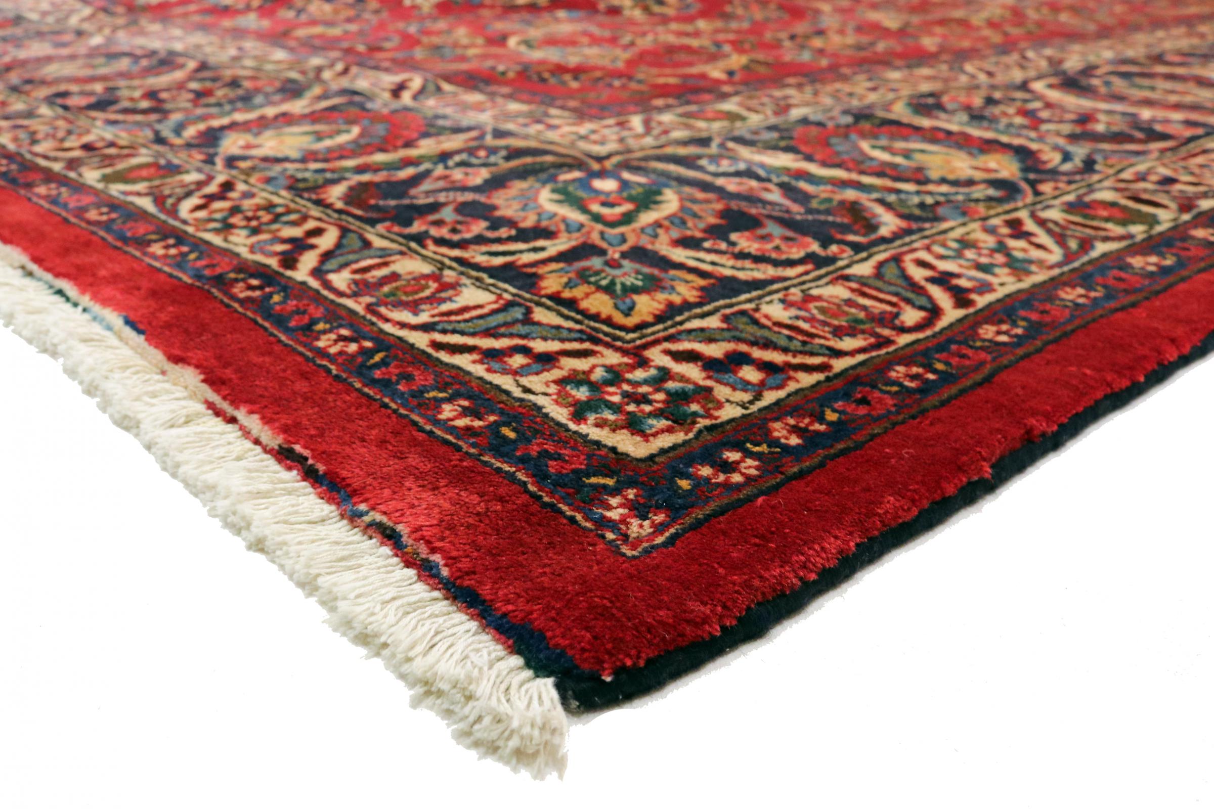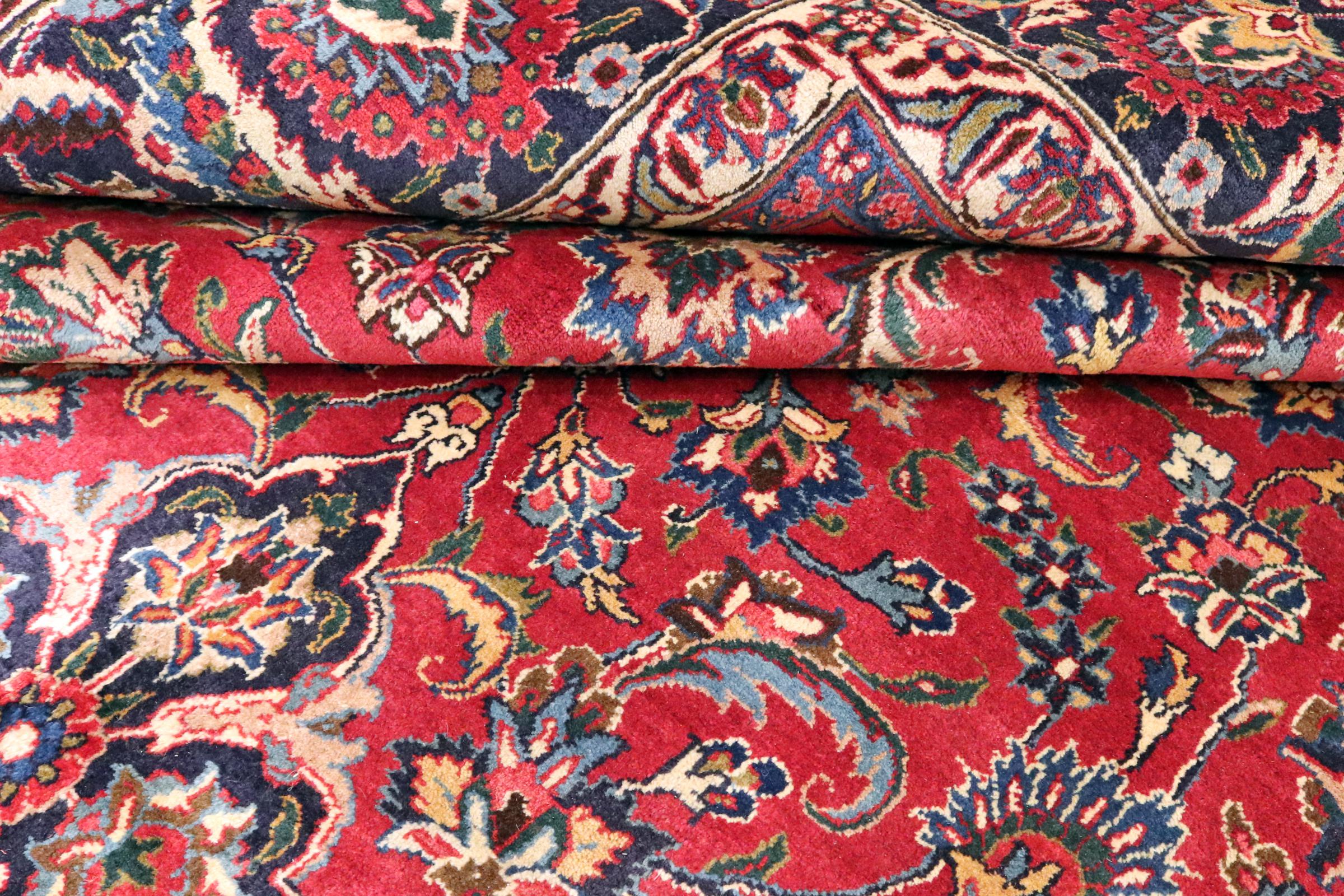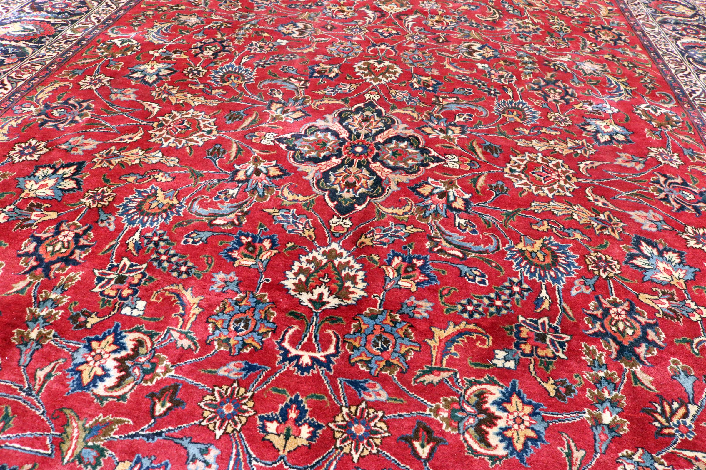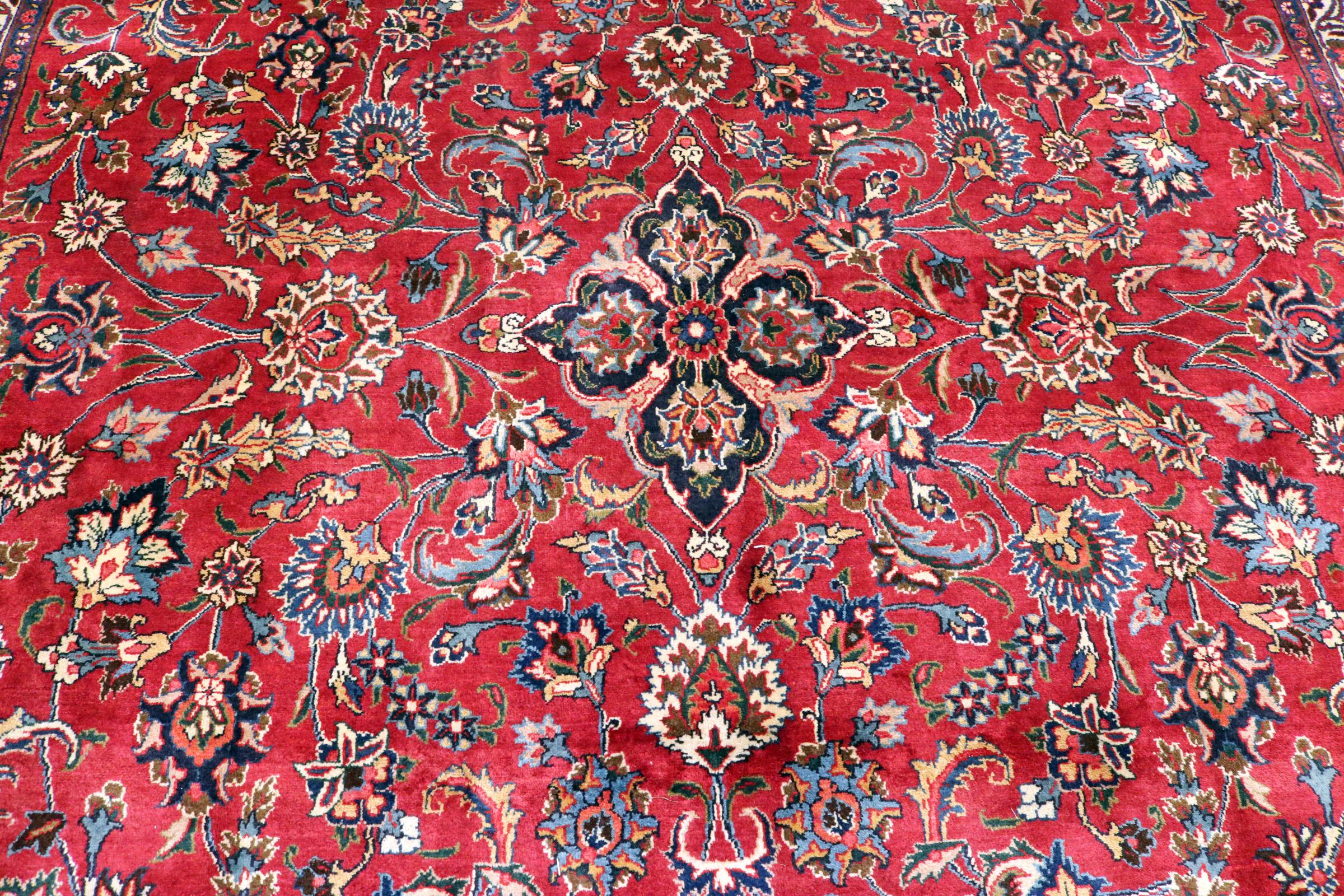 Dette tæppe fra Mashhad, en af de største byer i Iran, er håndknyttet af ren naturuld. Millioner af mennesker valfarter hvert år til denne hellige persiske by. Mashhad-tæpper er kendt for deres usædvanlige størrelser og uld af ekstremt høj kvalitet.