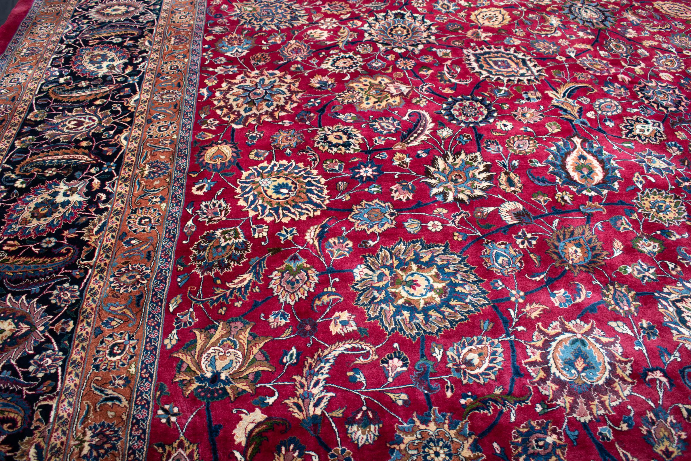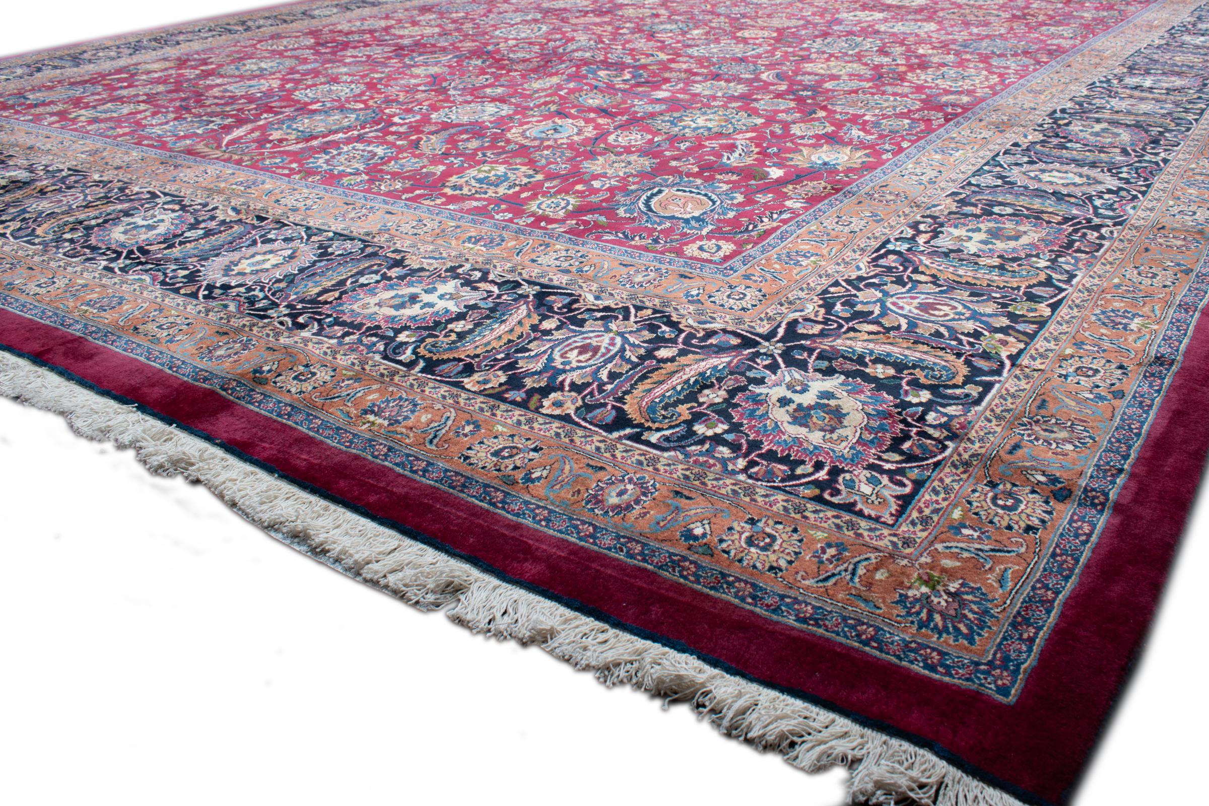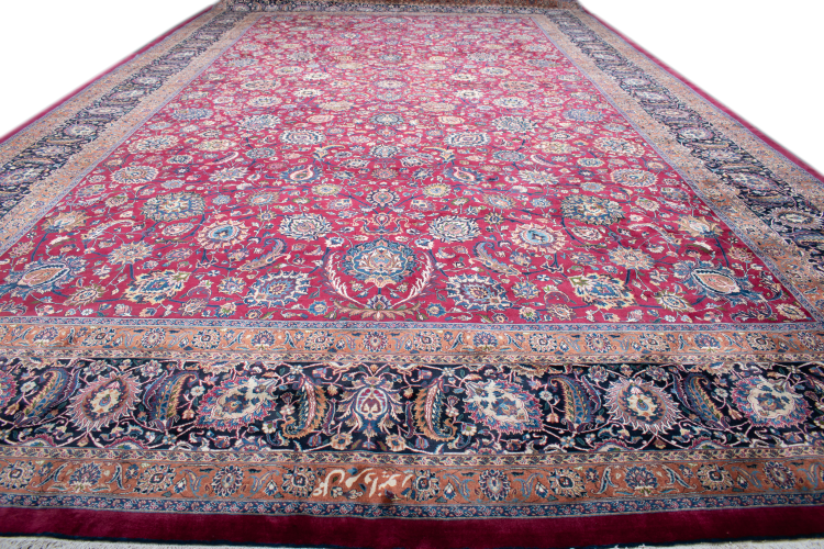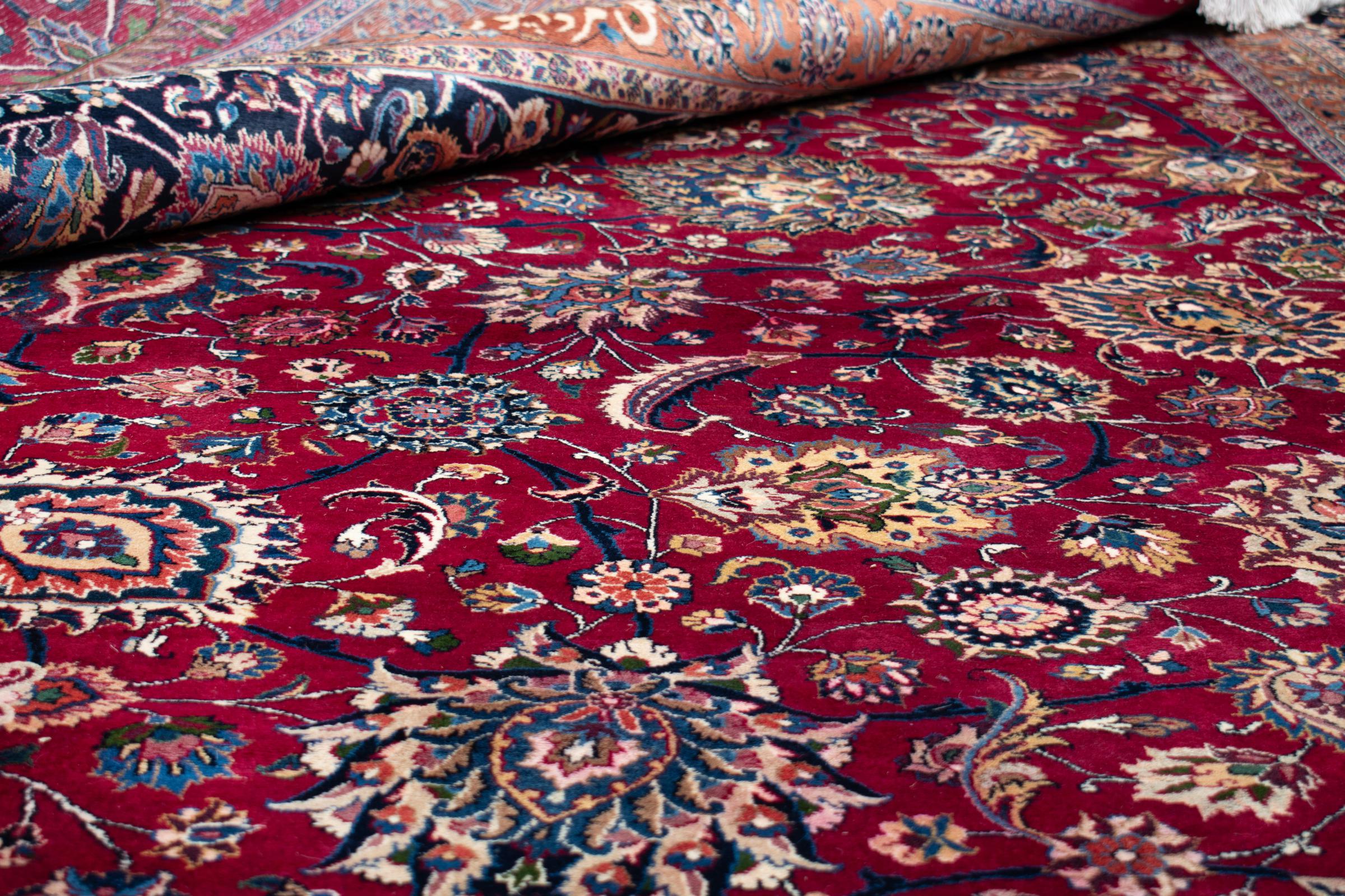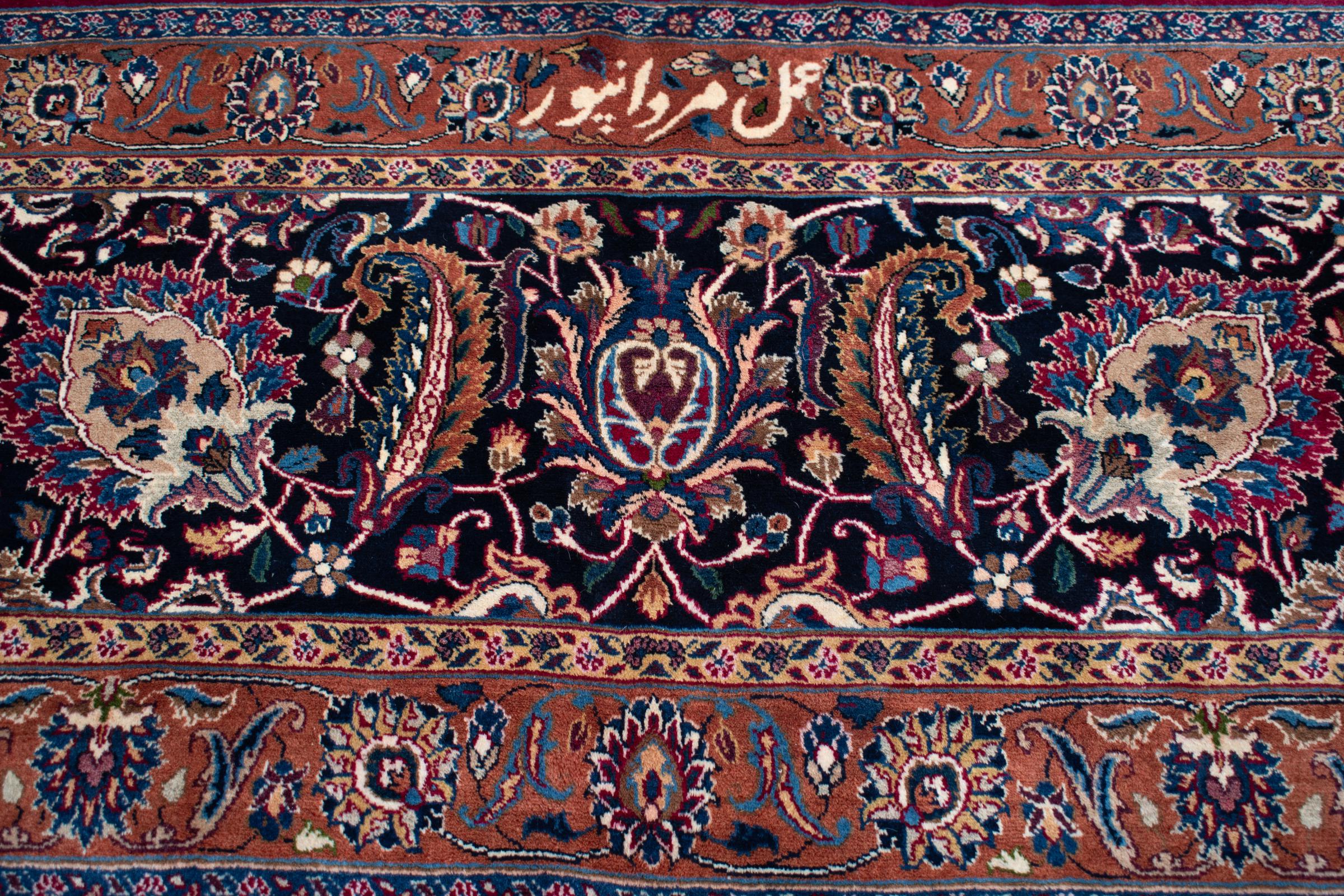 Dette tæppe fra Mashhad, en af de største byer i Iran, er håndknyttet af ren naturuld. Millioner af mennesker valfarter hvert år til denne hellige persiske by. Mashhad-tæpper er kendt for deres usædvanlige størrelser og uld af ekstremt høj kvalitet.