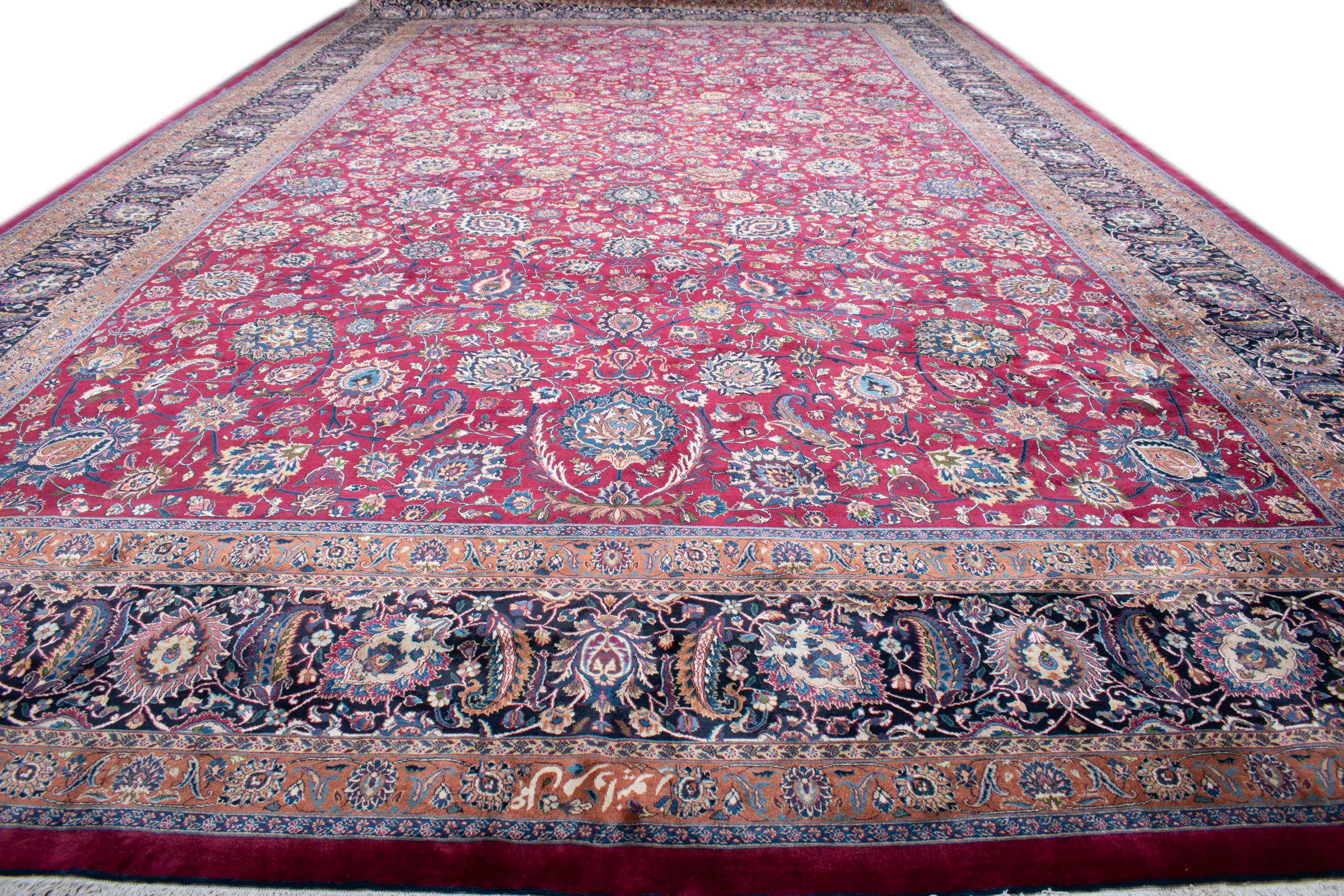 Tæppe-nr.: 288056007635436 Størrelse: 819x501 cm Tykkelse: ca. 12 mm Knuder: 160 000 - 200 000 / m² Forarbejdelse: Knyttet i hånden Luv: Håndspunden uld Kæde: Bomuld Oprindelse: Persien / Iran Alder: Ny Vægt: ca. 144 kg Også kendt som Maschad, Meshed Antal på lager: Unik - Kun 1 tilbage på lager