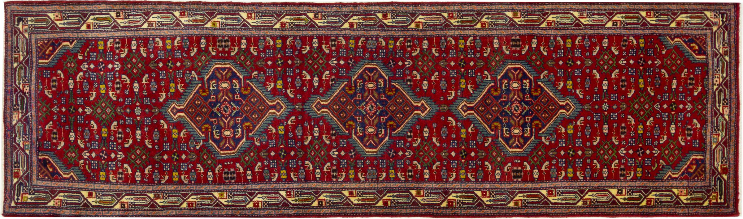 Tæppe-nr.: 303890007533690 Størrelse: 288x87 cm Tykkelse: ca. 5 mm Knuder: 128 000 - 160 000 / m² Forarbejdelse: Knyttet i hånden Luv: Håndspunden uld Kæde: Bomuld Oprindelse: Persien / Iran Alder: Ny Vægt: ca. 9 kg Også kendt som Meriban Antal på lager: Unik - Kun 1 tilbage på lager