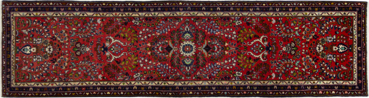 Tæppe-nr.: 303882003190463 Størrelse: 308x81 cm Tykkelse: ca. 5 mm Knuder: 200 000 - 250 000 / m² Forarbejdelse: Knyttet i hånden Luv: Håndspunden uld Kæde: Bomuld Oprindelse: Persien / Iran Alder: Ny Vægt: ca. 9 kg Også kendt som Meriban Antal på lager: Unik - Kun 1 tilbage på lager