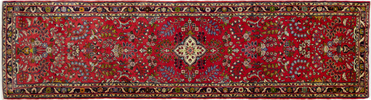 Tæppe-nr.: 303895008413936 Størrelse: 320x86 cm Tykkelse: ca. 5 mm Knuder: 128 000 - 160 000 / m² Forarbejdelse: Knyttet i hånden Luv: Håndspunden uld Kæde: Bomuld Oprindelse: Persien / Iran Alder: Ny Vægt: ca. 10 kg Også kendt som Meriban Antal på lager: Unik - Kun 1 tilbage på lager