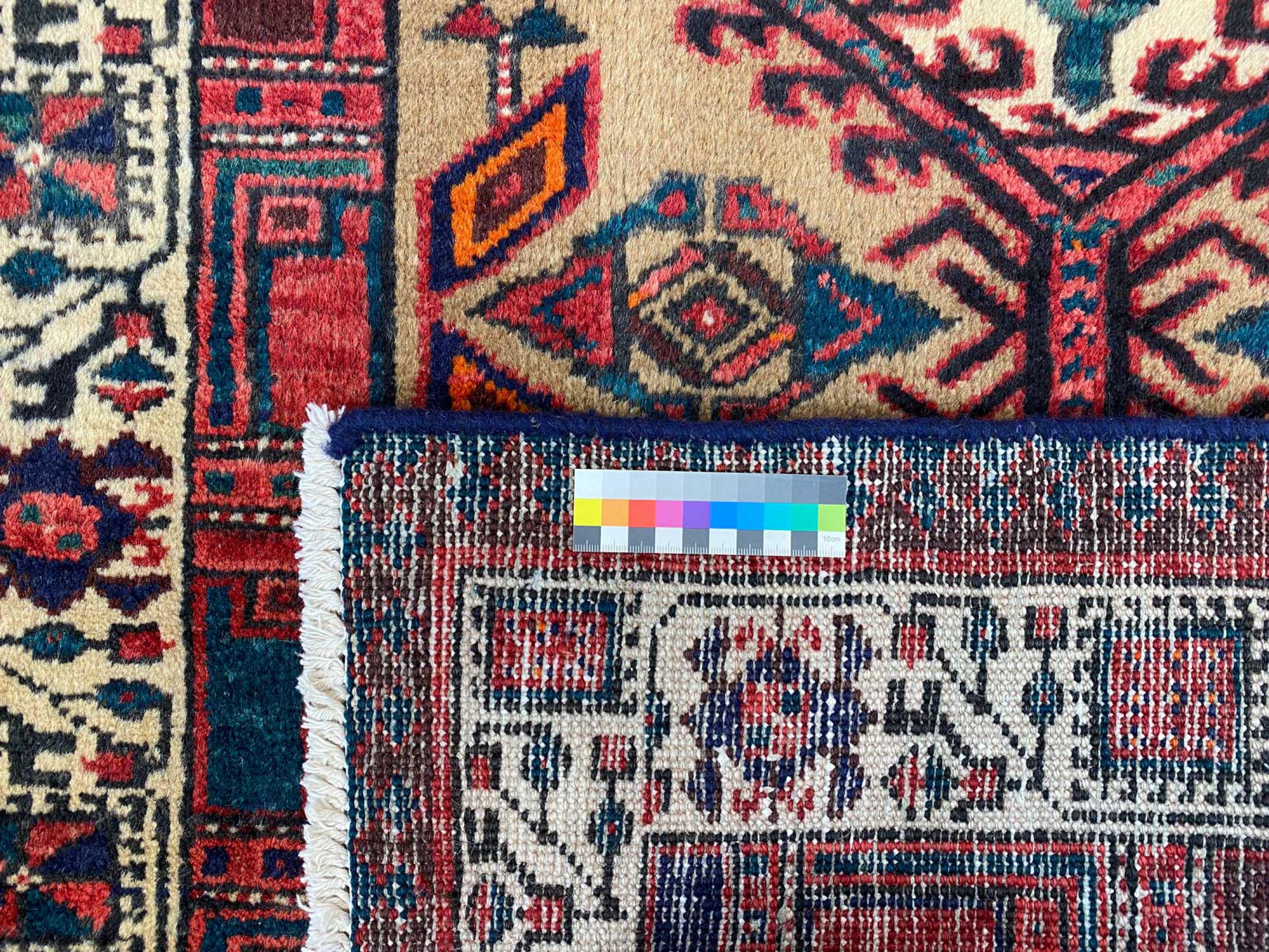 Dette tæppe hører til landsby- og nomadetæpper fra Iran, tidligere Persien. Denne type tæppe er håndknyttet i små byer og landsbyer i den gamle tradition. Nomader fremstiller også persiske tæpper under den åbne himmel. Tæpperne er knudt helt fra hovedet uden en skabelon. De er kendetegnet ved klassiske ornamenter, der er opstillet i lineære og geometriske mønstre. Takket være deres kulturelle og traditionelle oprindelse har disse tæpper en unik karakter, der udgør det gamle Persien.