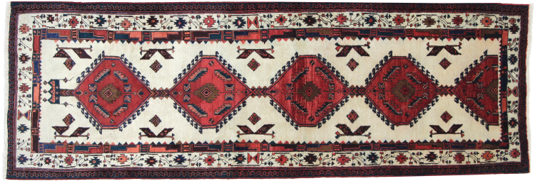 Dette tæppe hører til landsby- og nomadetæpper fra Iran, tidligere Persien. Denne type tæppe er håndknyttet i små byer og landsbyer i den gamle tradition. Nomader fremstiller også persiske tæpper under den åbne himmel. Tæpperne er knudt helt fra hovedet uden en skabelon. De er kendetegnet ved klassiske ornamenter, der er opstillet i lineære og geometriske mønstre. Takket være deres kulturelle og traditionelle oprindelse har disse tæpper en unik karakter, der udgør det gamle Persien.