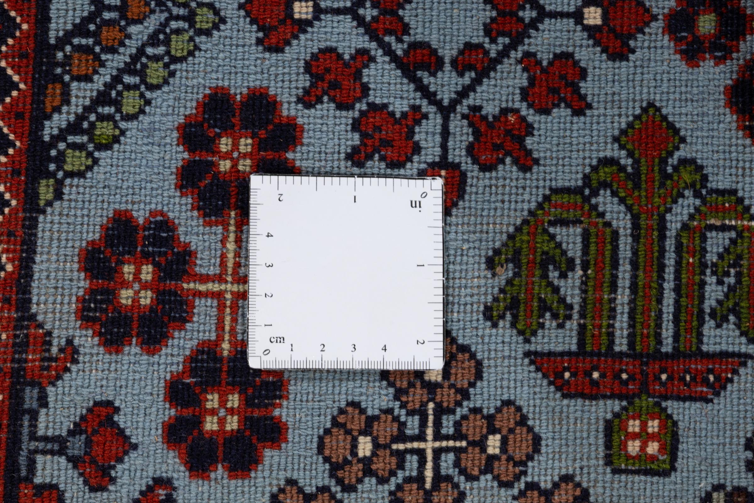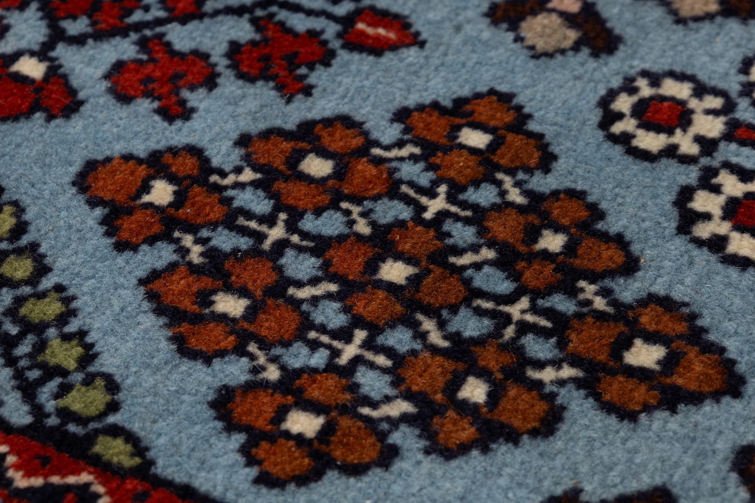 Persiske tæpper fra Meymey står for høj håndværksmæssig kvalitet og ekspertise. Dette eksemplar er ingen undtagelse, men bekræfter reglen. De smukke farver og det individuelle design er enestående. Det er håndknyttet i byen Meymey, en lille by cirka 100 kilometer fra Isfahan. Meymey-tæpper har et meget unikt design, der hurtigt og stilfuldt adskiller dem fra andre persiske tæpper. Det er præcis det, der gør dette tæppe så specielt.