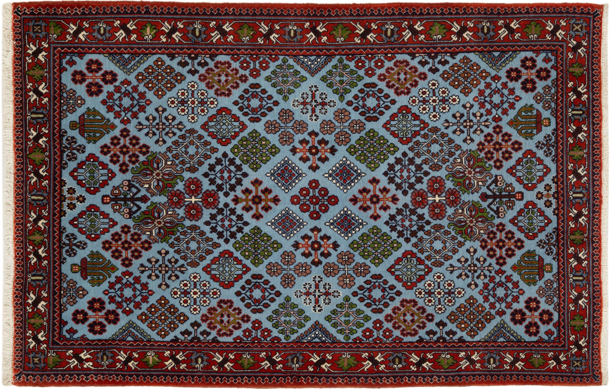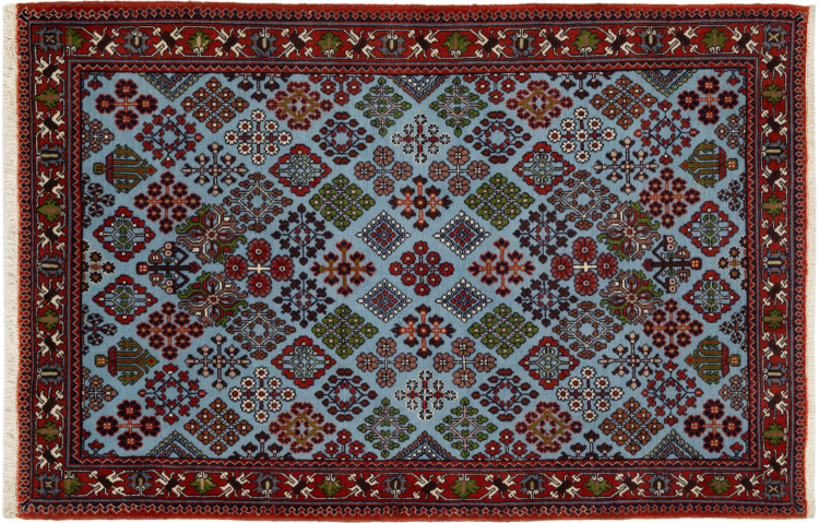 Dette tæppe hører til landsby- og nomadetæpper fra Iran, tidligere Persien. Denne type tæppe er håndknyttet i små byer og landsbyer i den gamle tradition. Nomader fremstiller også persiske tæpper under den åbne himmel. Tæpperne er knudt helt fra hovedet uden en skabelon. De er kendetegnet ved klassiske ornamenter, der er opstillet i lineære og geometriske mønstre. Takket være deres kulturelle og traditionelle oprindelse har disse tæpper en unik karakter, der udgør det gamle Persien.