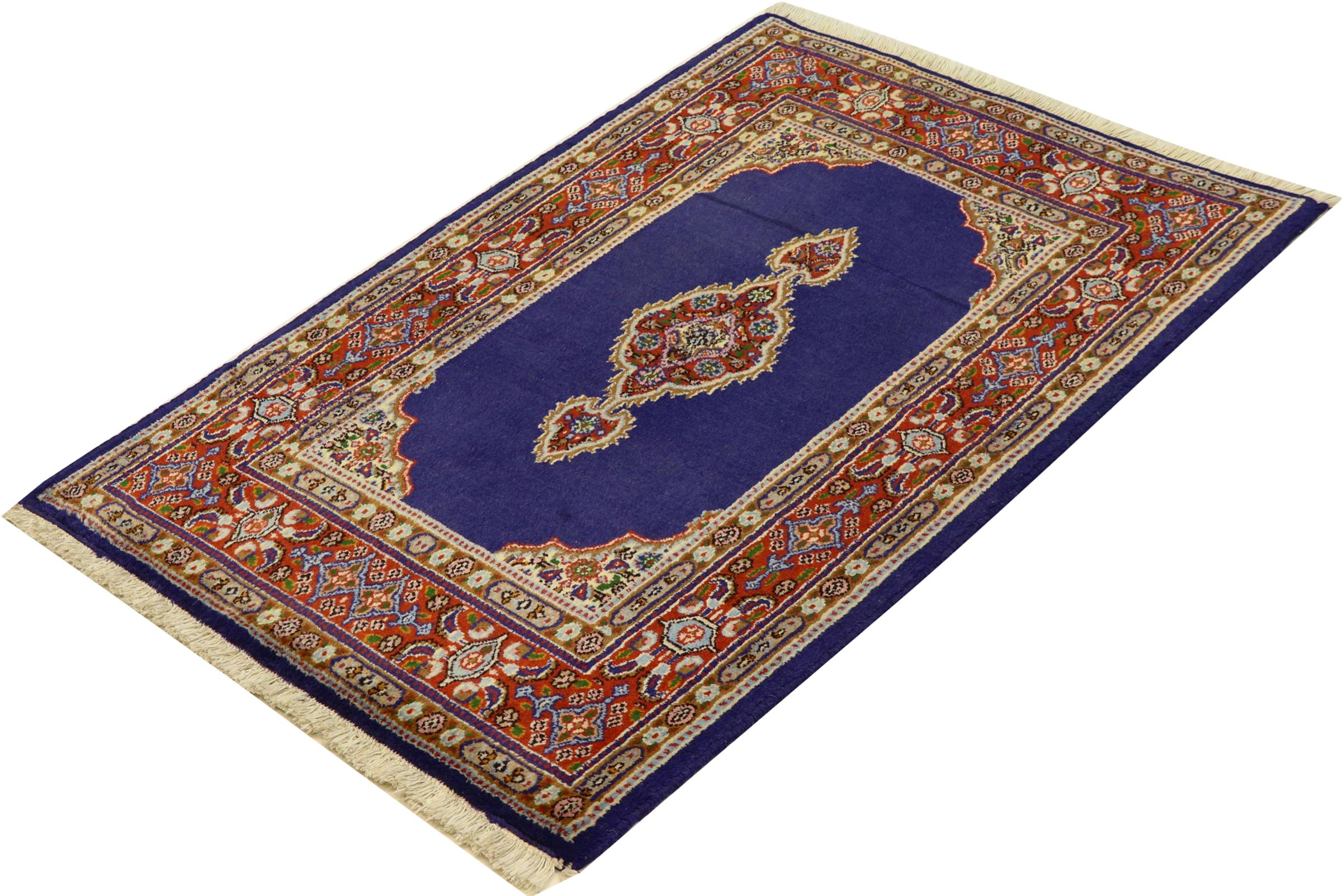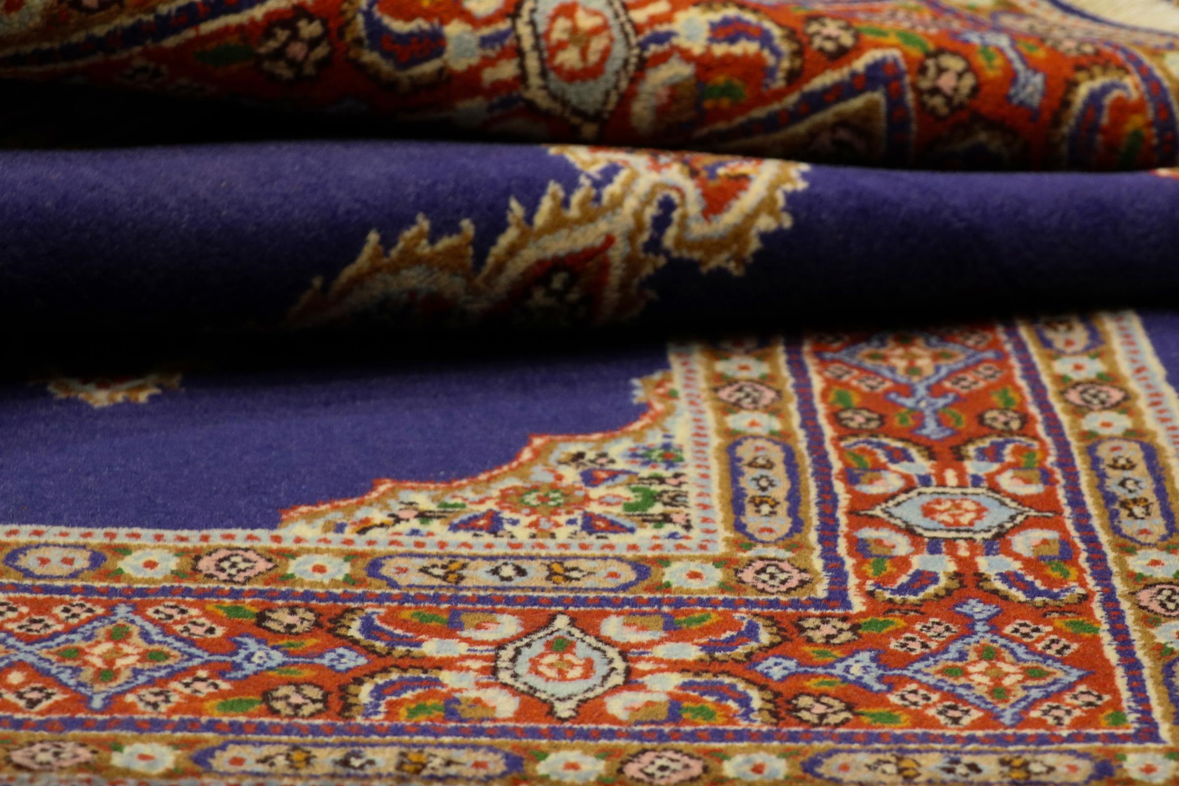 Dette tæppe fra Moud, en by 300 km syd for Mashhad, er imponerende ved første øjekast. Det typiske Herati-mønster eller havedesign værdsættes af kendere og elskere af ægte persiske tæpper. Hvis du leder efter et håndlavet tæppe af fin kvalitet med et meget unikt og karakteristisk design, er denne type tæppe det helt rigtige for dig.