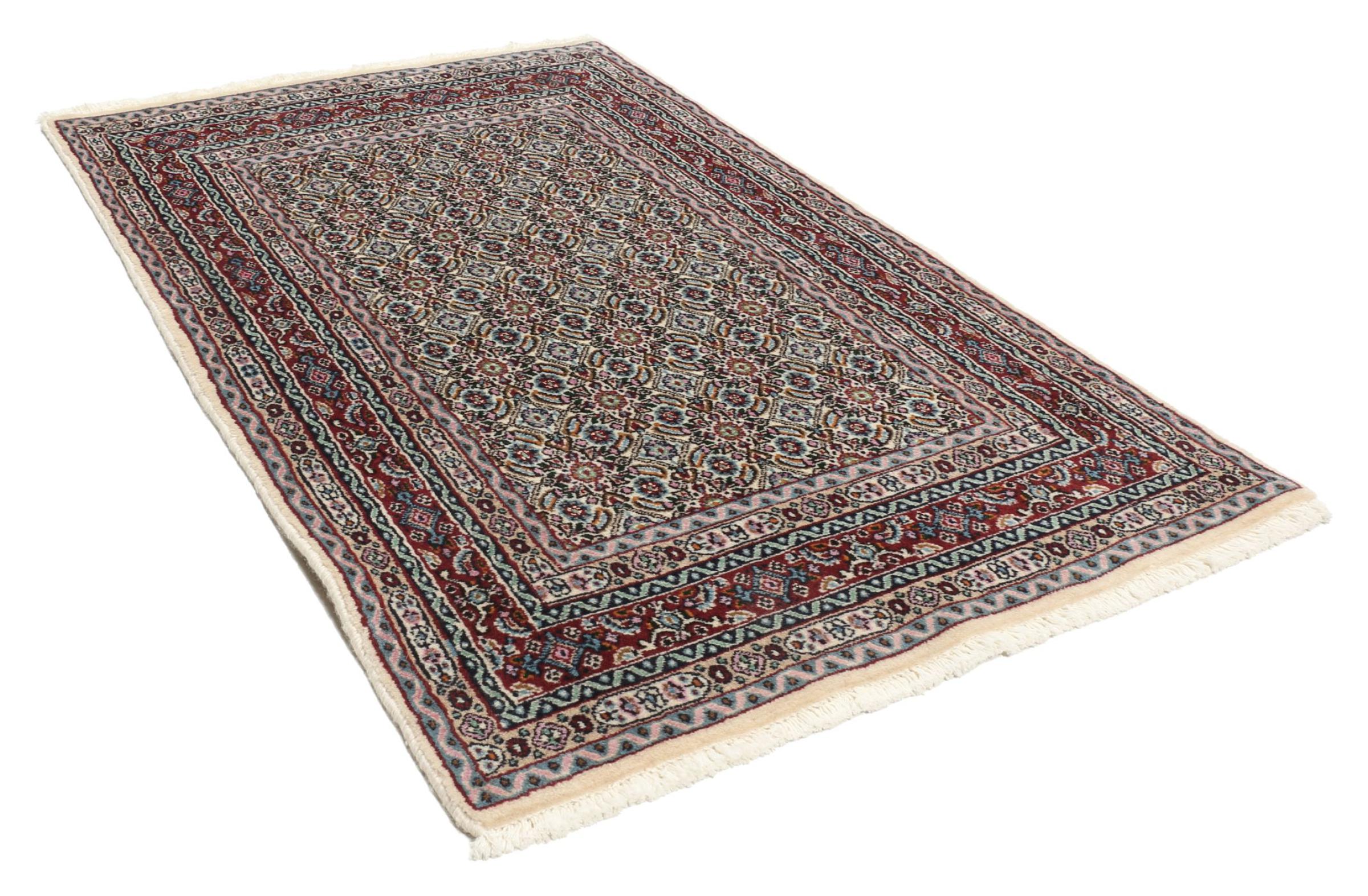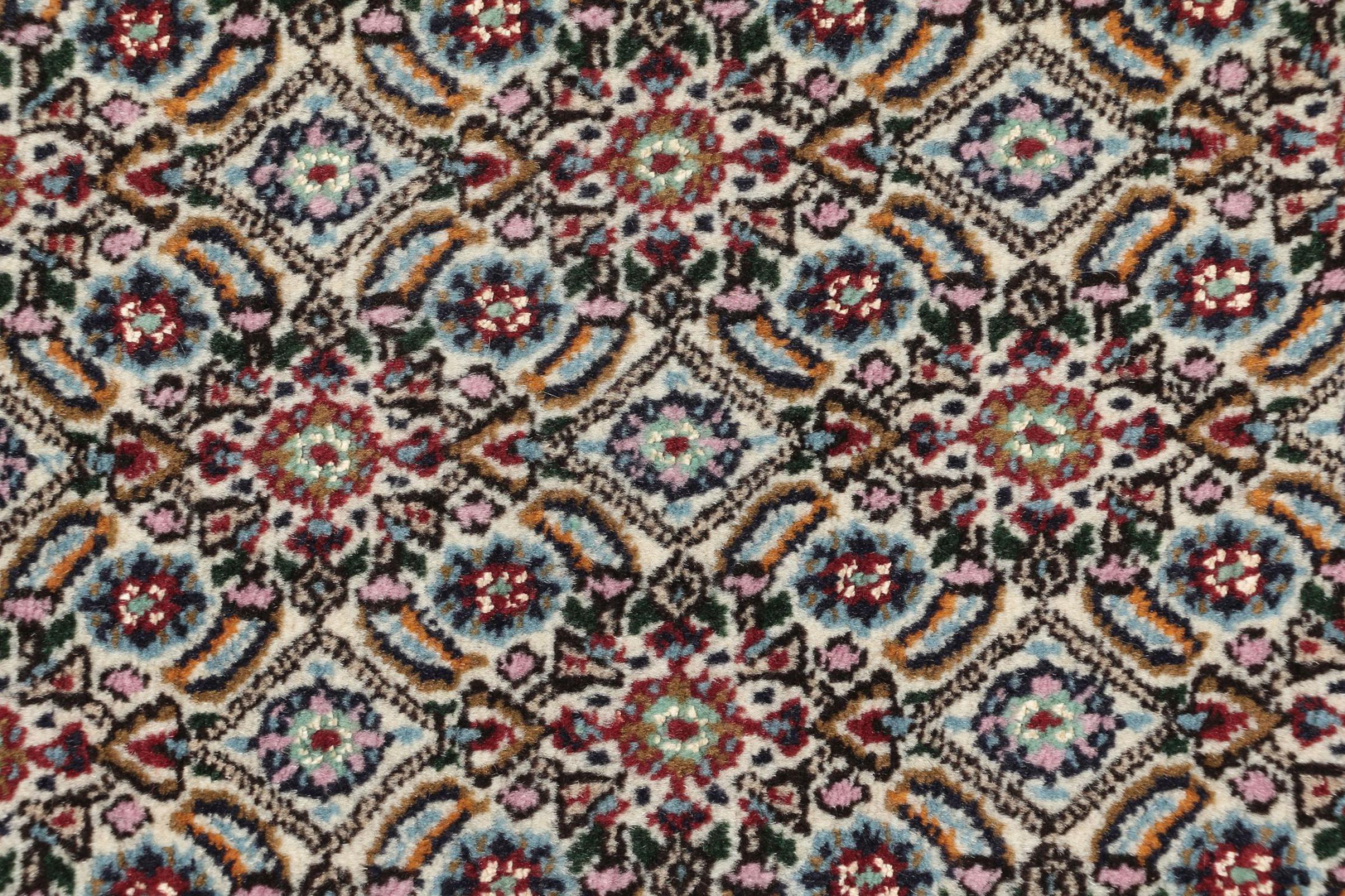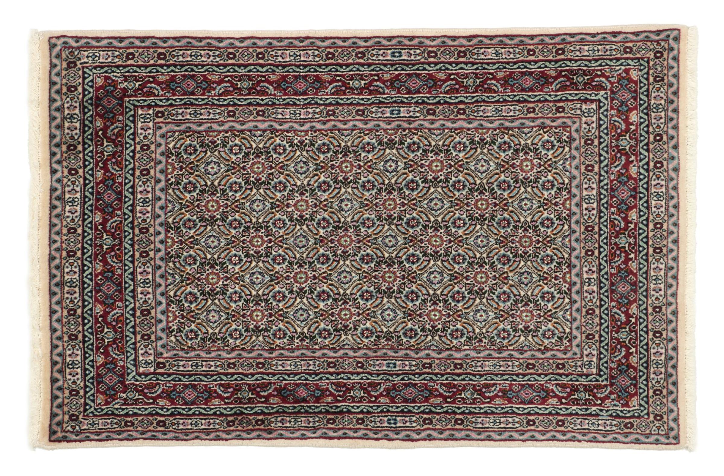 Dette tæppe fra Moud, en by 300 km syd for Mashhad, er imponerende ved første øjekast. Det typiske Herati-mønster eller havedesign værdsættes af kendere og elskere af ægte persiske tæpper. Hvis du leder efter et håndlavet tæppe af fin kvalitet med et meget unikt og karakteristisk design, er denne type tæppe det helt rigtige for dig.