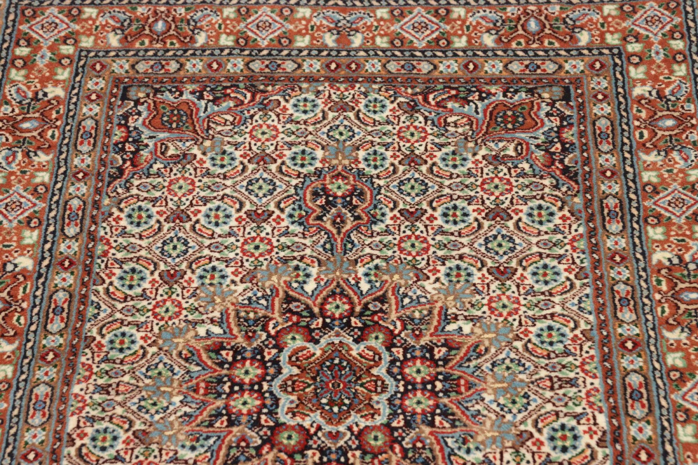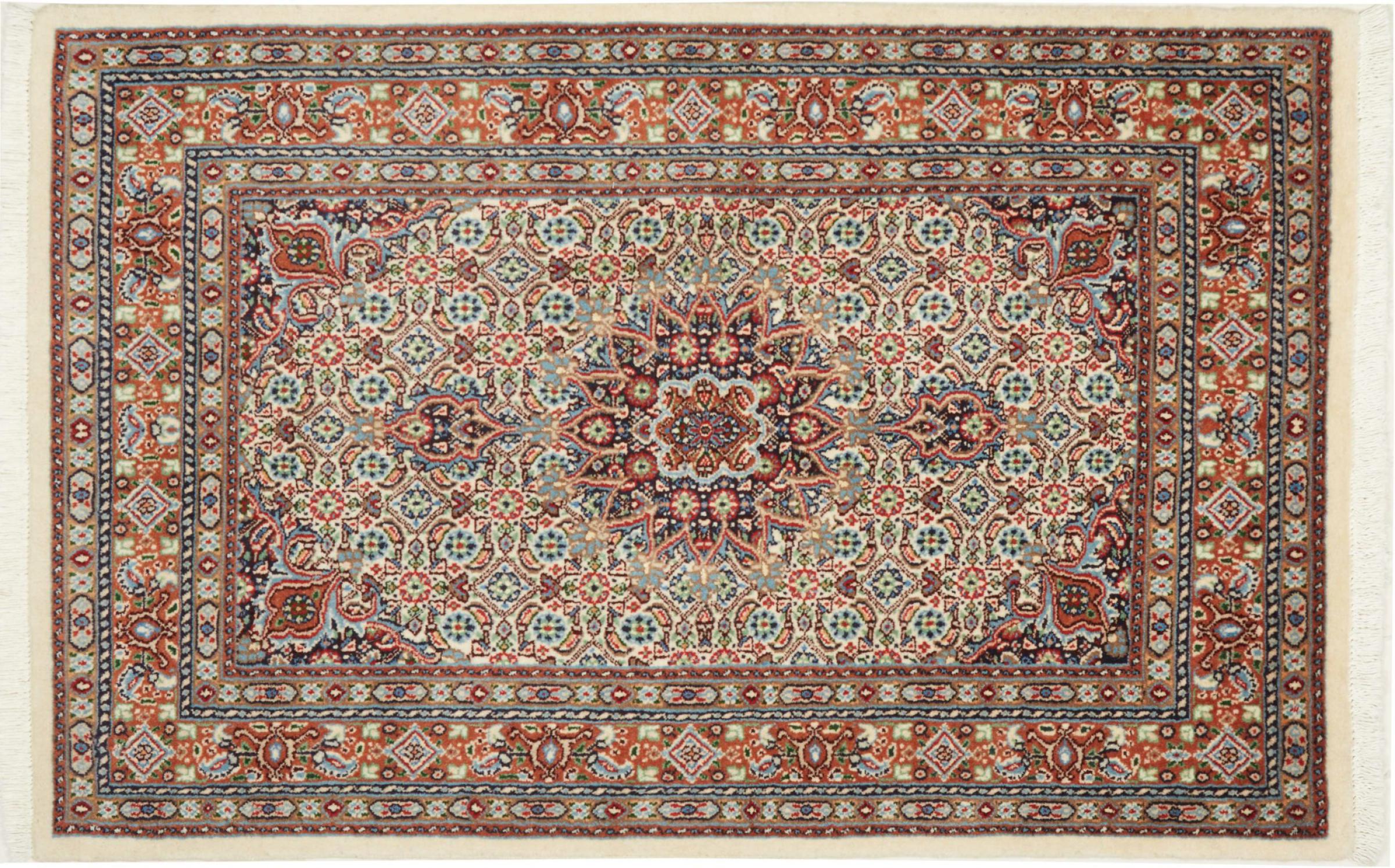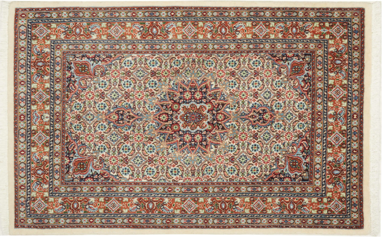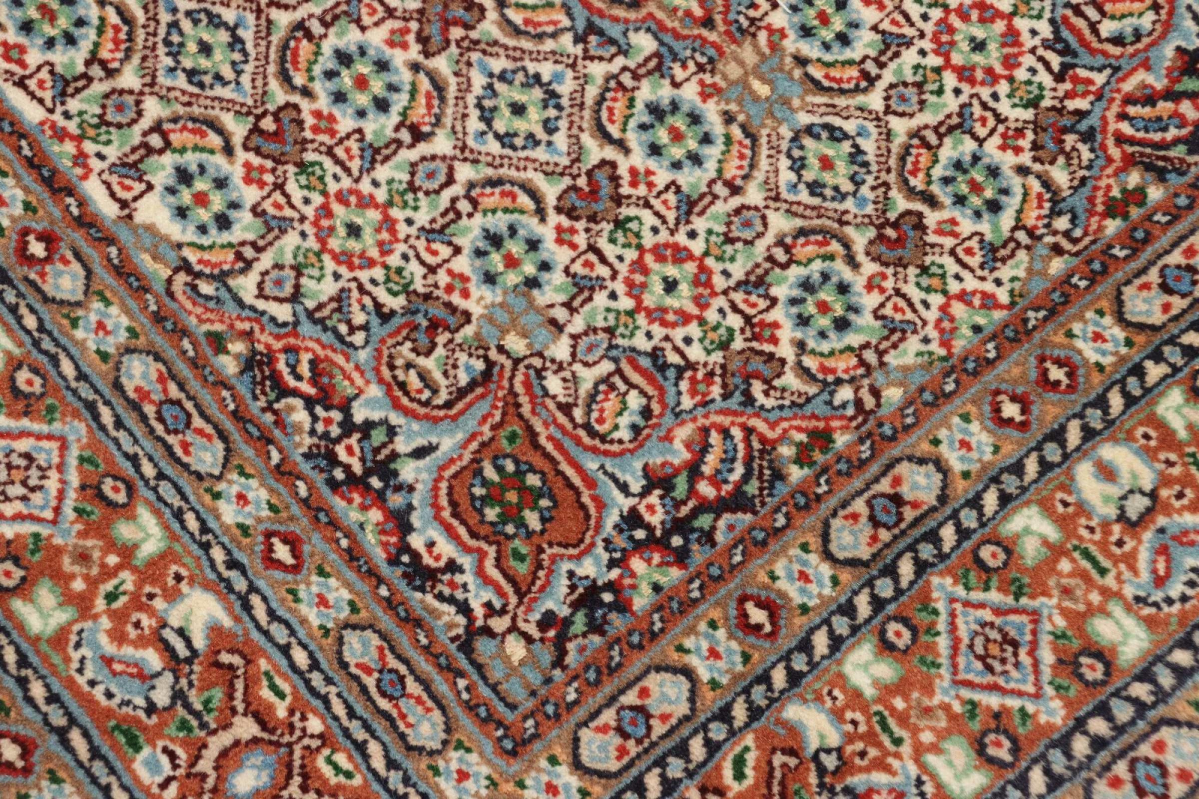 Dette tæppe fra Moud, en by 300 km syd for Mashhad, er imponerende ved første øjekast. Det typiske Herati-mønster eller havedesign værdsættes af kendere og elskere af ægte persiske tæpper. Hvis du leder efter et håndlavet tæppe af fin kvalitet med et meget unikt og karakteristisk design, er denne type tæppe det helt rigtige for dig.