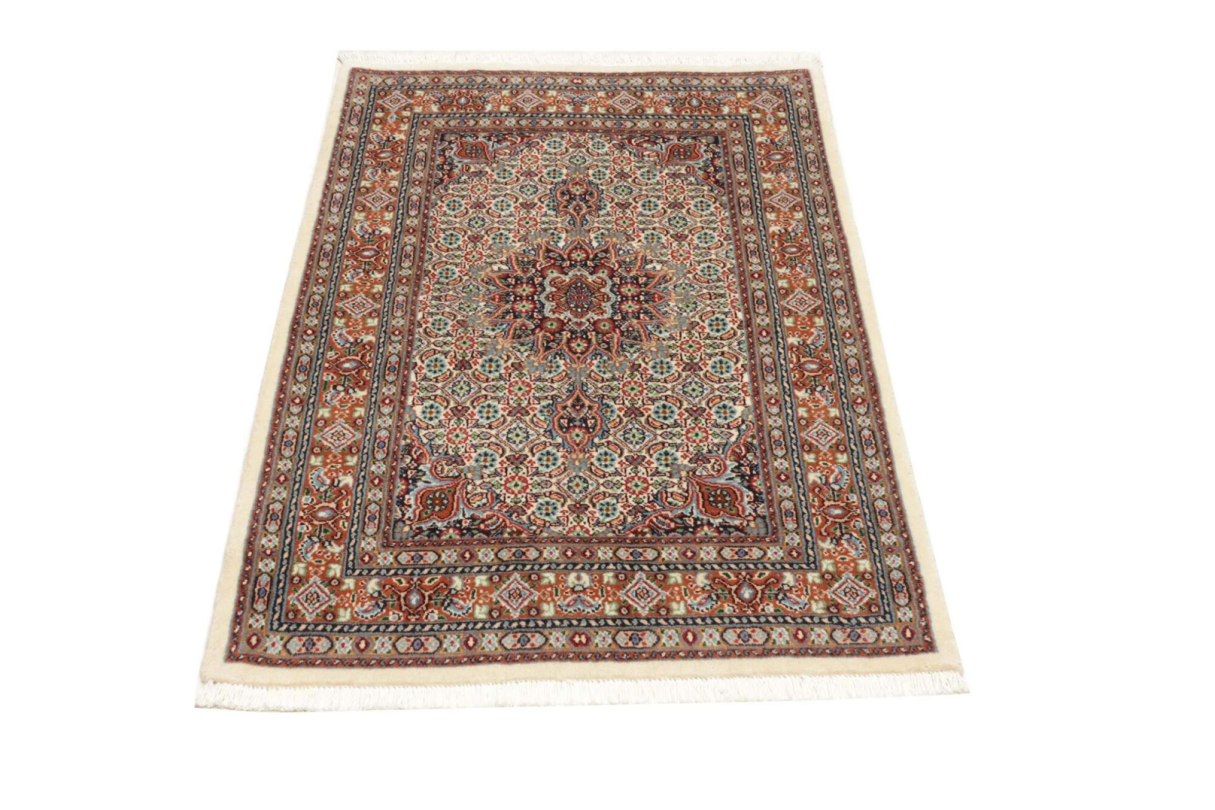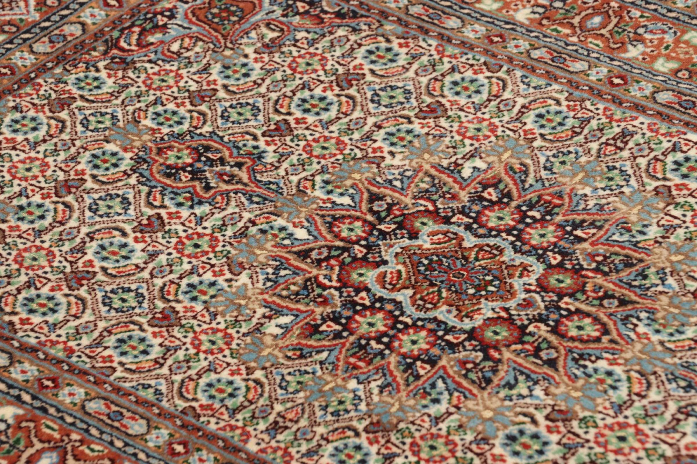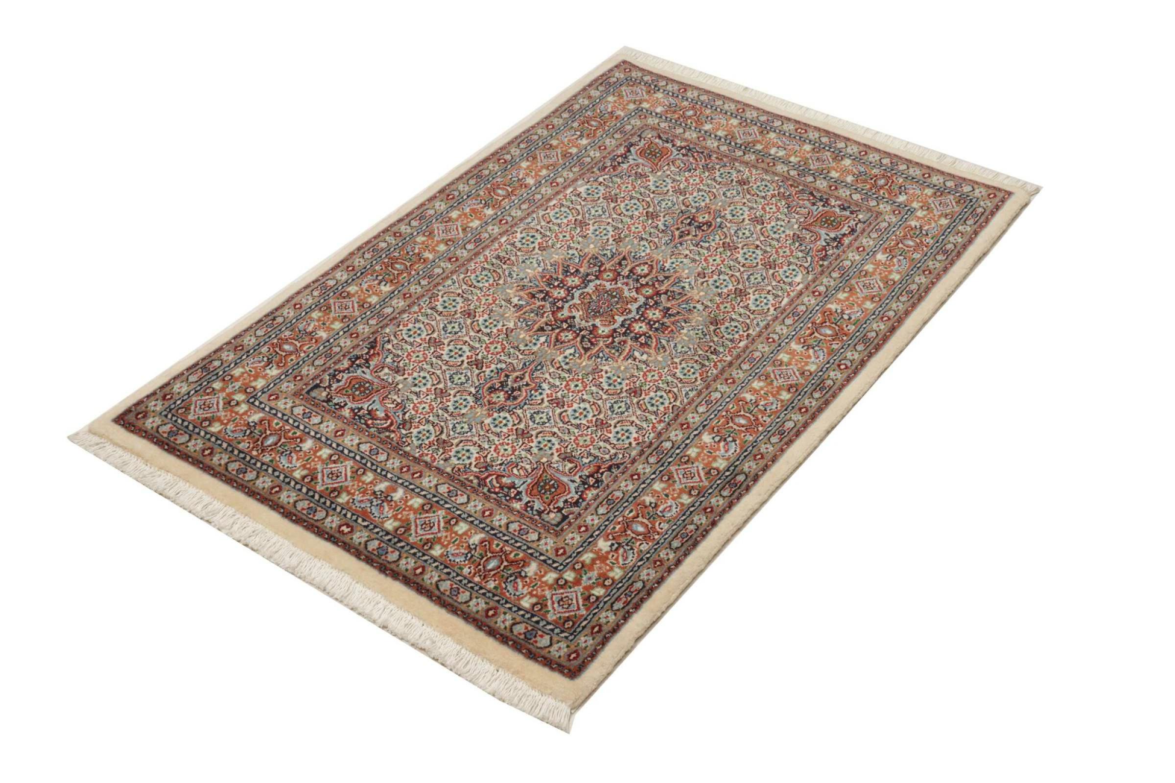 Dette tæppe fra Moud, en by 300 km syd for Mashhad, er imponerende ved første øjekast. Det typiske Herati-mønster eller havedesign værdsættes af kendere og elskere af ægte persiske tæpper. Hvis du leder efter et håndlavet tæppe af fin kvalitet med et meget unikt og karakteristisk design, er denne type tæppe det helt rigtige for dig.