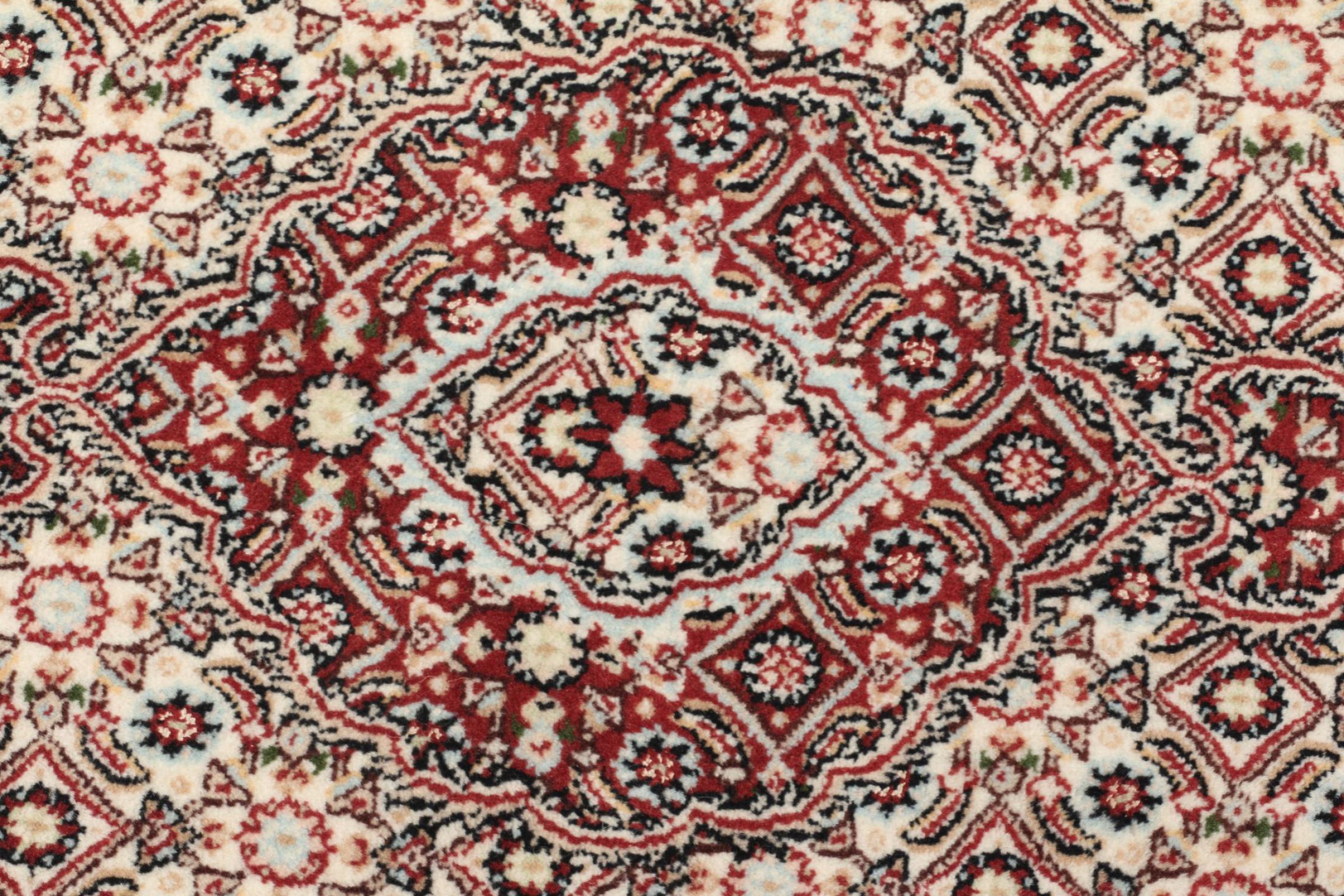 Dette tæppe fra Moud, en by 300 km syd for Mashhad, er imponerende ved første øjekast. Det typiske Herati-mønster eller havedesign værdsættes af kendere og elskere af ægte persiske tæpper. Hvis du leder efter et håndlavet tæppe af fin kvalitet med et meget unikt og karakteristisk design, er denne type tæppe det helt rigtige for dig.
