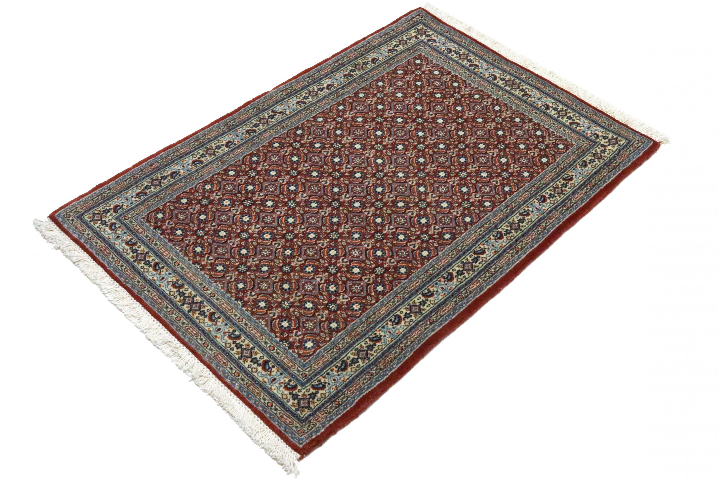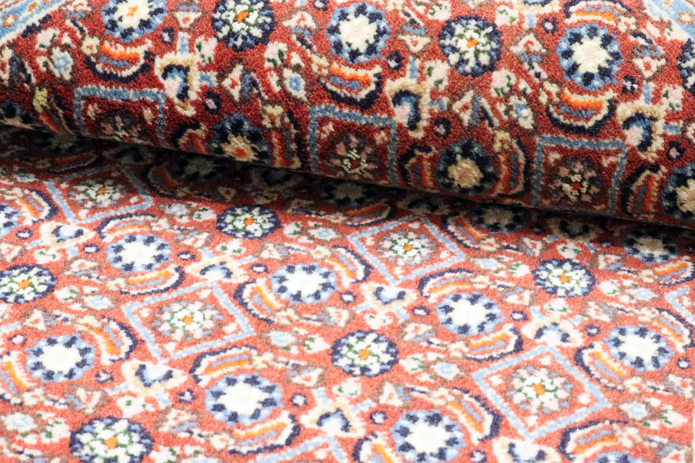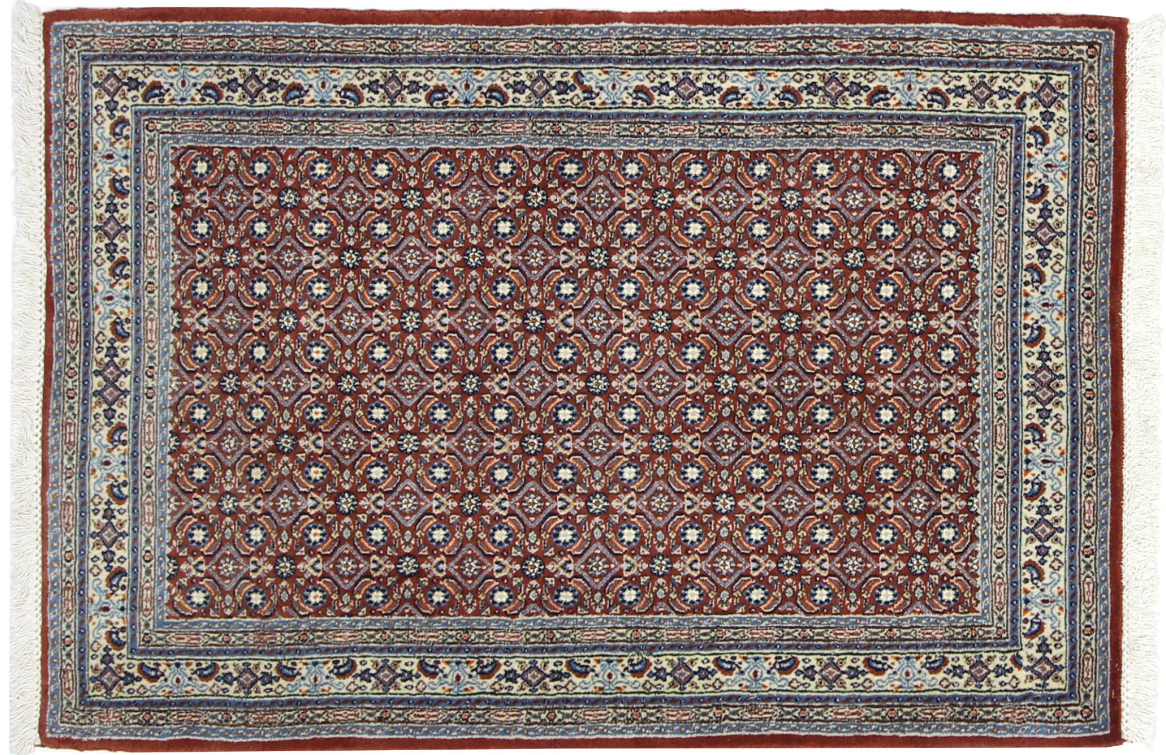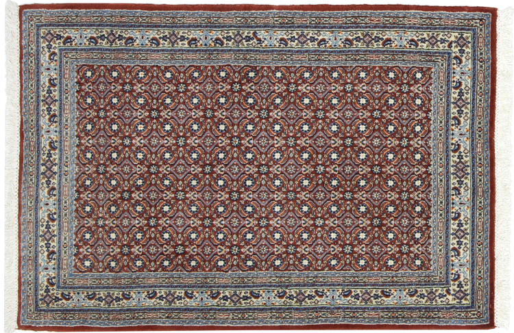 Dette tæppe fra Moud, en by 300 km syd for Mashhad, er imponerende ved første øjekast. Det typiske Herati-mønster eller havedesign værdsættes af kendere og elskere af ægte persiske tæpper. Hvis du leder efter et håndlavet tæppe af fin kvalitet med et meget unikt og karakteristisk design, er denne type tæppe det helt rigtige for dig.