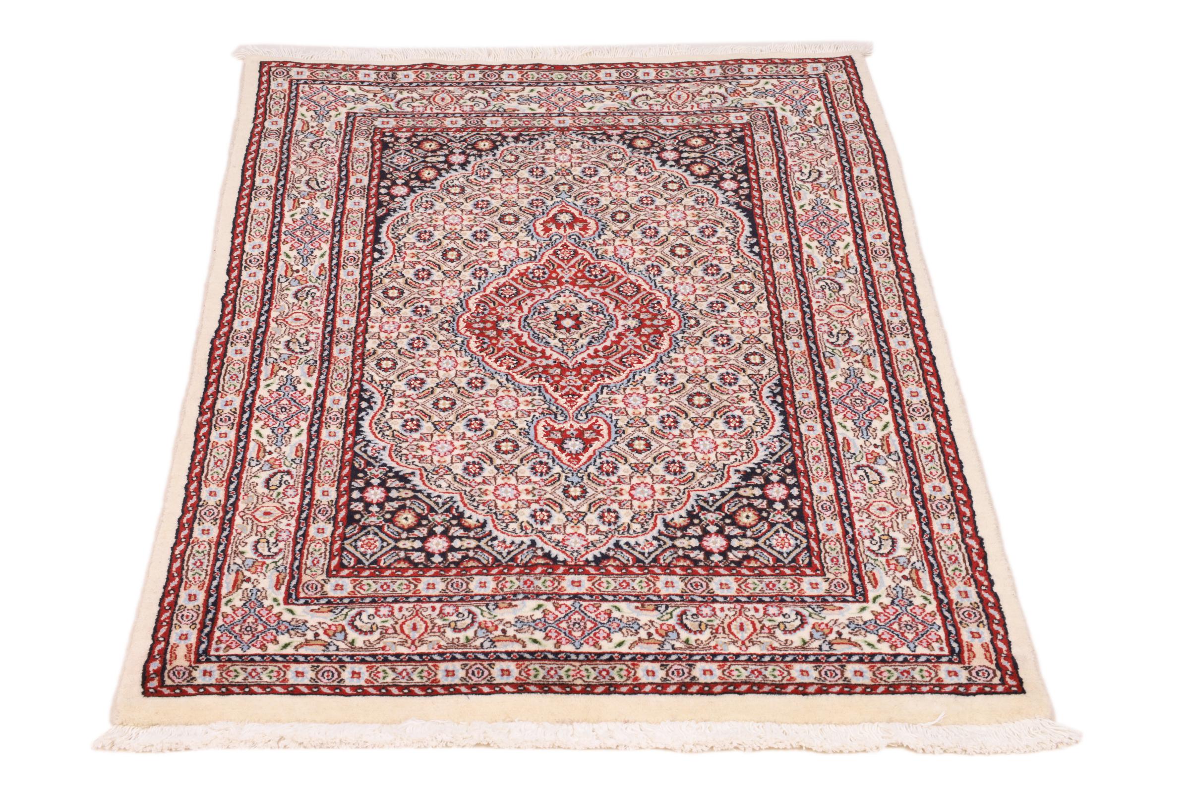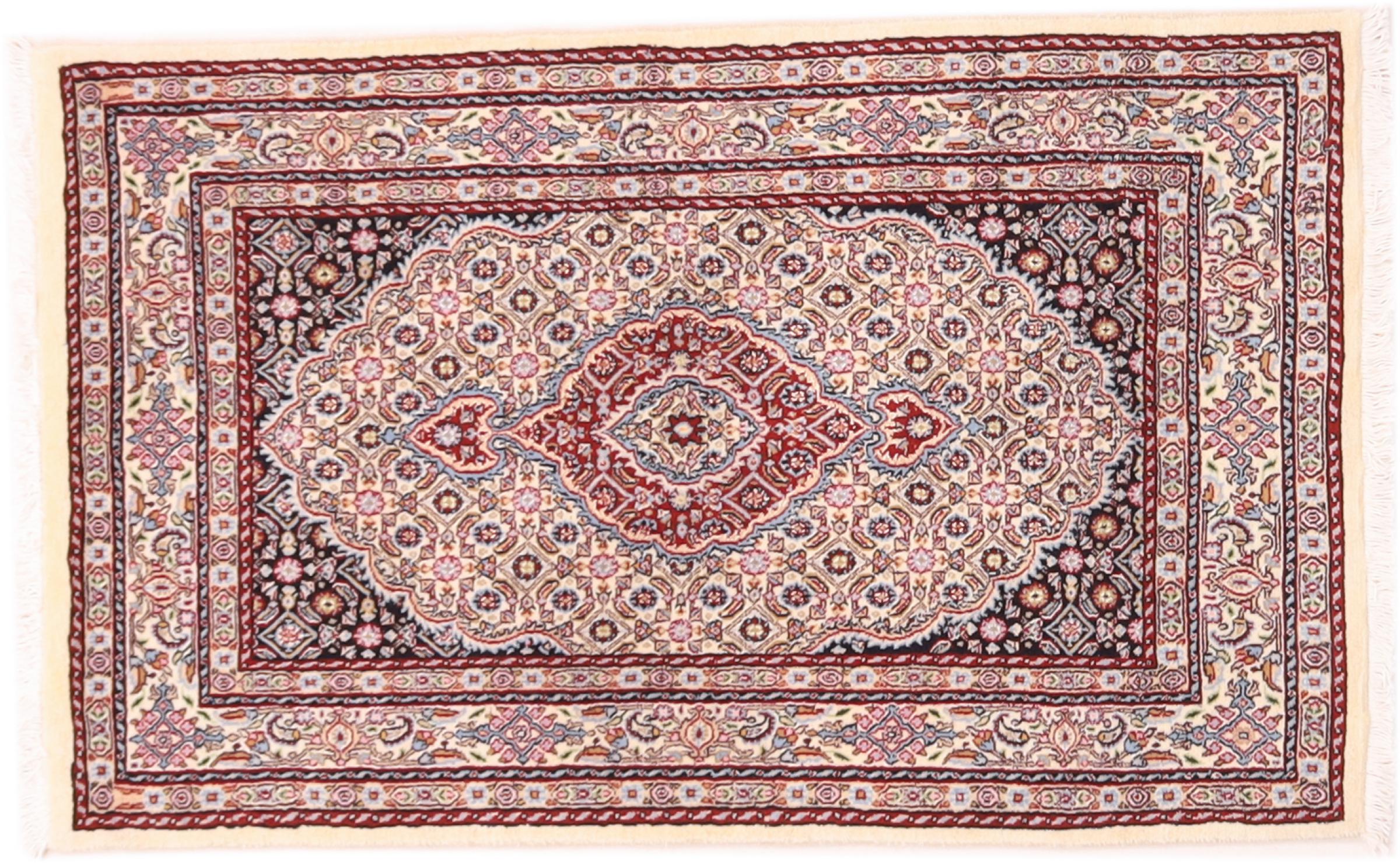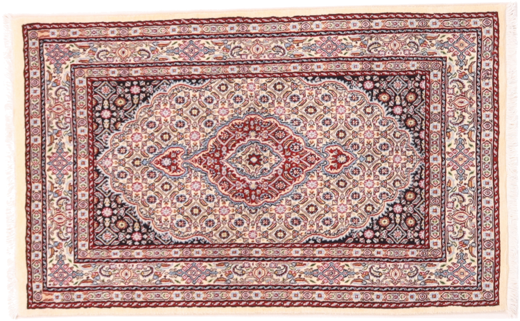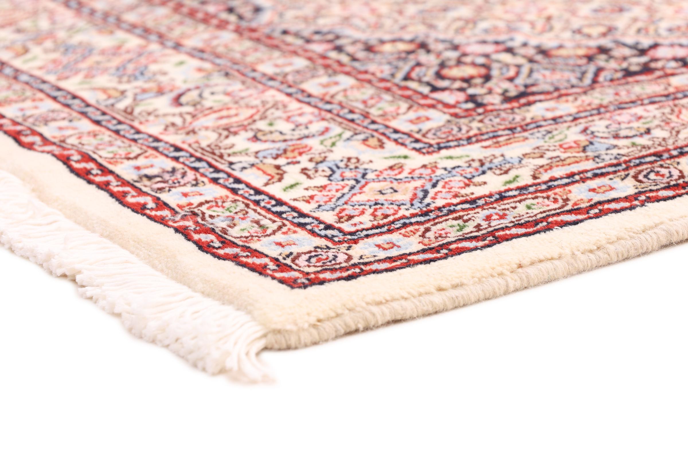 Dette tæppe fra Moud, en by 300 km syd for Mashhad, er imponerende ved første øjekast. Det typiske Herati-mønster eller havedesign værdsættes af kendere og elskere af ægte persiske tæpper. Hvis du leder efter et håndlavet tæppe af fin kvalitet med et meget unikt og karakteristisk design, er denne type tæppe det helt rigtige for dig.